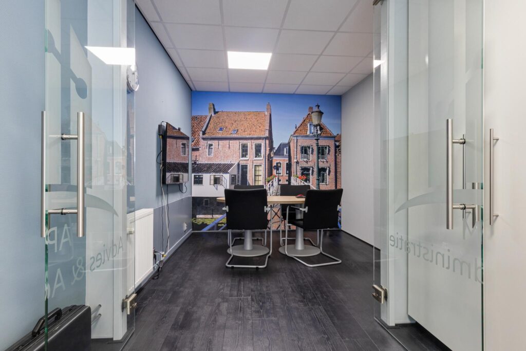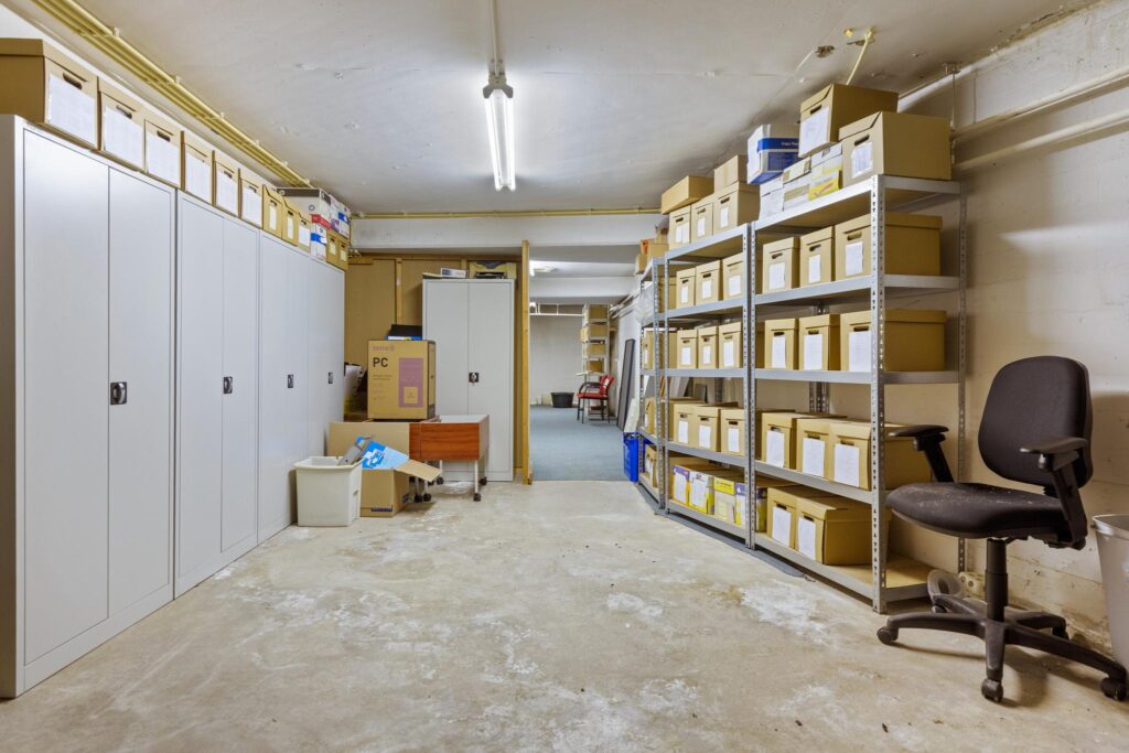 Het appartementsrecht rechtgevende op het uitsluitend gebruik van een kantoorpand op de begane grond met archiefruimte in de kelder.