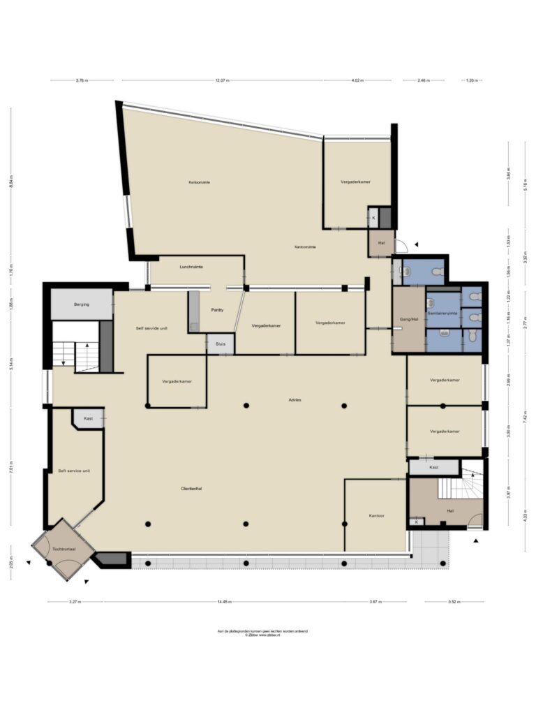 In totaal is er ca. 710 m² VVO beschikbaar (803 m² BVO).