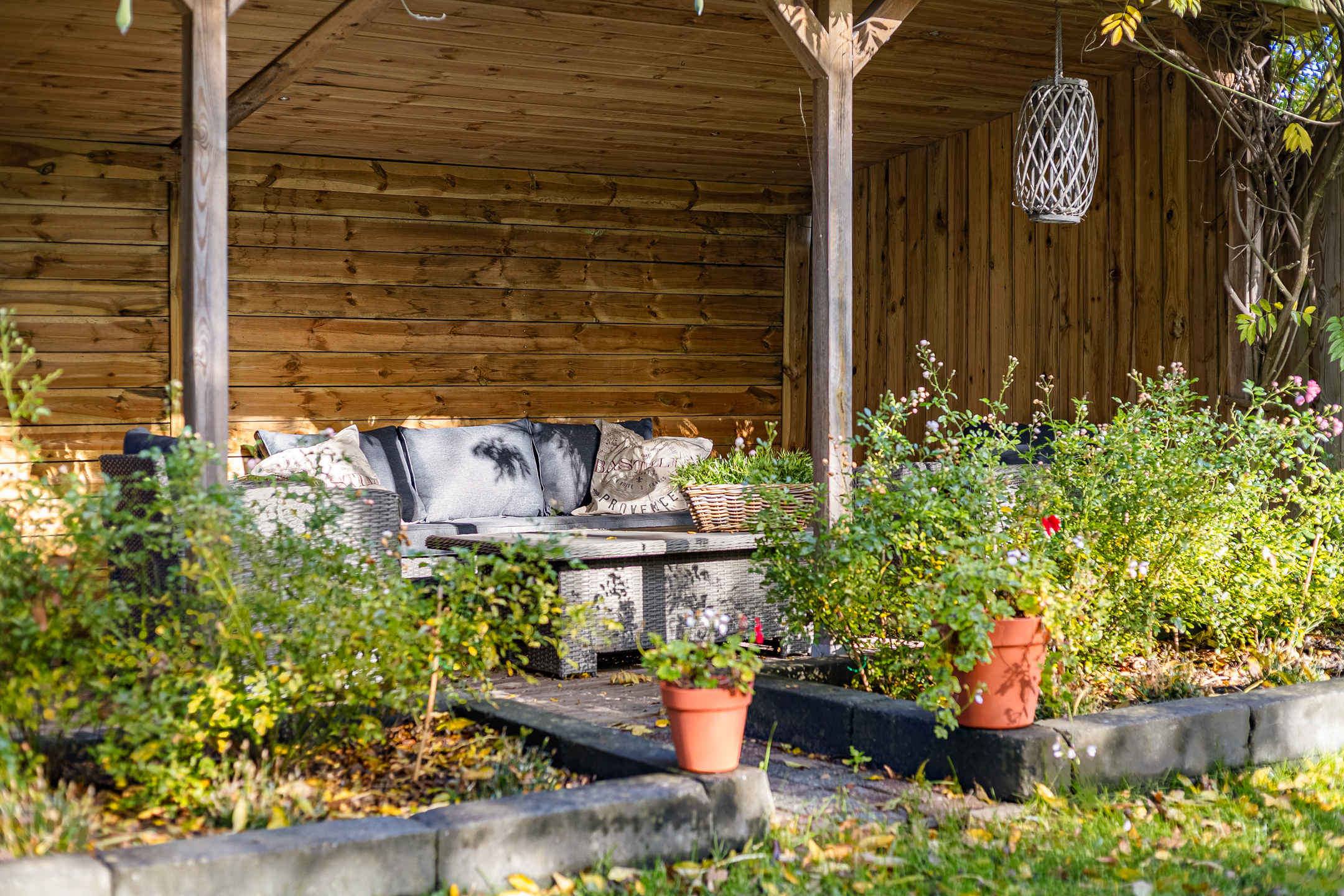- Royale achtertuin (ca. 192 m²) met zonneterras, ruime garage annex berging en fraaie overkapping met groene tuin.