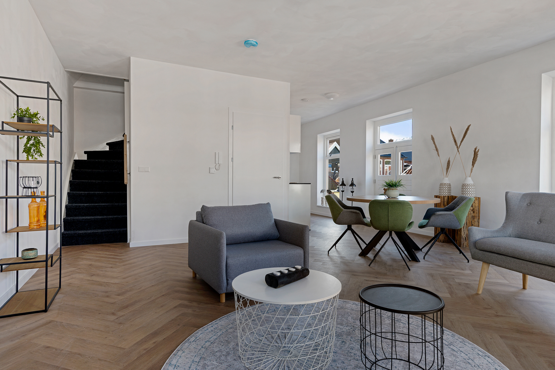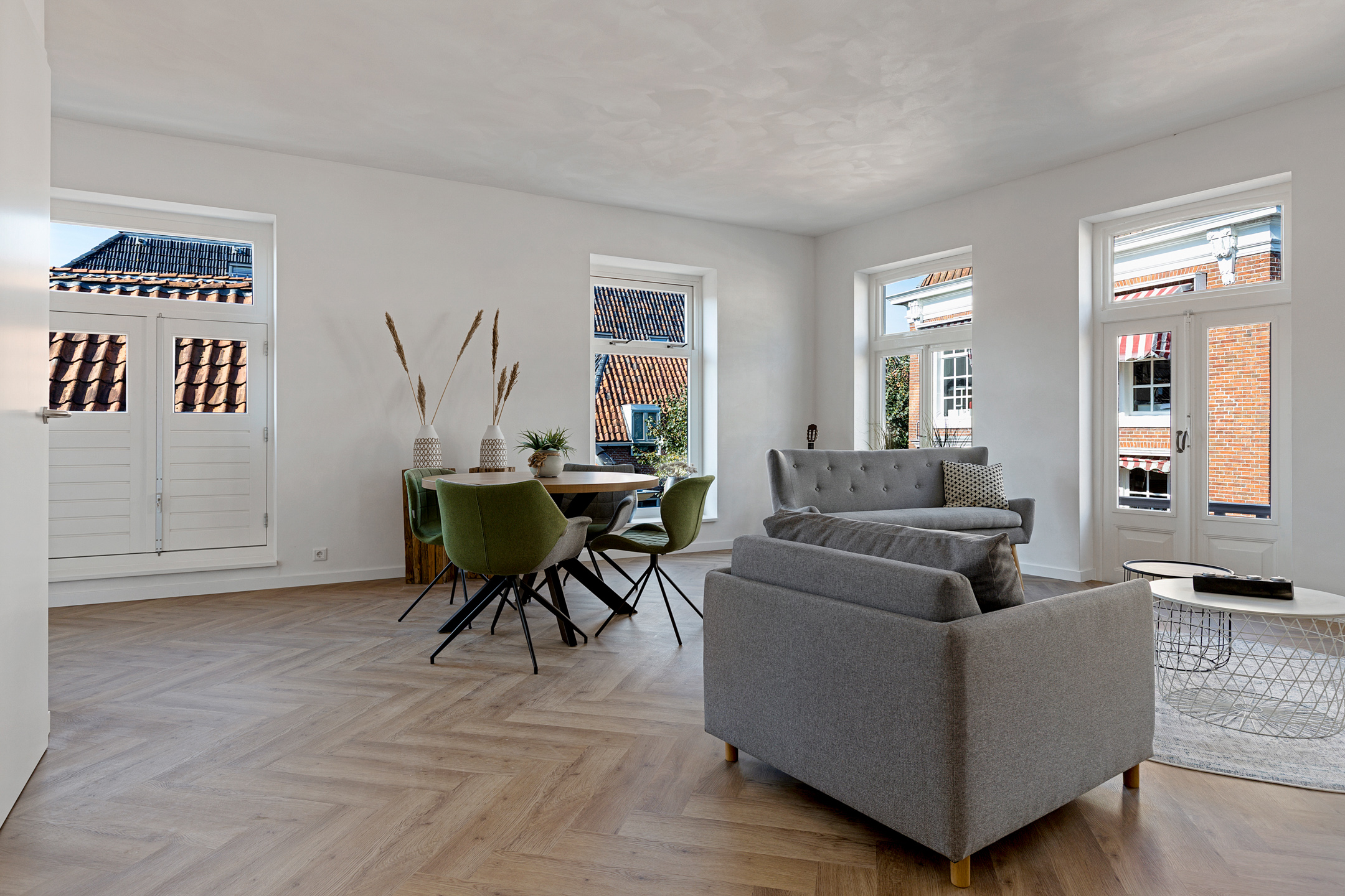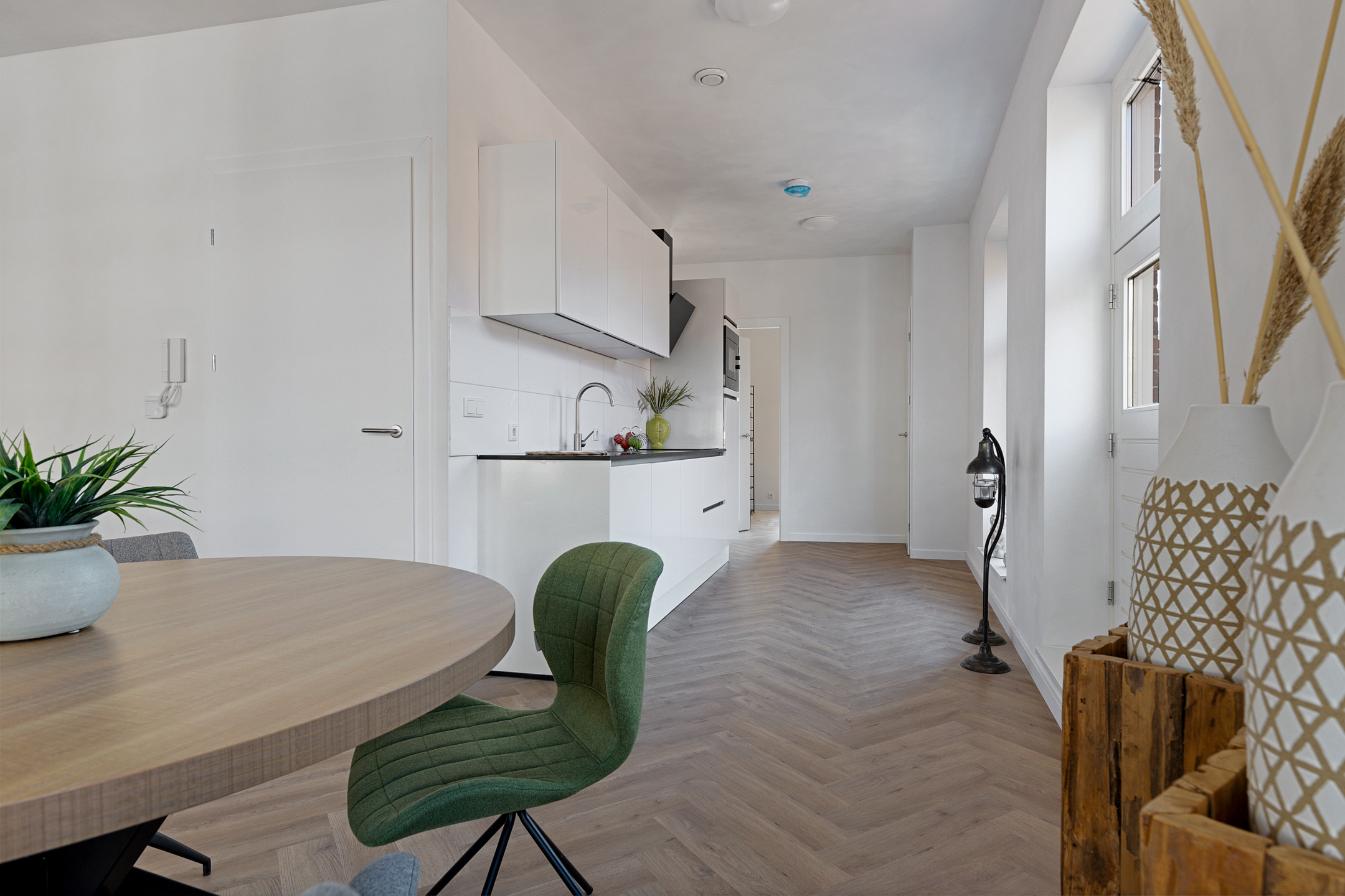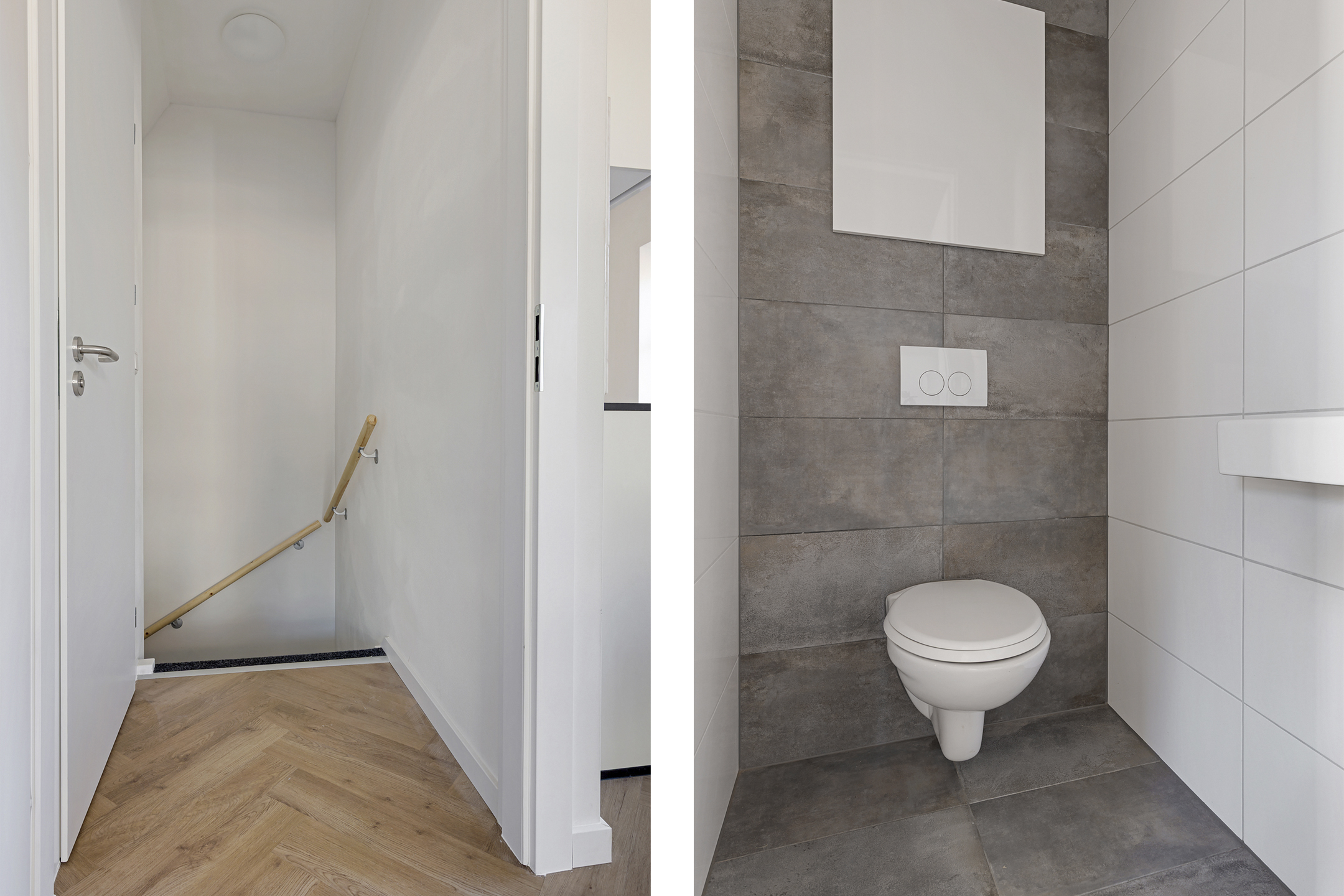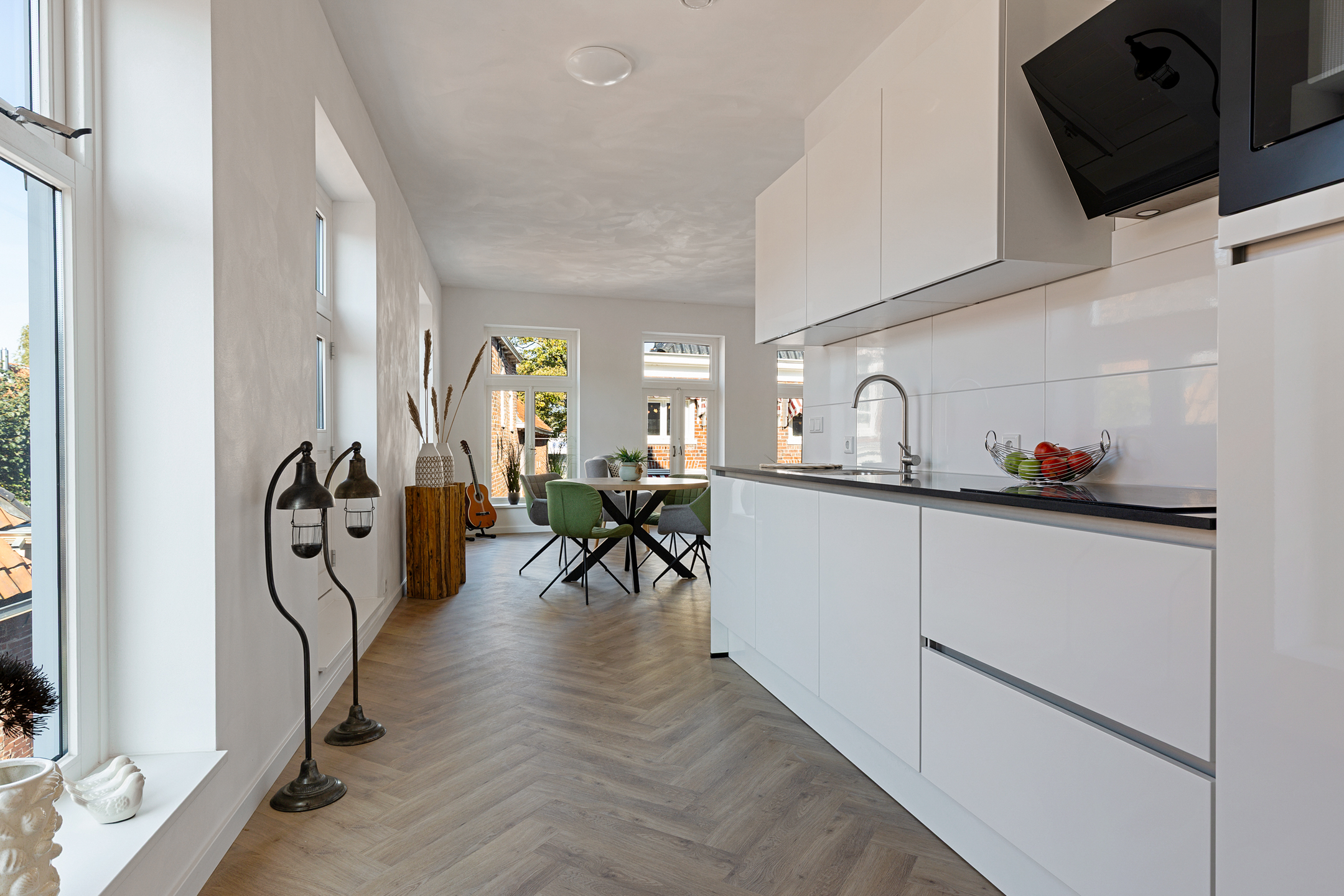 - Vloerverwarming door de gehele woning i.c.m. pvc-visgraatvloeren;