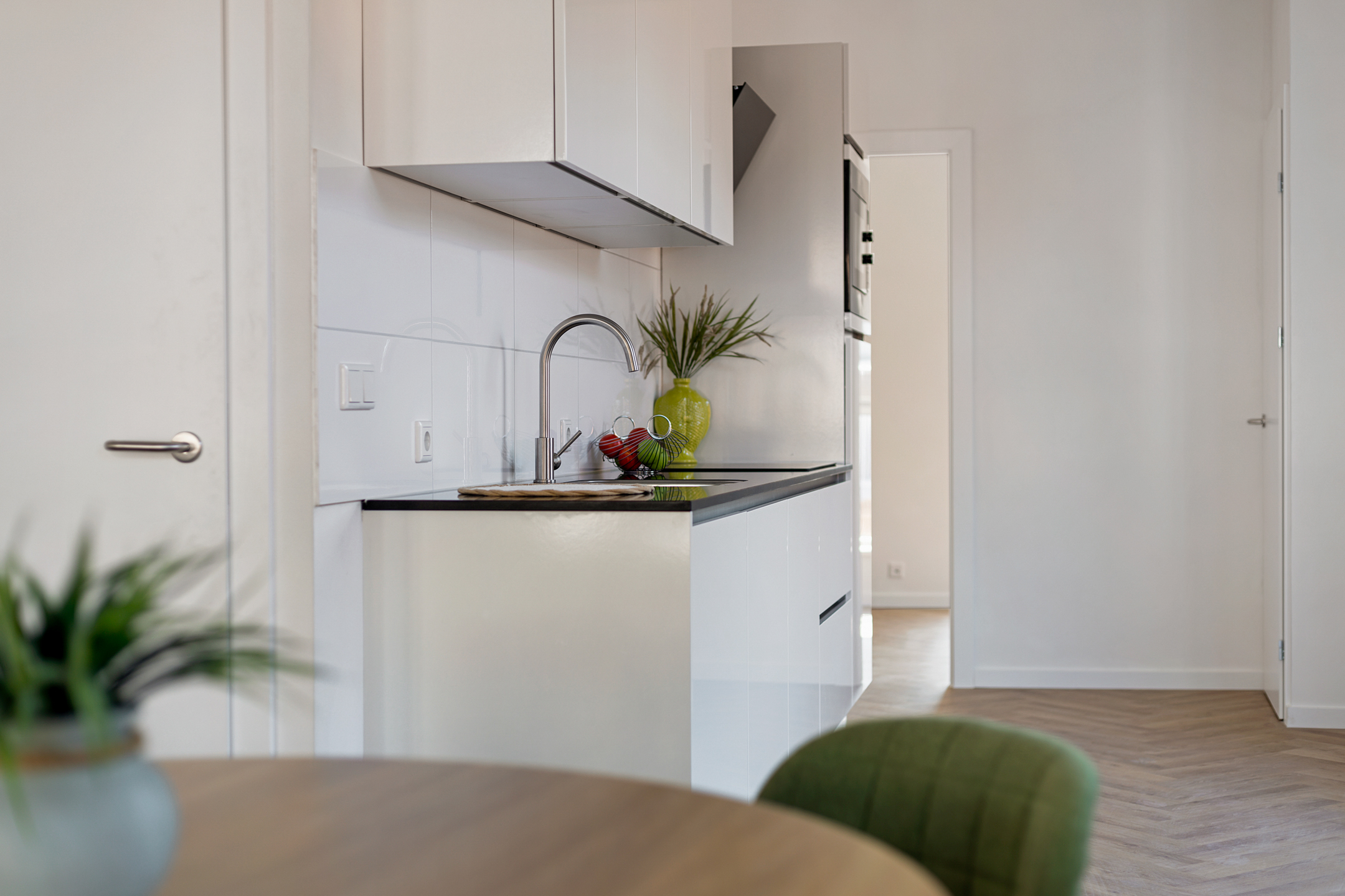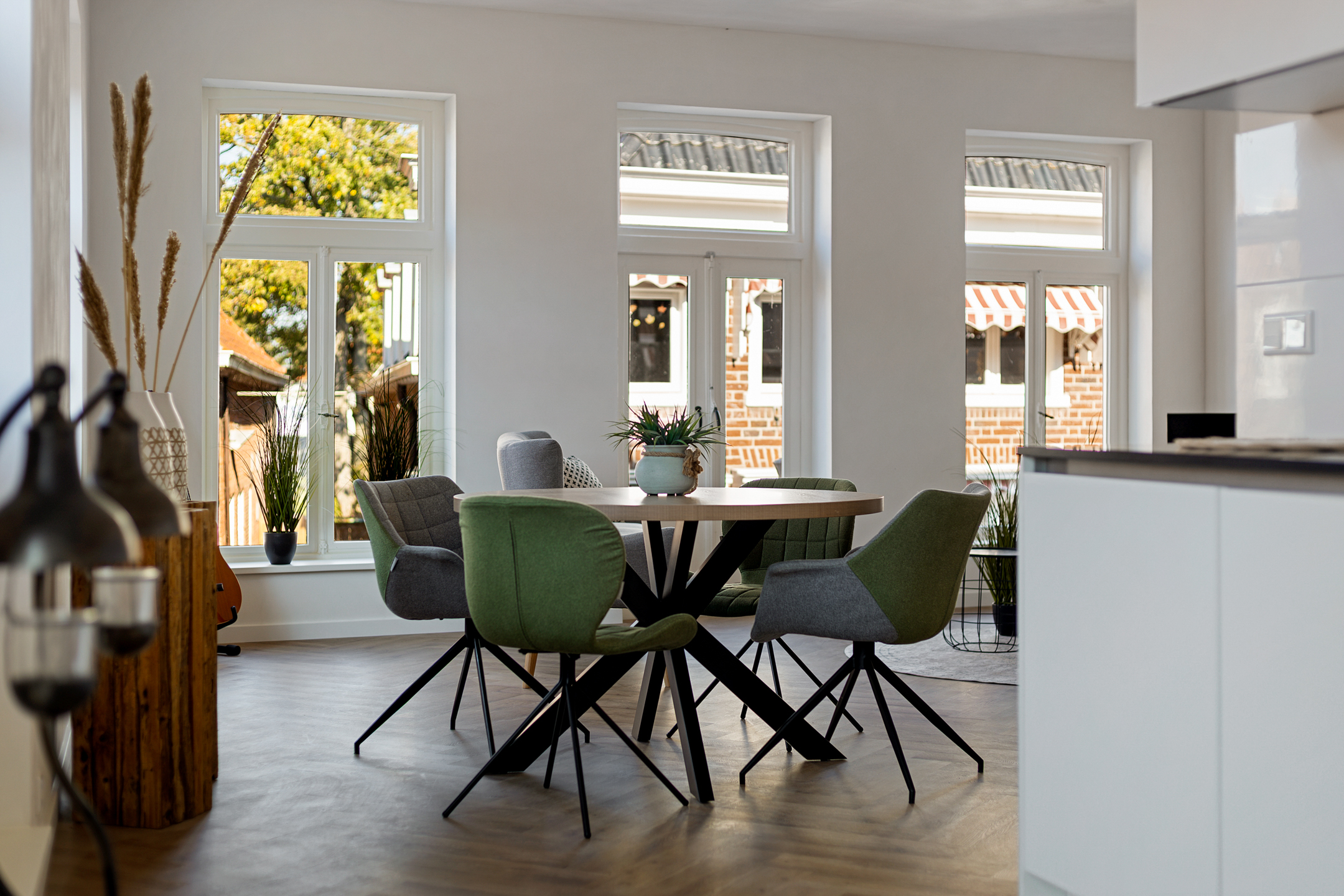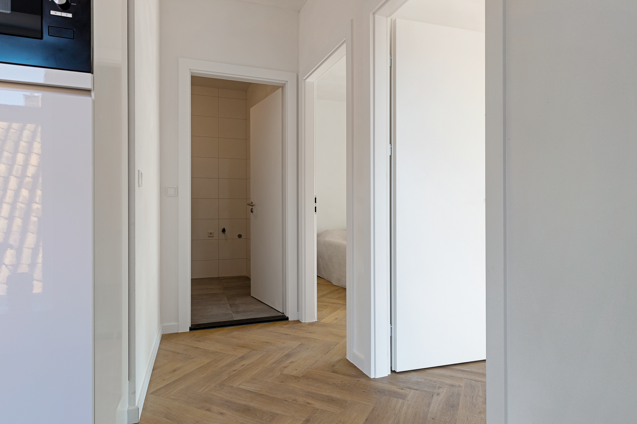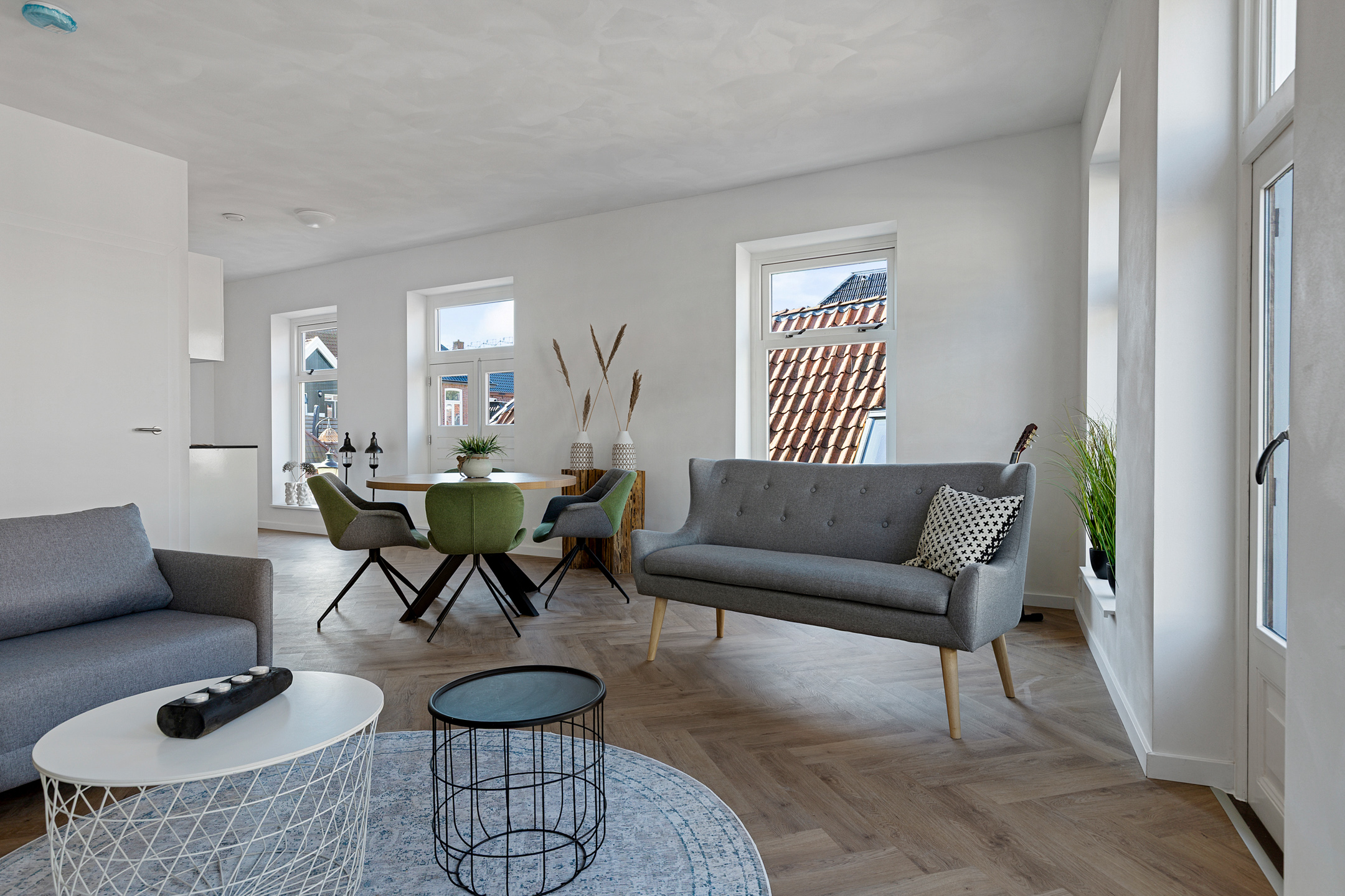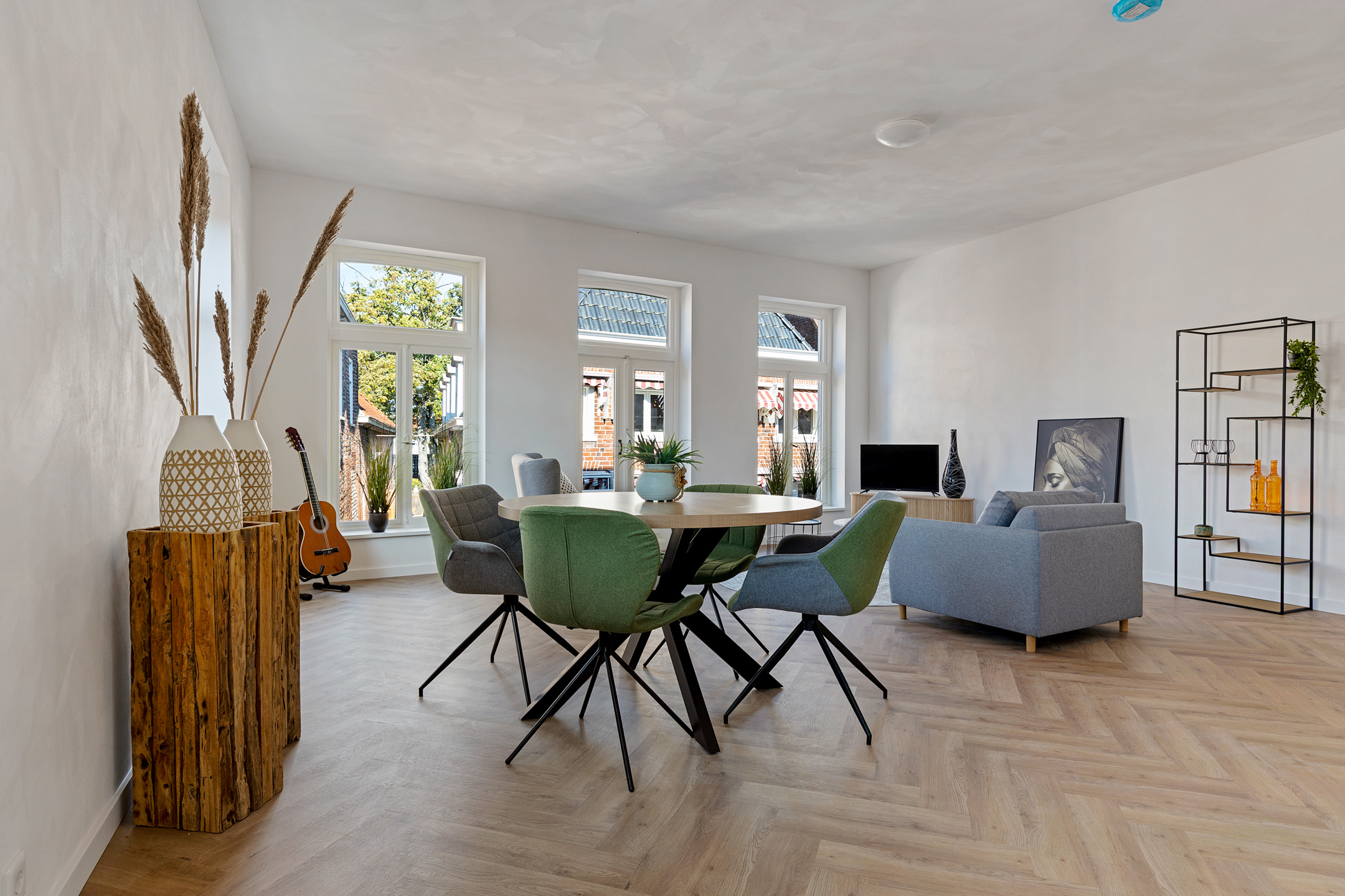 - Vloerverwarming door de gehele woning i.c.m. pvc-visgraatvloeren;