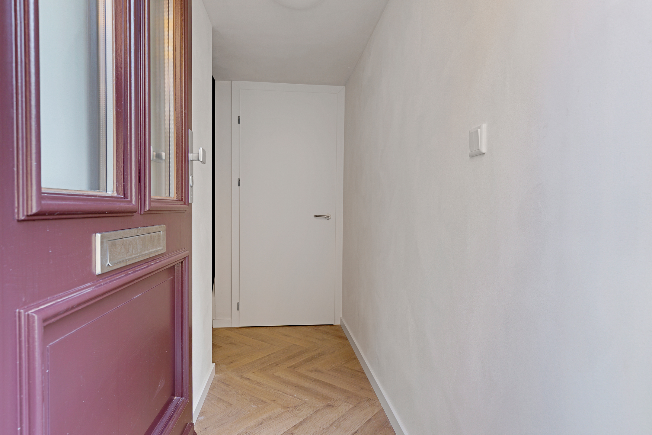 Entree/hal met meterkast, inpandige berging (ca. 2,5 m²) en opgang naar de verdieping.