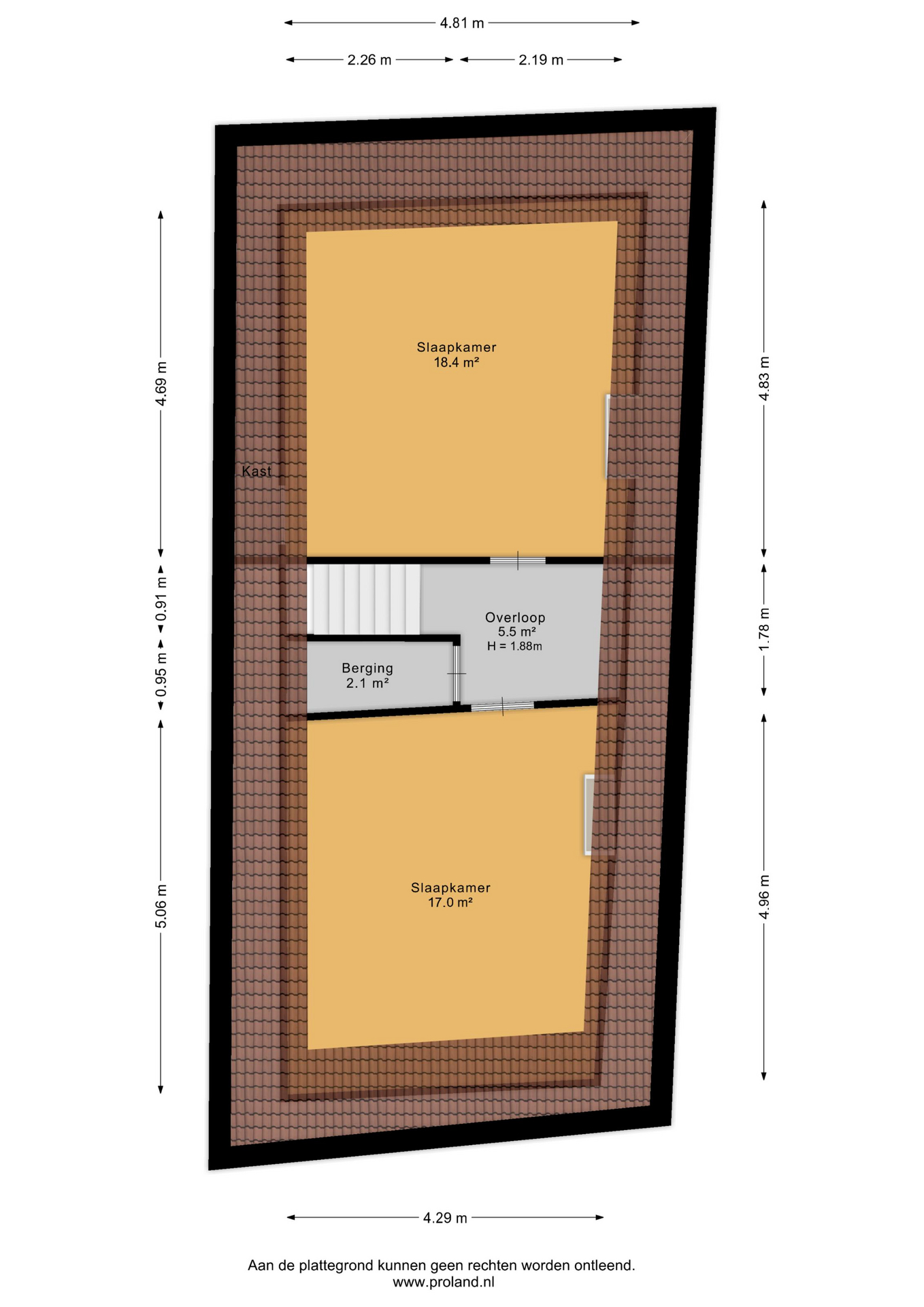 Middels vaste trap te bereiken overloop met bergkast annex stookruimte met aangrenzend overige ruimte (ca. 17 m²) en overige ruimte (ca. 18,5 m²).