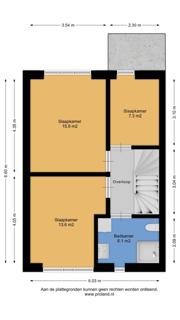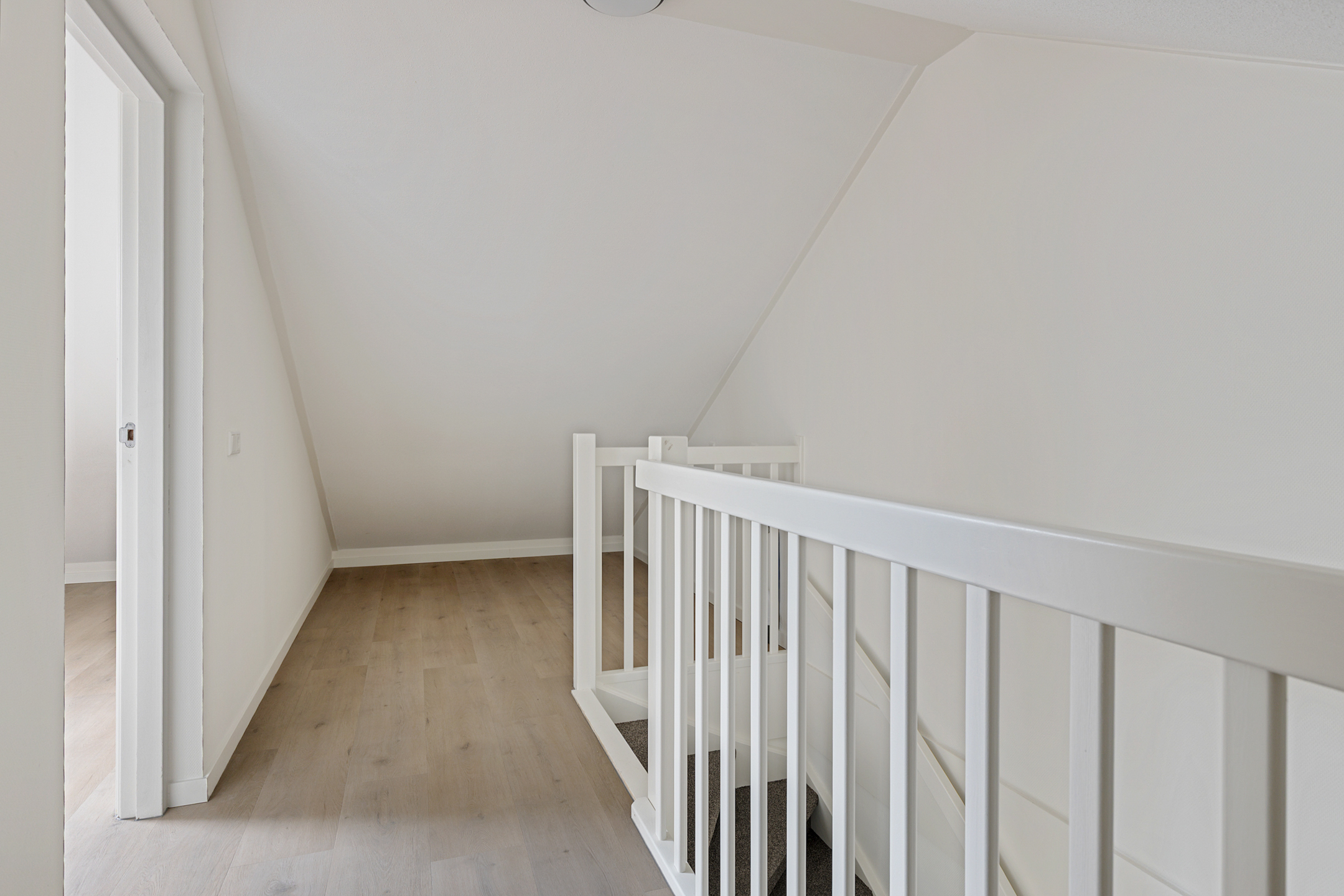 Middels vaste trap te bereiken overloop (met witgoedaansluiting) met aangrenzende zolderkamer (ca. 11,5 m²).