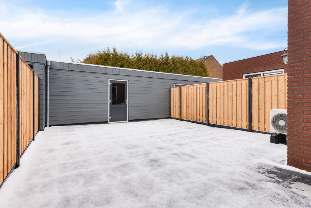 - Vrijstaande houten berging (ca. 13 m²; met entree naar de tuin);