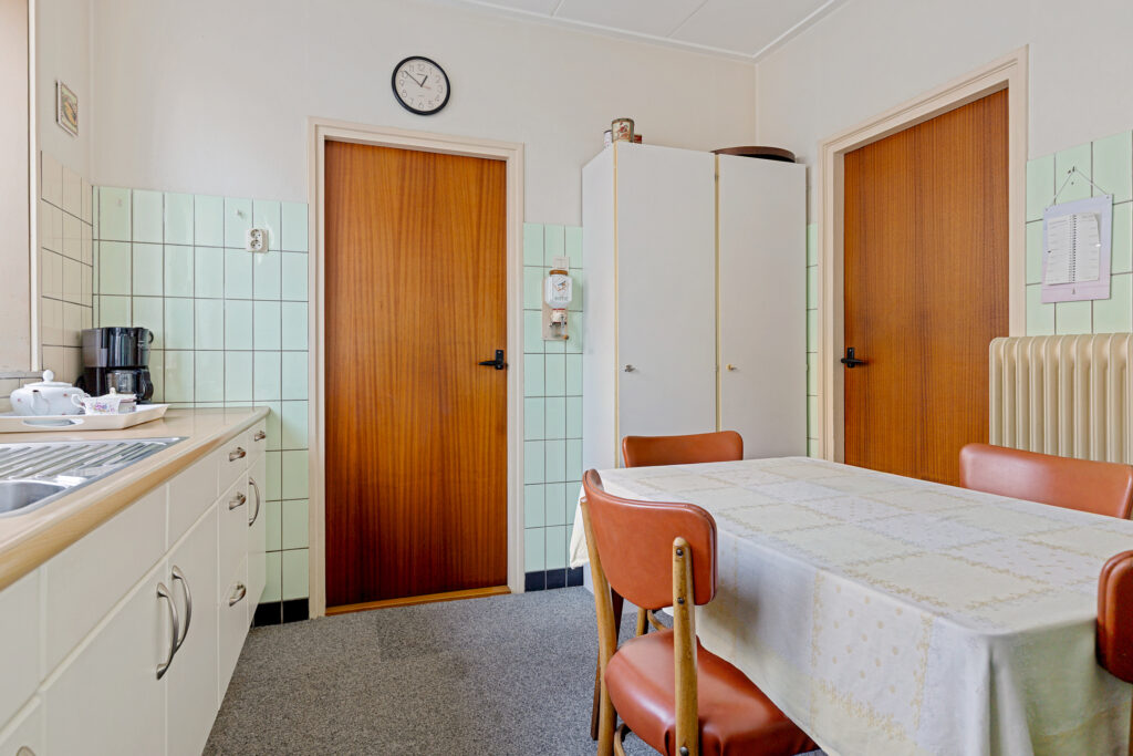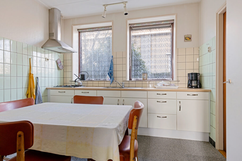 Over de indeling en inrichting van de woning is veel te vertellen. Het biedt namelijk heel veel mogelijkheden maar behoeft wel een modernisering. Maar dan ontstaat er ook een royale gezinswoning die levensloopbestendig te bewonen is. Op de begane grond bevindt zich namelijk momenteel een slaap- en eenvoudige badkamer. Aan de straatzijde de woonkamer, royaal en over de volle breedte van de woning. Aansluitend de eenvoudige eetkeuken, waarbij het geheel wordt gecompleteerd met een royale bijkeuken en separaat toilet. De verdieping biedt minstens zoveel mogelijkheden. Ondanks de royale maatvoeringen zijn er momenteel maar twee slaapkamers gesitueerd. Dit aantal kan moeiteloos verdubbeld worden bij een verbouwing.