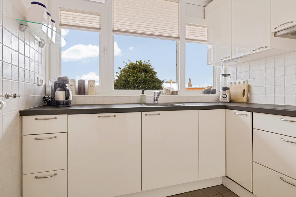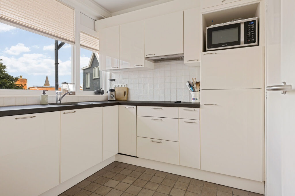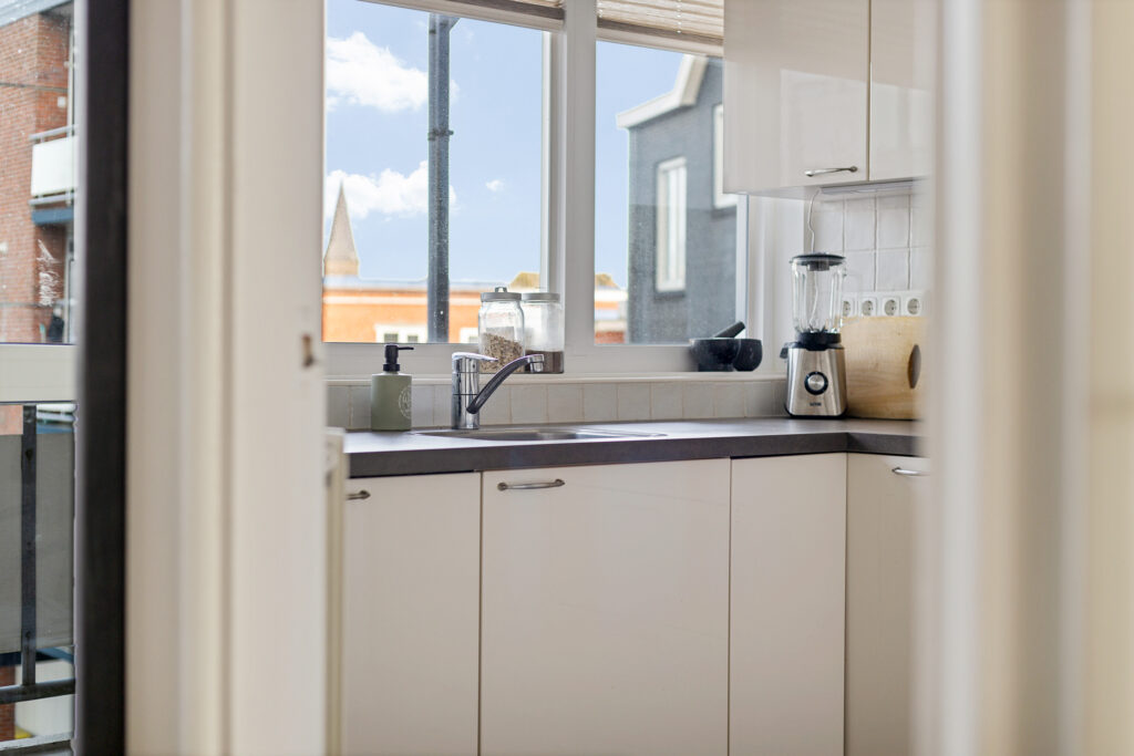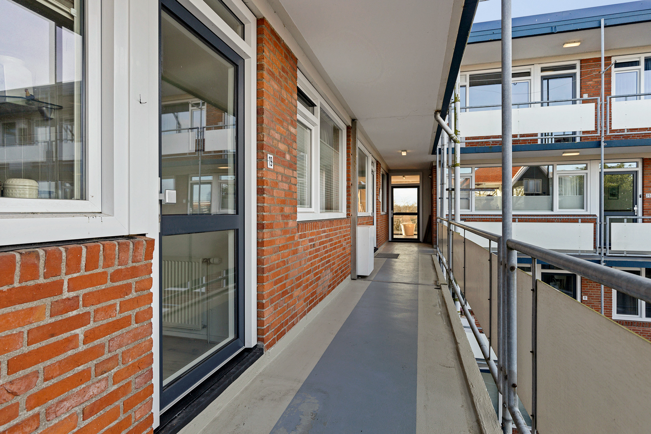 De indeling van het appartement op huisnummer 19 bestaat uit een vestibule met centrale hal voorzien van intercom, meterkast, een eigentijds betegeld toilet en een nette badkamer met douche en wastafelmeubel. Aan de zijde van de galerij aan de achterzijde bevindt zich de dichte, nette keuken voorzien van inbouwapparatuur en provisie- annex stook- annex wasruimte. Eveneens aan de achterzijde de slaapkamer, voorzien van een keurige laminaatvloer en vaste kasten. De woonkamer is aan de straat- en tevens zuidzijde gesitueerd en beschikt over een laminaatvloer, vaste kasten en aangrenzend balkon. Recent zijn de kozijnen vervangen voor kunststof exemplaren voorzien van HR++ beglazing. De maandelijkse bijdrage voor de VvE bedraagt € 130,--. Met name vanwege de ligging aan de rand van het stadscentrum is het geheel voor een breed publiek interessant, waarbij de aanwezigheid van de liftinstallatie deze doelgroep zeker niet beperkt!