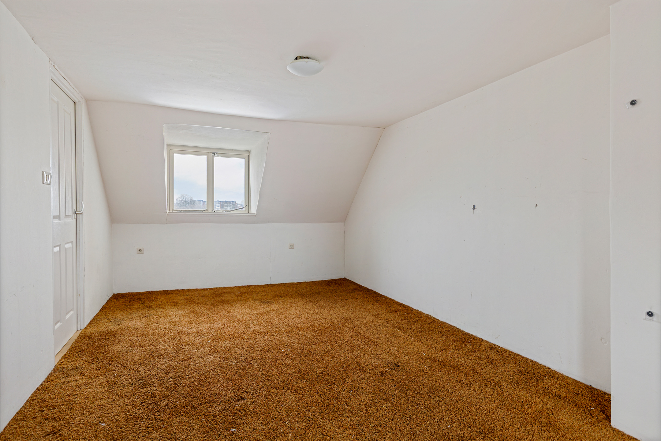 Middels vaste trap te bereiken overloop met kastruimte en aangrenzend slaapkamer (ca. 8,5 m²) en slaapkamer (ca. 16 m²).
