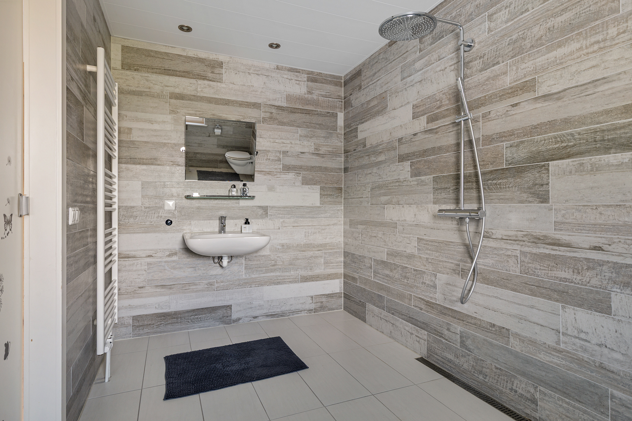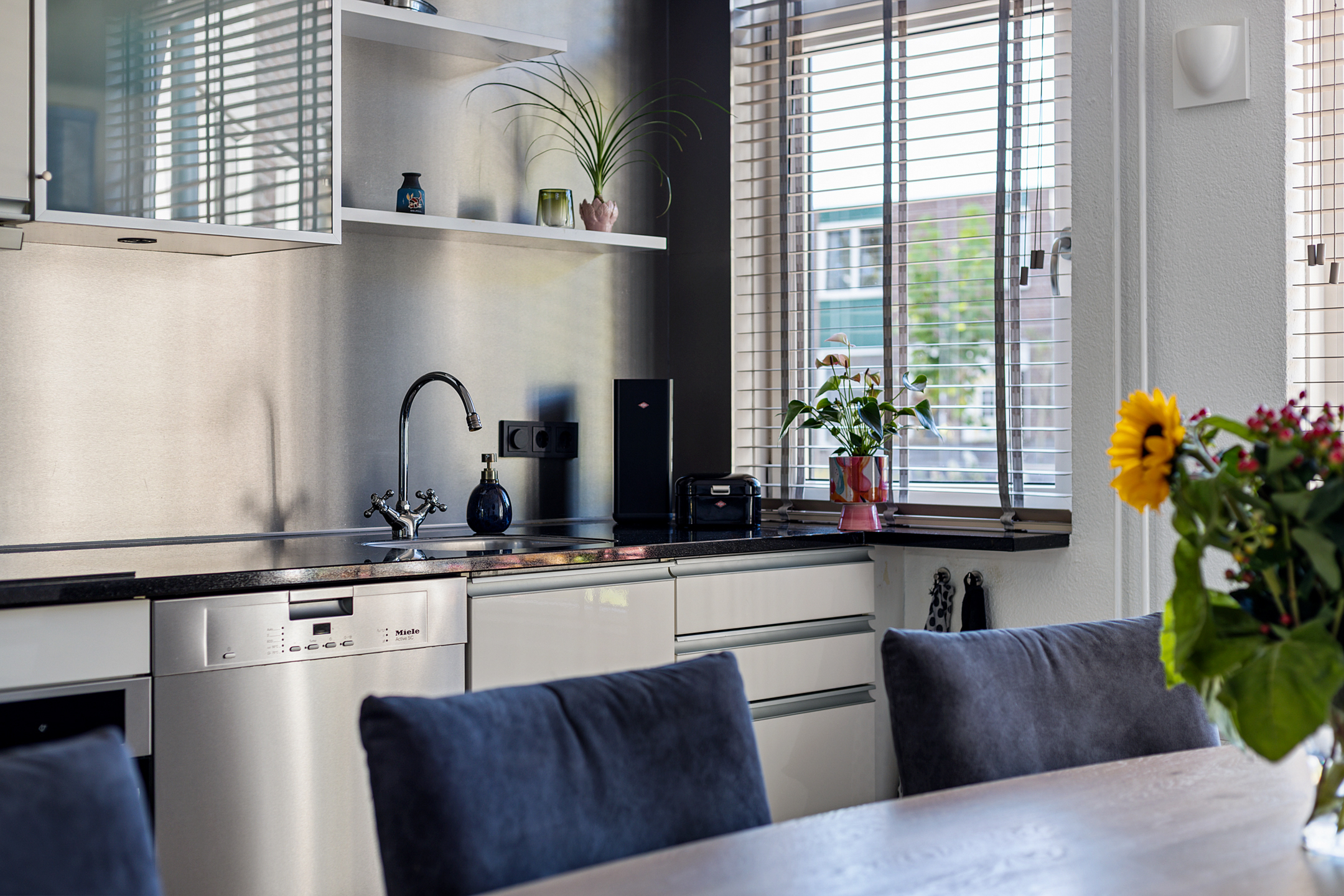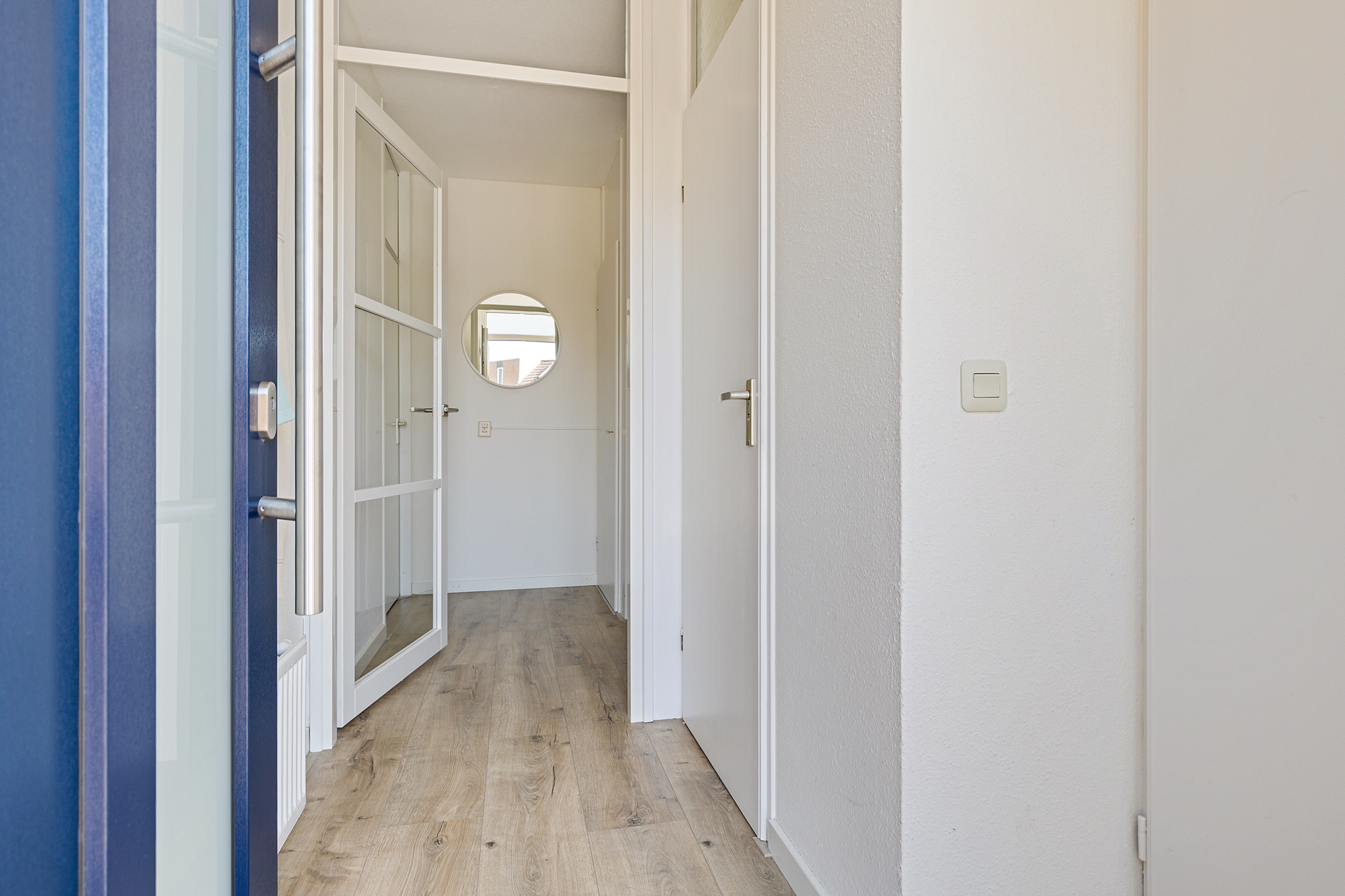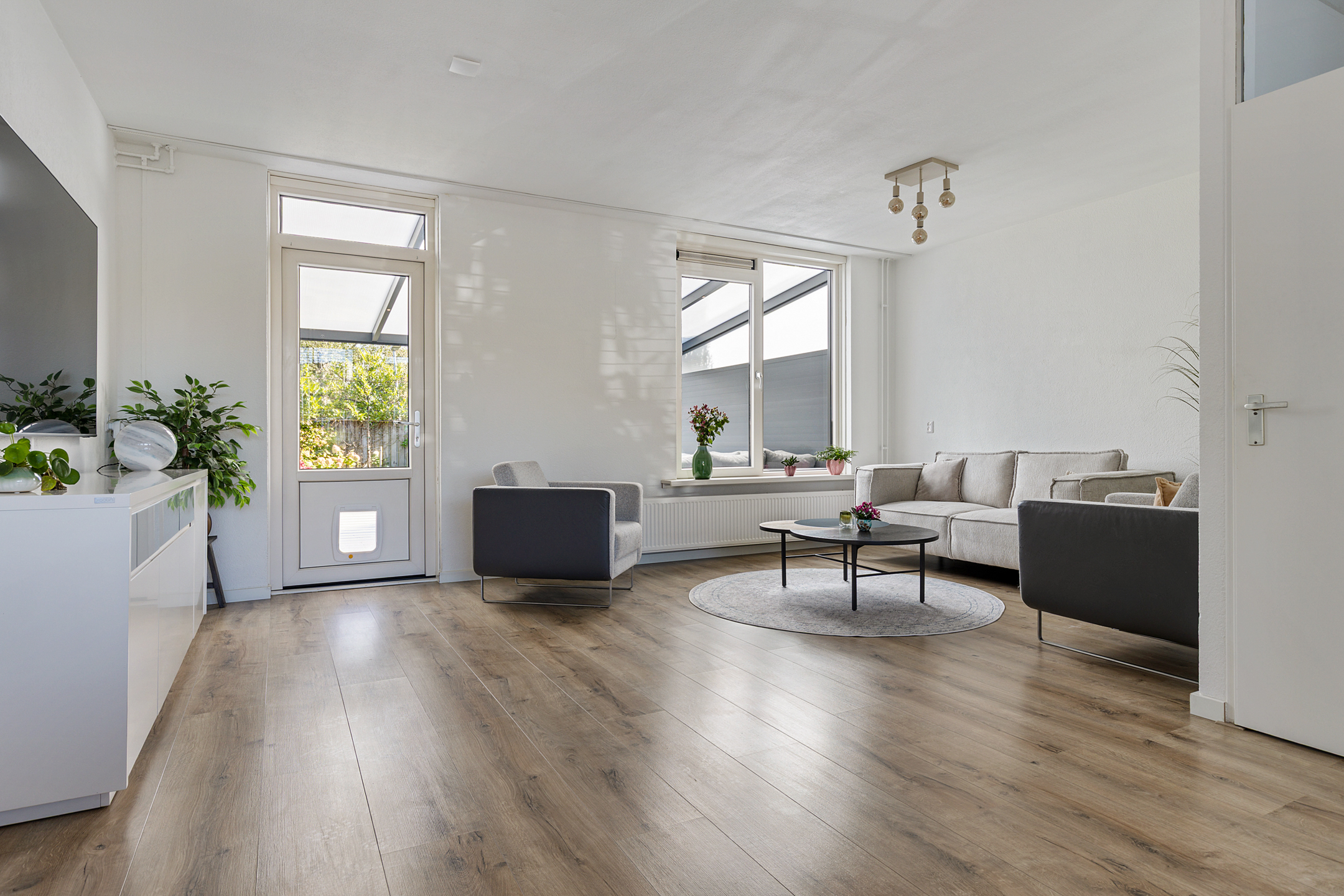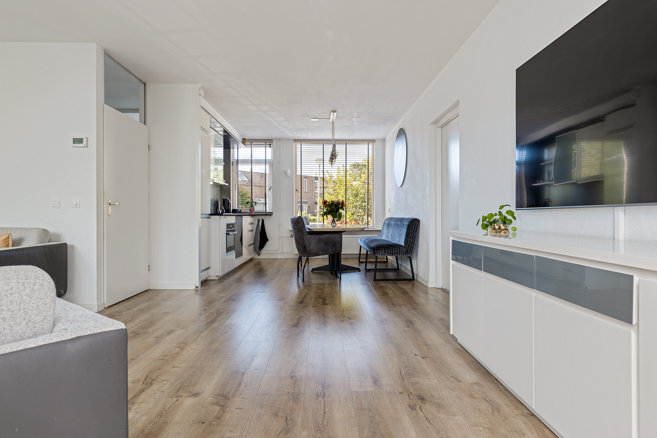 Op de begane grond zoals gezegd een slaap- en badkamer, waarbij eerstgenoemde aan de rustige, tuinzijde van de woning is gesitueerd. Ook de aanwezigheid van een bijkeuken is niet standaard in het straatbeeld. Helemaal niet met de afmetingen als op huisnummer 103. Aan de tuinzijde verder de woonkamer met tuindeur naar de heerlijke veranda. De open en moderne keuken is juist aan de straatzijde gesitueerd, net als de entree met toilet en trapopgang naar de eerste verdieping. Op deze verdieping biedt de overloop toegang tot nog eens drie slaapkamers waarvan twee met laminaatvloeren, een tweede - keurige - badkamer en stook- annex bergruimte.