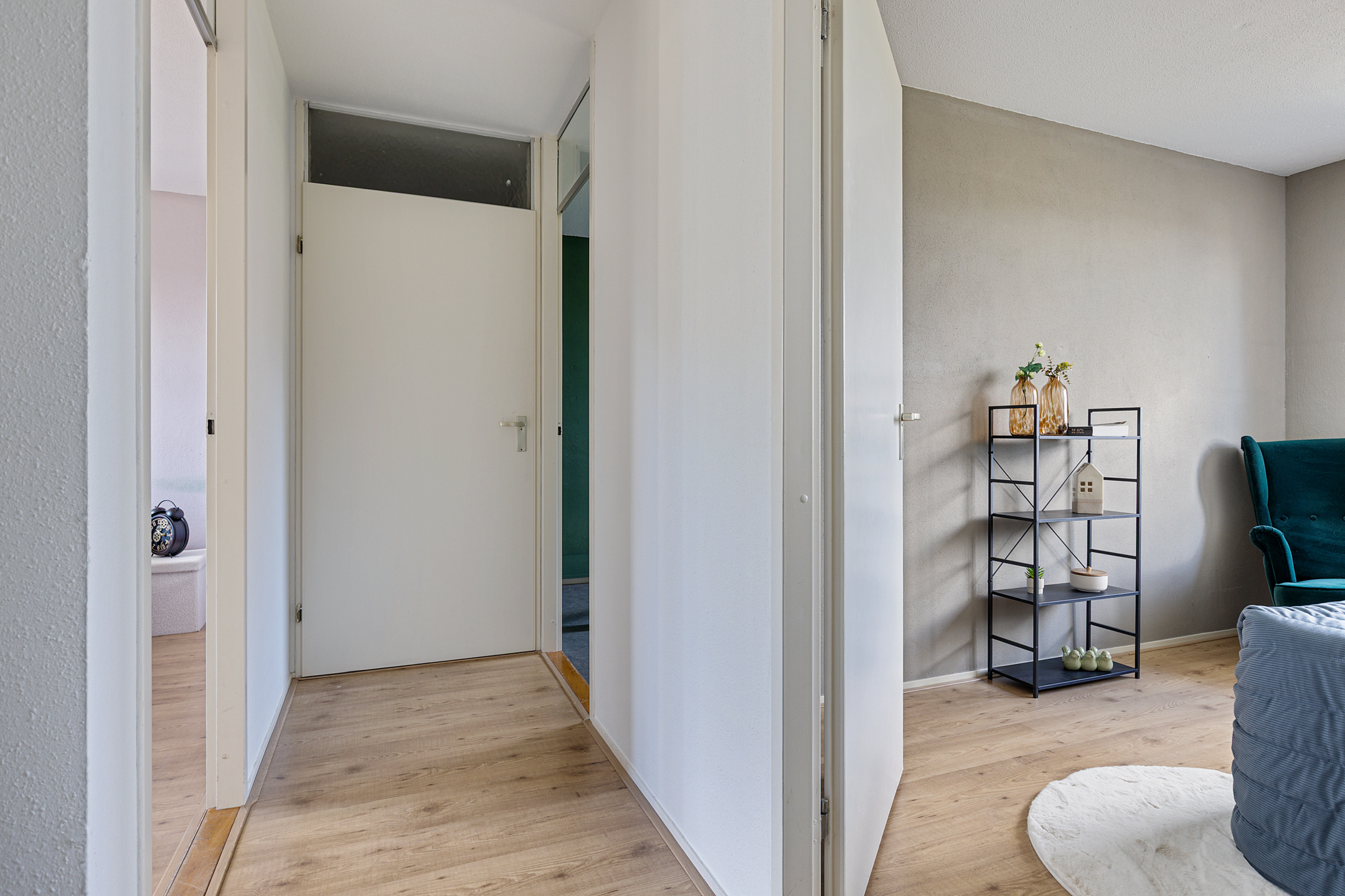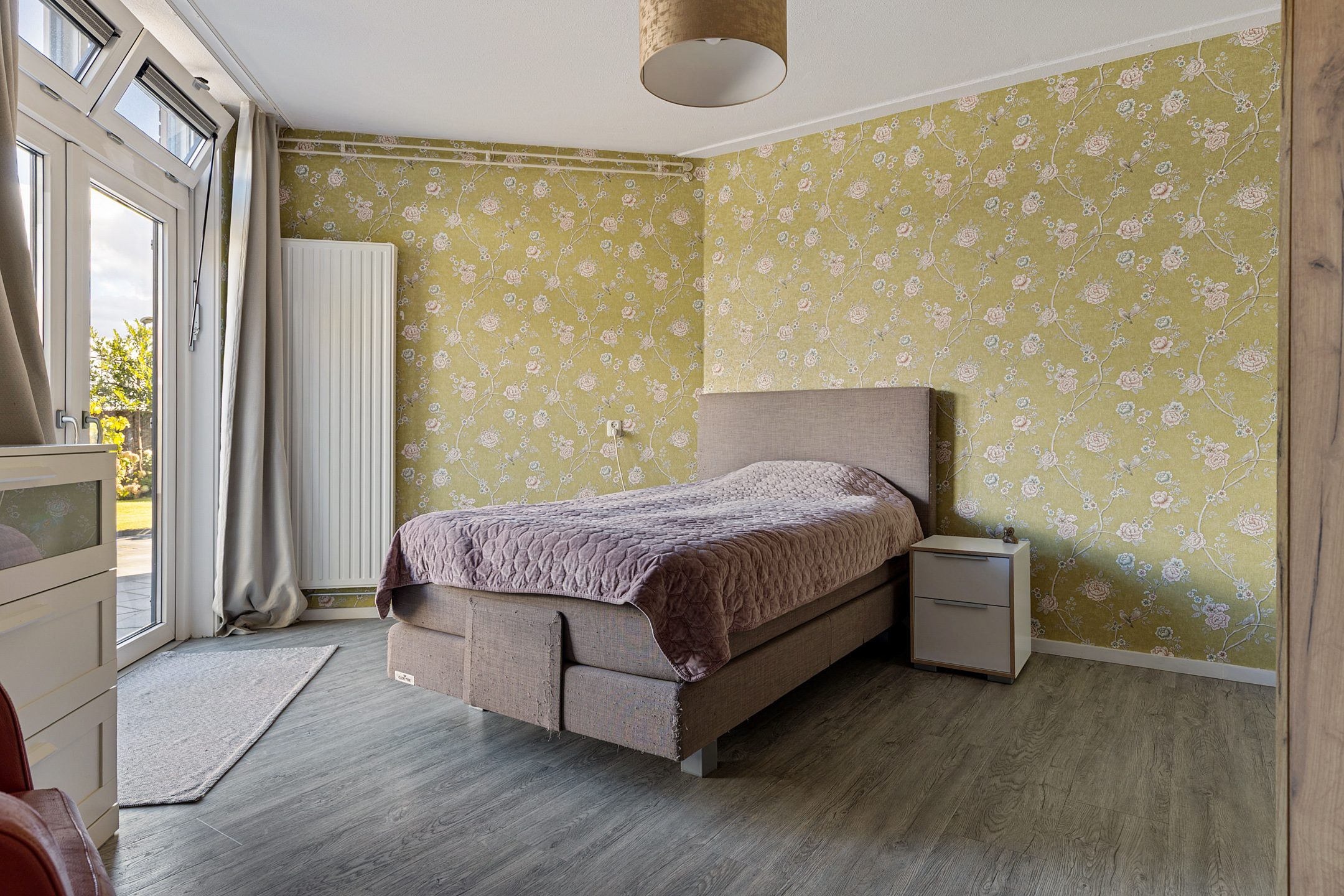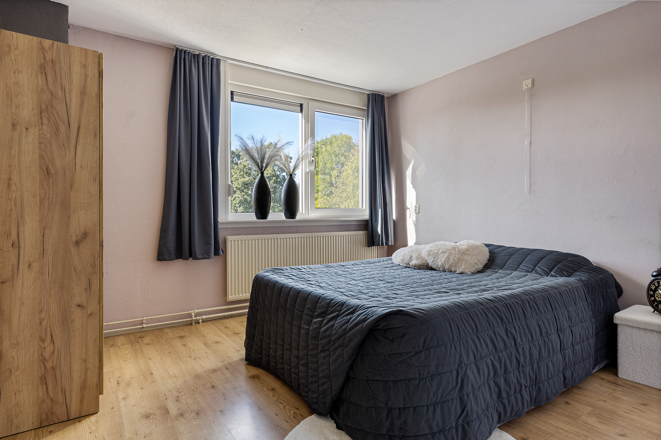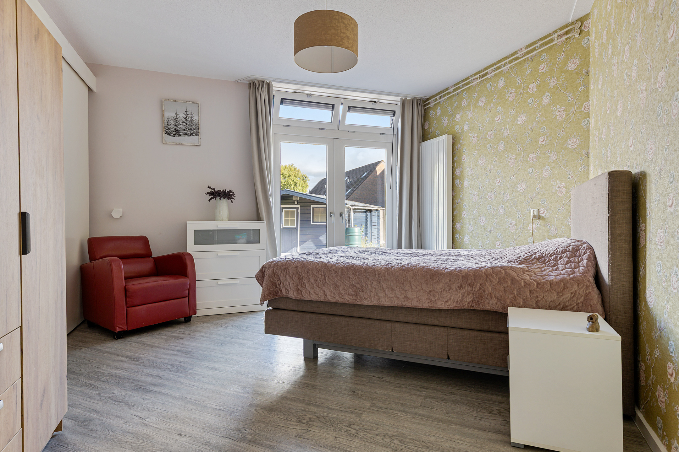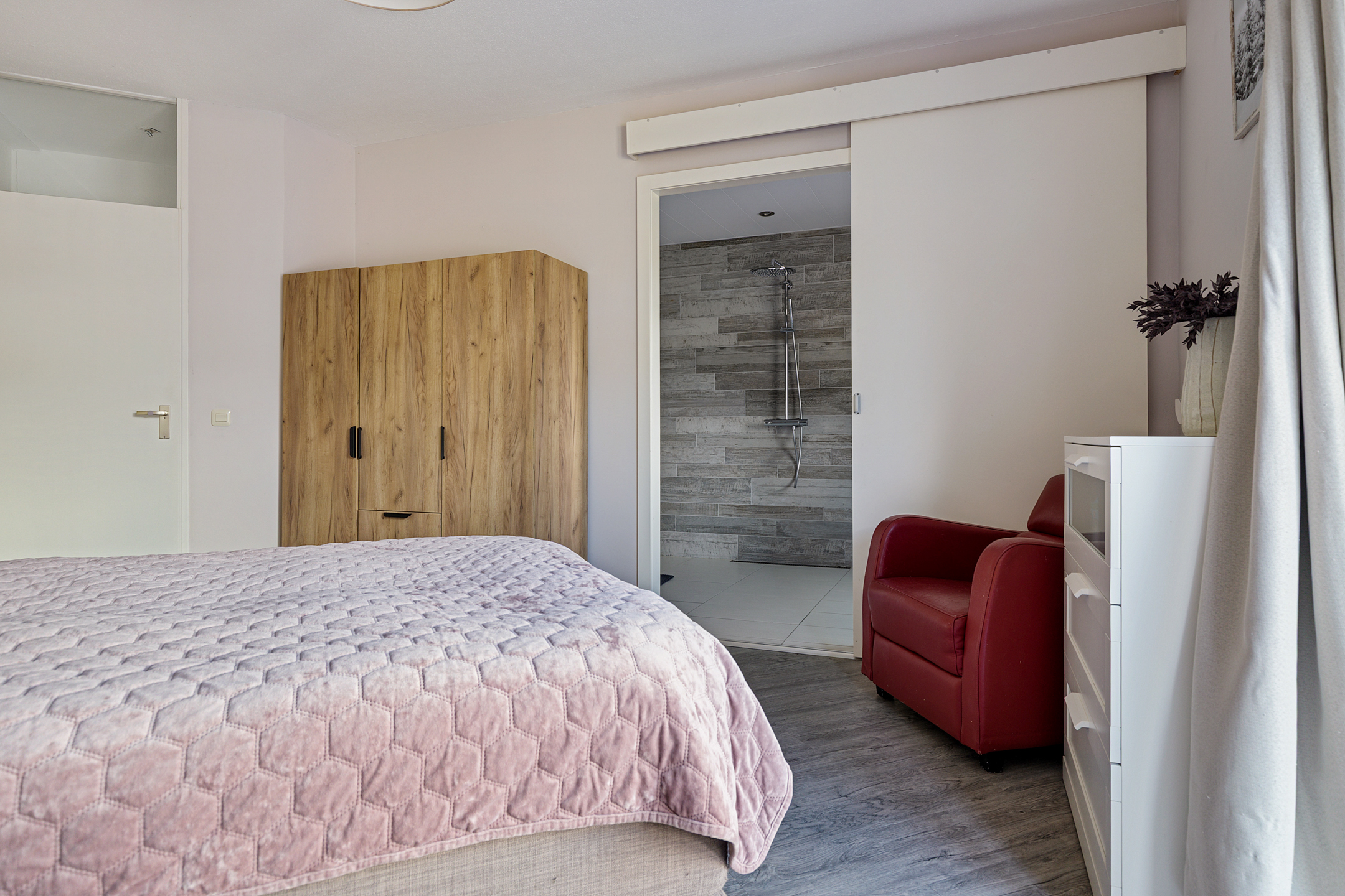Op de begane grond zoals gezegd een slaap- en badkamer, waarbij eerstgenoemde aan de rustige, tuinzijde van de woning is gesitueerd. Ook de aanwezigheid van een bijkeuken is niet standaard in het straatbeeld. Helemaal niet met de afmetingen als op huisnummer 103. Aan de tuinzijde verder de woonkamer met tuindeur naar de heerlijke veranda. De open en moderne keuken is juist aan de straatzijde gesitueerd, net als de entree met toilet en trapopgang naar de eerste verdieping. Op deze verdieping biedt de overloop toegang tot nog eens drie slaapkamers waarvan twee met laminaatvloeren, een tweede - keurige - badkamer en stook- annex bergruimte.
