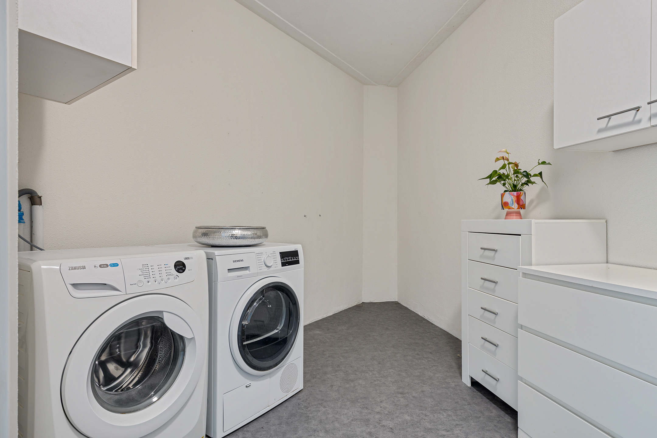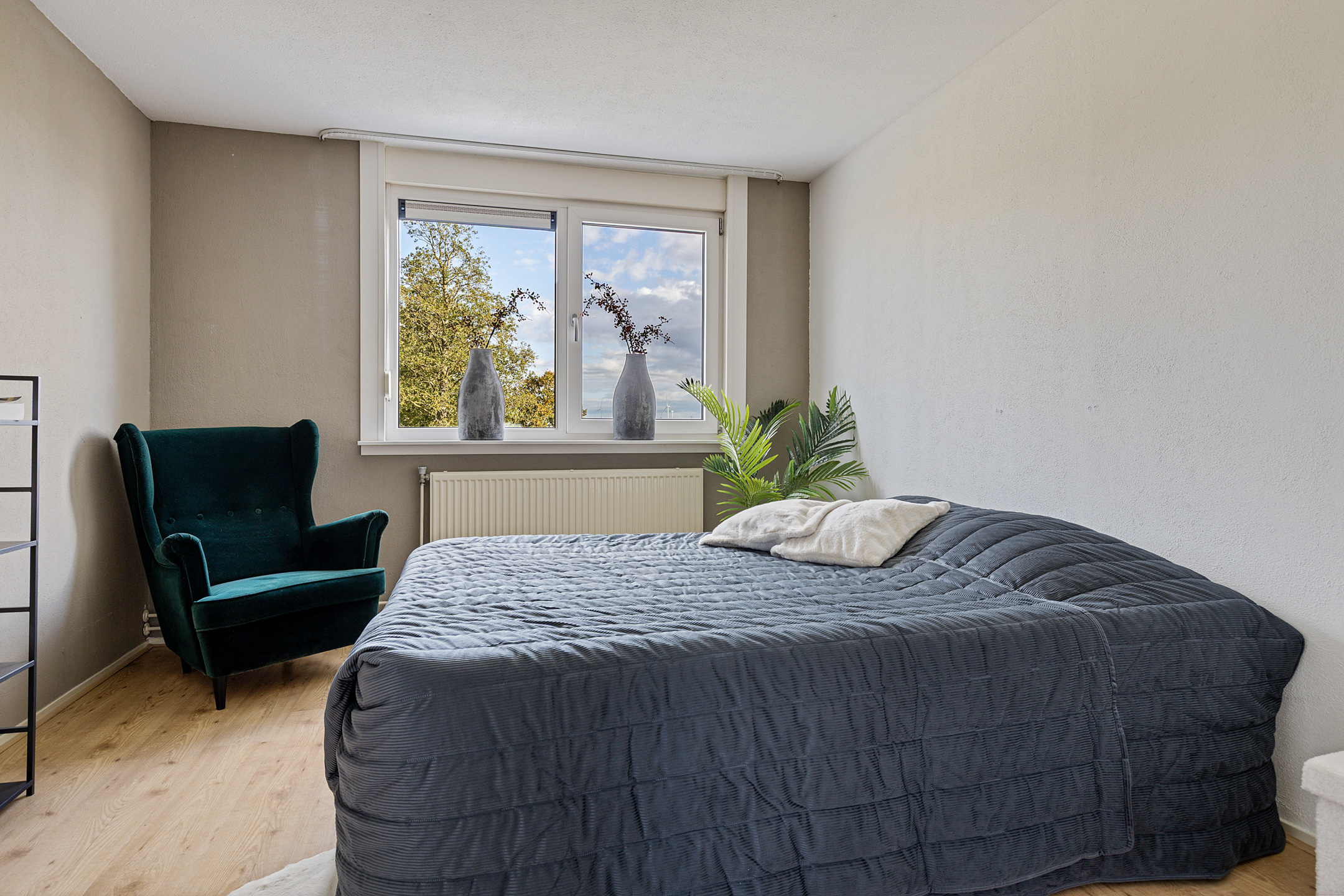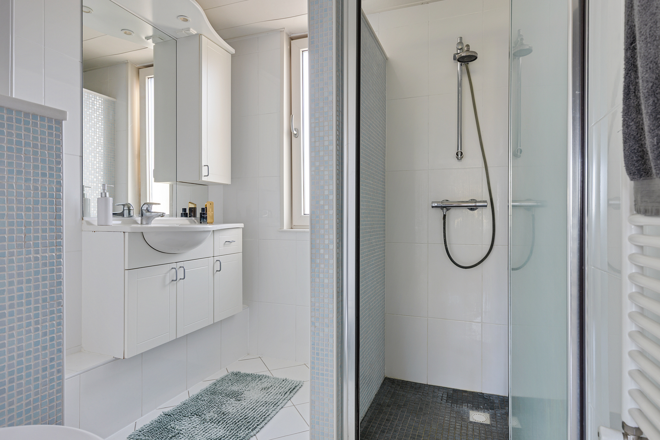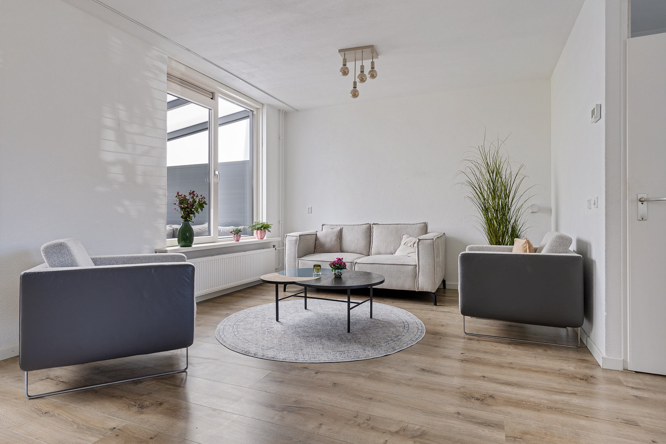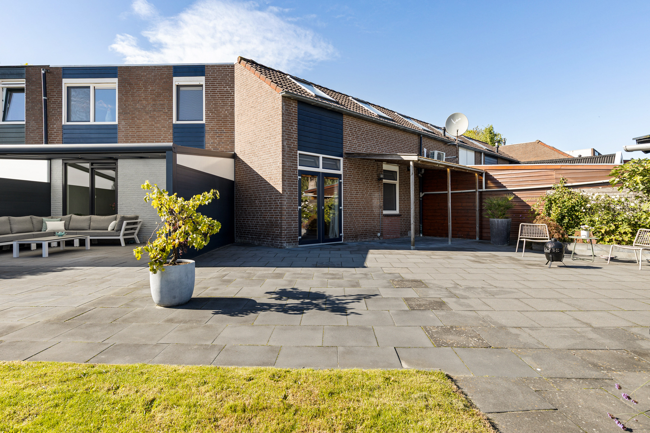 Op de begane grond zoals gezegd een slaap- en badkamer, waarbij eerstgenoemde aan de rustige, tuinzijde van de woning is gesitueerd. Ook de aanwezigheid van een bijkeuken is niet standaard in het straatbeeld. Helemaal niet met de afmetingen als op huisnummer 103. Aan de tuinzijde verder de woonkamer met tuindeur naar de heerlijke veranda. De open en moderne keuken is juist aan de straatzijde gesitueerd, net als de entree met toilet en trapopgang naar de eerste verdieping. Op deze verdieping biedt de overloop toegang tot nog eens drie slaapkamers waarvan twee met laminaatvloeren, een tweede - keurige - badkamer en stook- annex bergruimte.