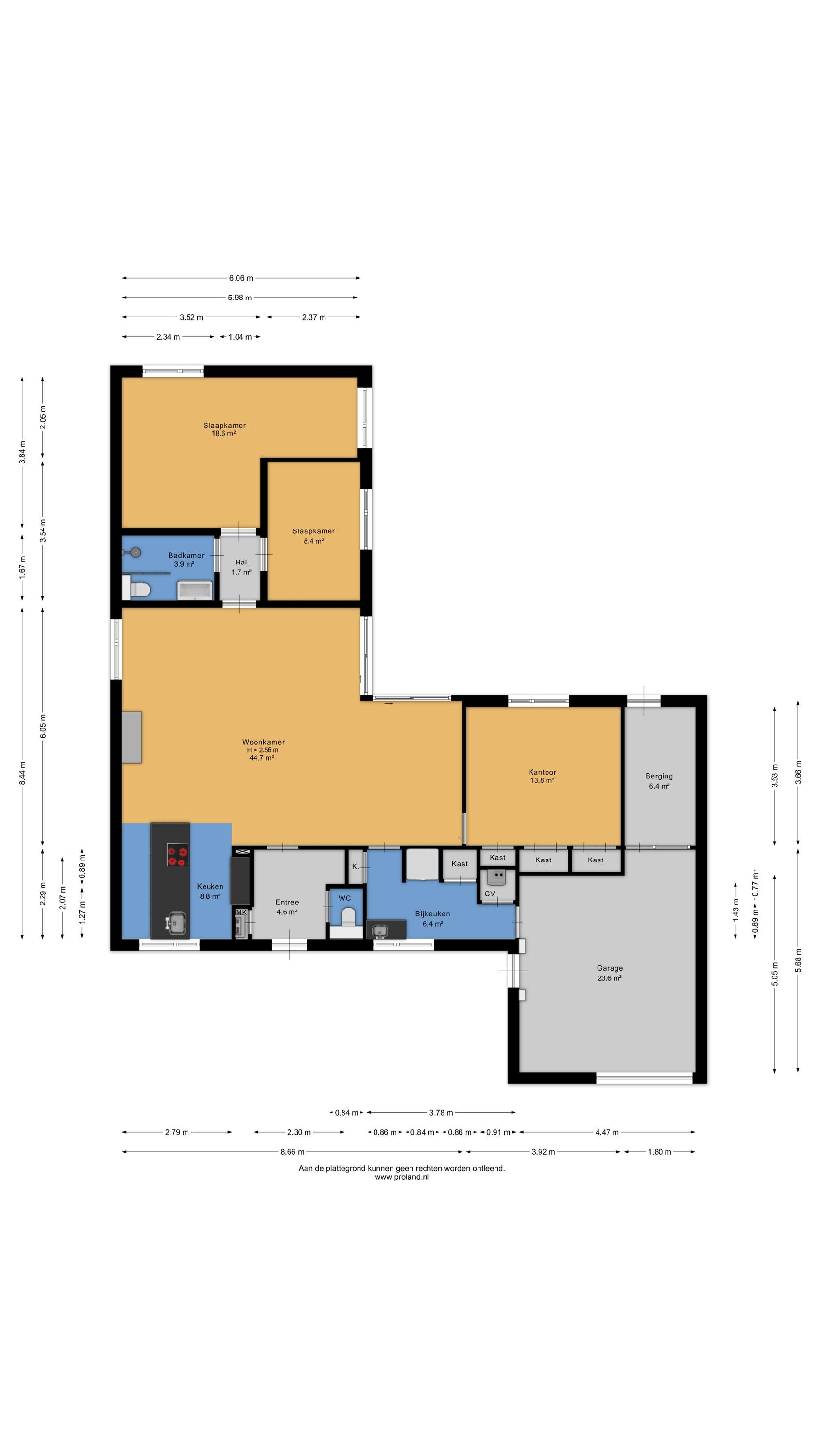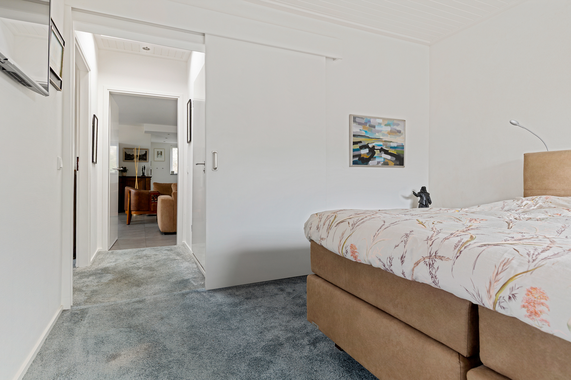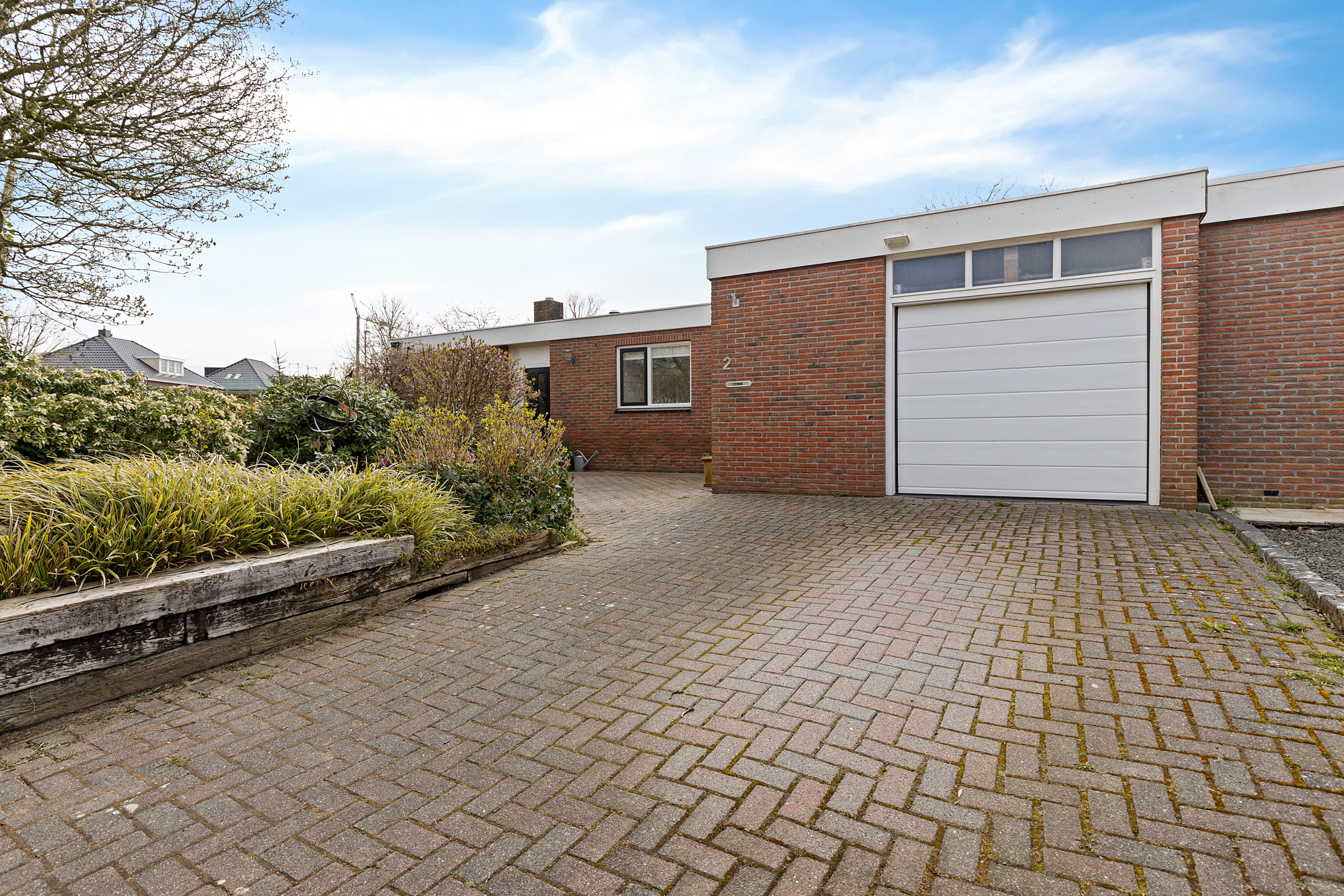 Zoals van een bungalow bekend zijn alle vertrekken op de begane grond gesitueerd, zo ook aan de Grote Belt 2. De indeling is tuingericht te noemen, aangezien alle leefruimtes grenzen aan de tuin op het zuiden en dus ook als zonnig kunnen worden bestempeld. Aan de straatzijde bevindt zich de entree voorzien van een modern toilet alsmede meterkast. Vanuit de hal is vervolgens de Z-vormige woonkamer te bereiken, voorzien van een dubbele schuifpui en een fraaie tegelvloer die drempelloos ‘doorloopt’ naar de open keuken. Deze keuken biedt weer uitzicht op de straat en beschikt over een moderne inrichting met inbouwapparatuur. In totaal zijn er drie slaapkamers aanwezig, samen met een moderne badkamer. Het geheel wordt gecompleteerd middels een bijkeuken, stookruimte, berging en inpandige garage.