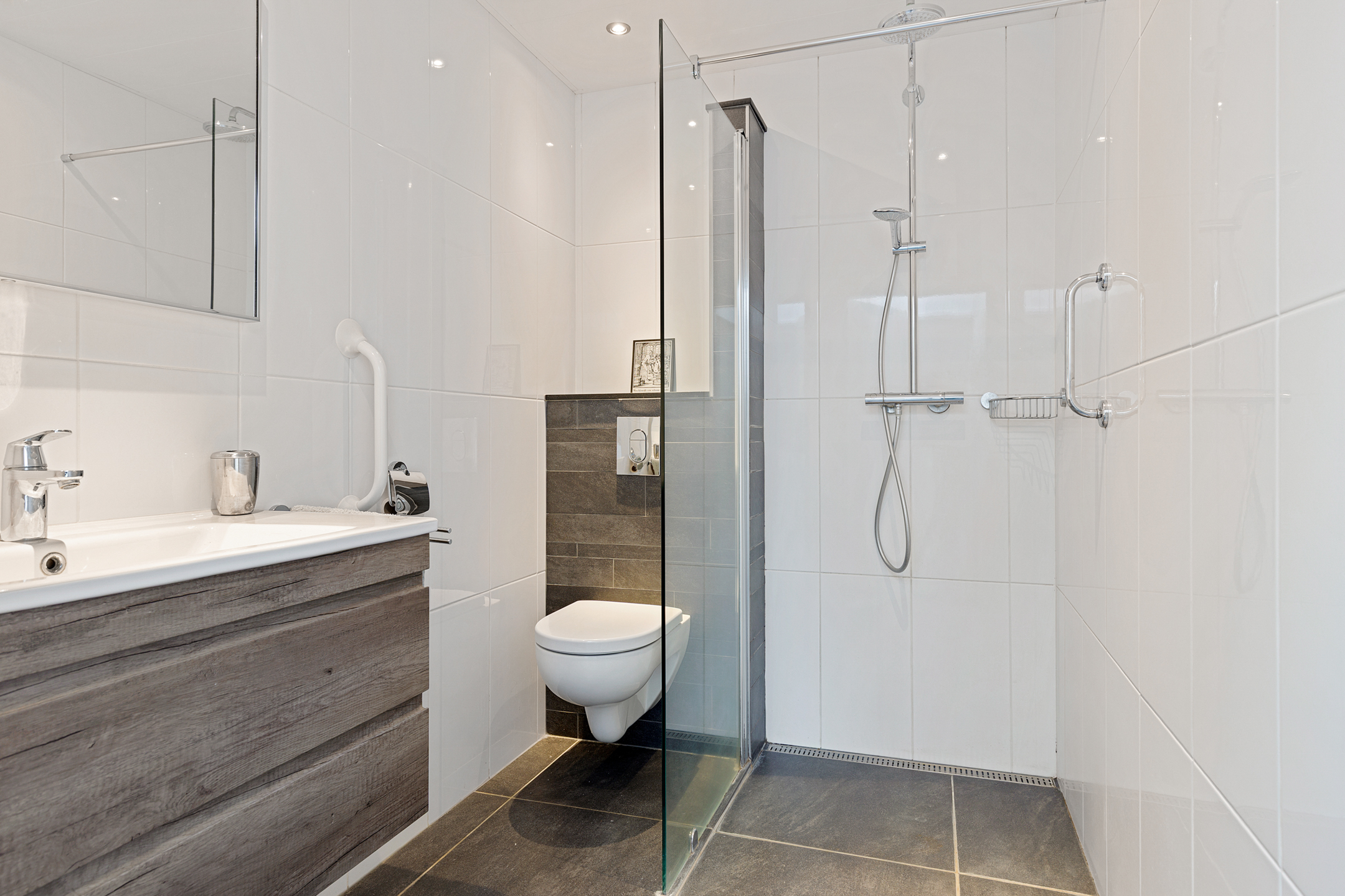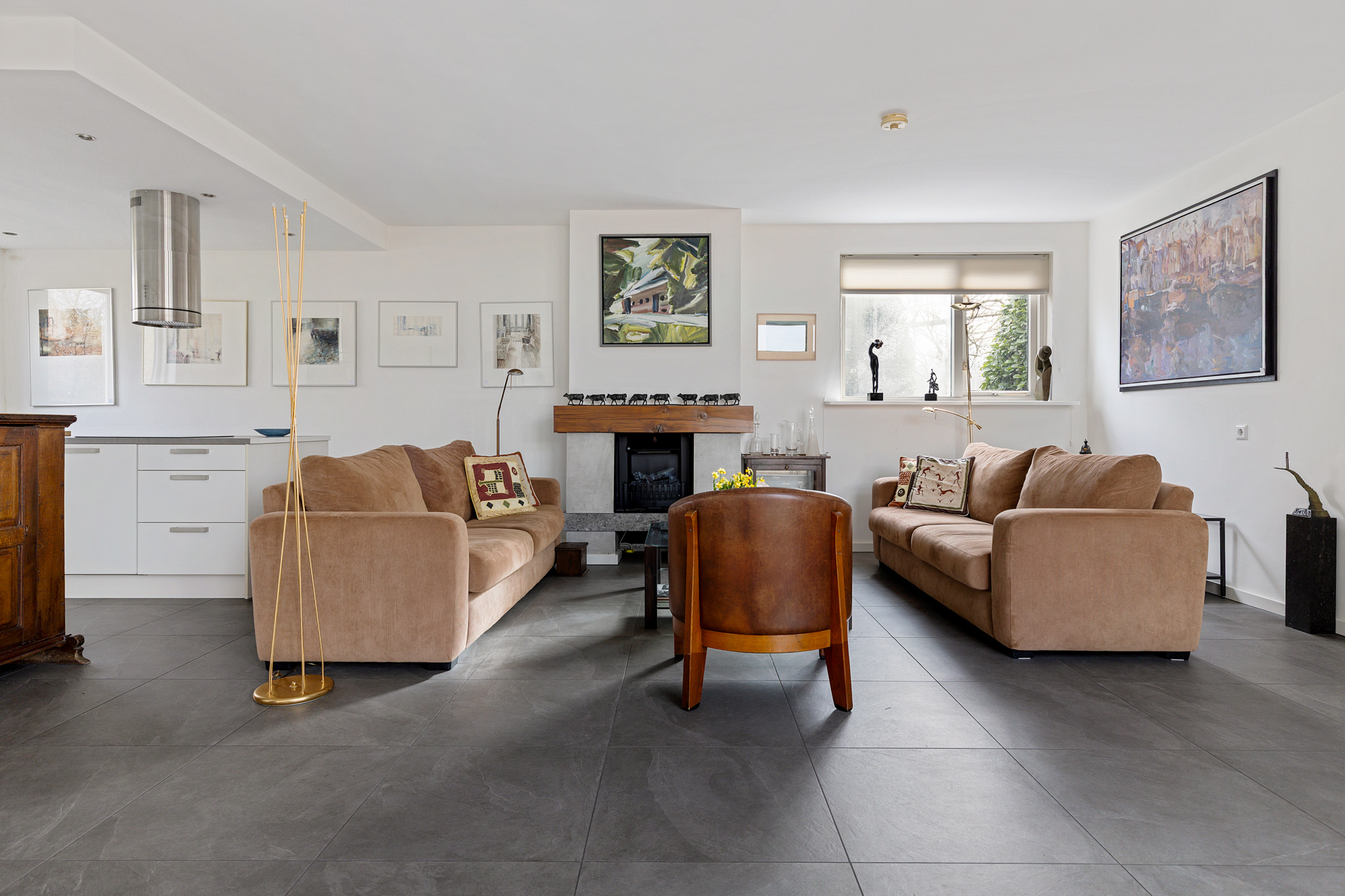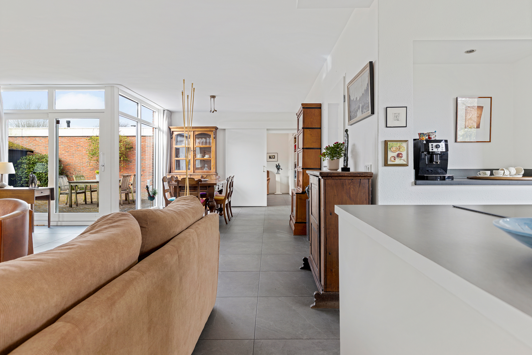 Zoals van een bungalow bekend zijn alle vertrekken op de begane grond gesitueerd, zo ook aan de Grote Belt 2. De indeling is tuingericht te noemen, aangezien alle leefruimtes grenzen aan de tuin op het zuiden en dus ook als zonnig kunnen worden bestempeld. Aan de straatzijde bevindt zich de entree voorzien van een modern toilet alsmede meterkast. Vanuit de hal is vervolgens de Z-vormige woonkamer te bereiken, voorzien van een dubbele schuifpui en een fraaie tegelvloer die drempelloos ‘doorloopt’ naar de open keuken. Deze keuken biedt weer uitzicht op de straat en beschikt over een moderne inrichting met inbouwapparatuur. In totaal zijn er drie slaapkamers aanwezig, samen met een moderne badkamer. Het geheel wordt gecompleteerd middels een bijkeuken, stookruimte, berging en inpandige garage.