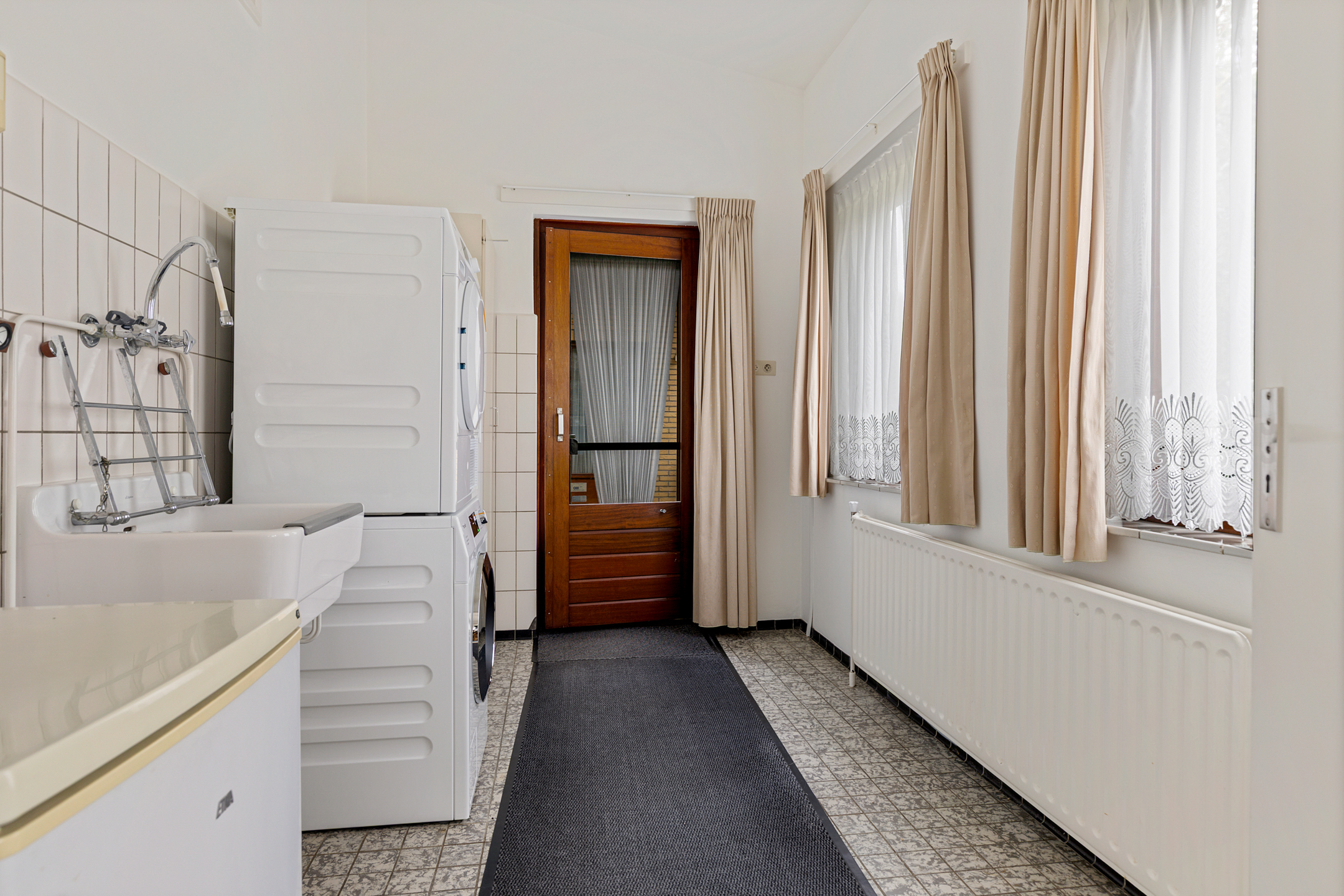 Via de entree aan de voorzijde betreedt u de woning en komt u in een ruime hal met meterkast en toegang tot de verschillende ruimtes. De centrale hal met betegeld toilet biedt op haar beurt toegang tot de meeste vertrekken in de woning. Allereerst de royale woonkamer aan de straatzijde met uitzicht over het Damsterdiep. Daarnaast bevindt zich de keuken met aangrenzende bijkeuken, voorzien van witgoedaansluitingen en een buitendeur. Vanuit de hal zijn tevens drie slaapkamers bereikbaar, evenals een keurige badkamer met ligbad, douche, toilet en wastafel.
