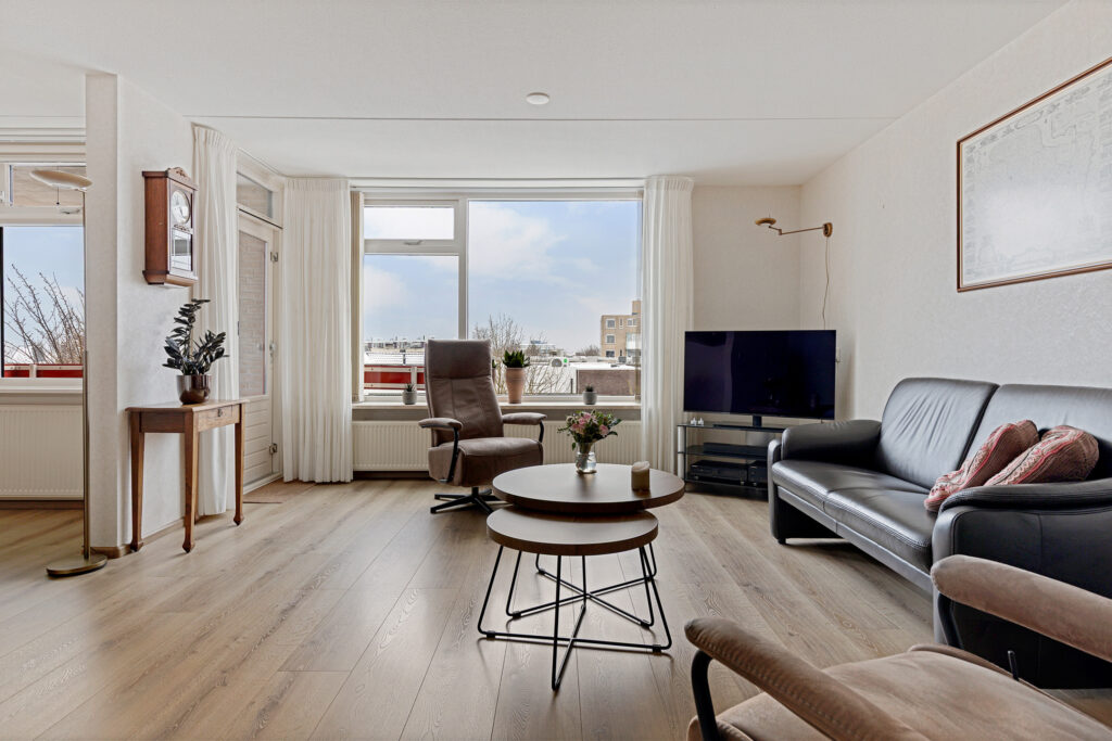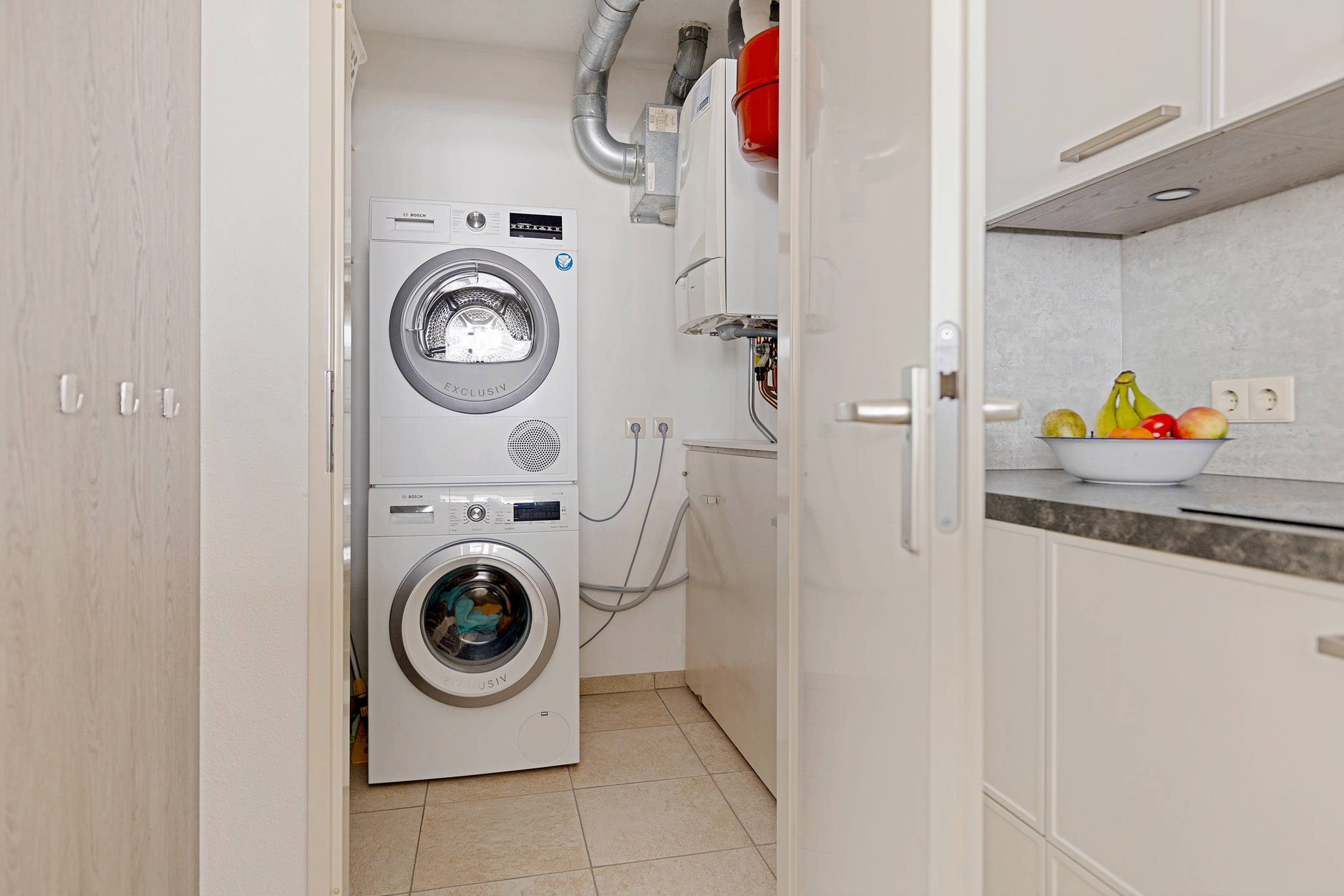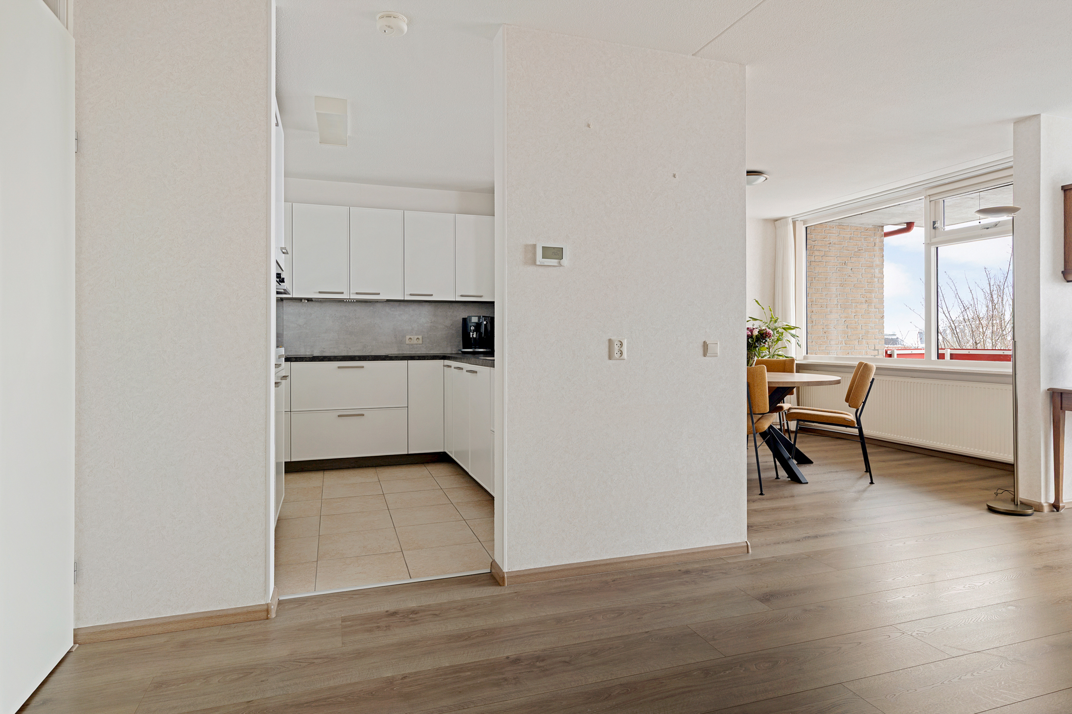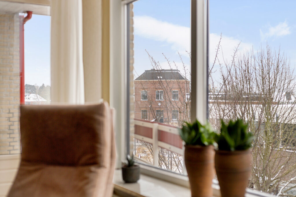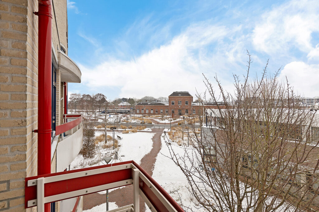 De indeling van het appartement bestaat onder meer uit een ontvangsthal met de meterkast. Deze centrale hal biedt op haar beurt toegang tot een tweetal - bovengemiddeld grote - slaapkamers aan de achterzijde van het appartement, waarvan één is voorzien van een vaste kast. Ook de keurig betegelde badkamer - ligbad, douche en vaste wastafel - en het dito betegeld toilet zijn toegankelijk vanuit de hal. Blikvanger van het appartement is toch echt de heerlijke woonkamer. Deze biedt namelijk een schitterend uitzicht over het stationsgebied, onder andere vanaf het aanpalende balkon. De keuken staat tot slot in een open verbinding met de woonkamer en beschikt over een moderne inrichting met alle inbouwapparatuur. Bovendien met een aansluitende bijkeuken voorzien van witgoedaansluitingen en stookruimte.