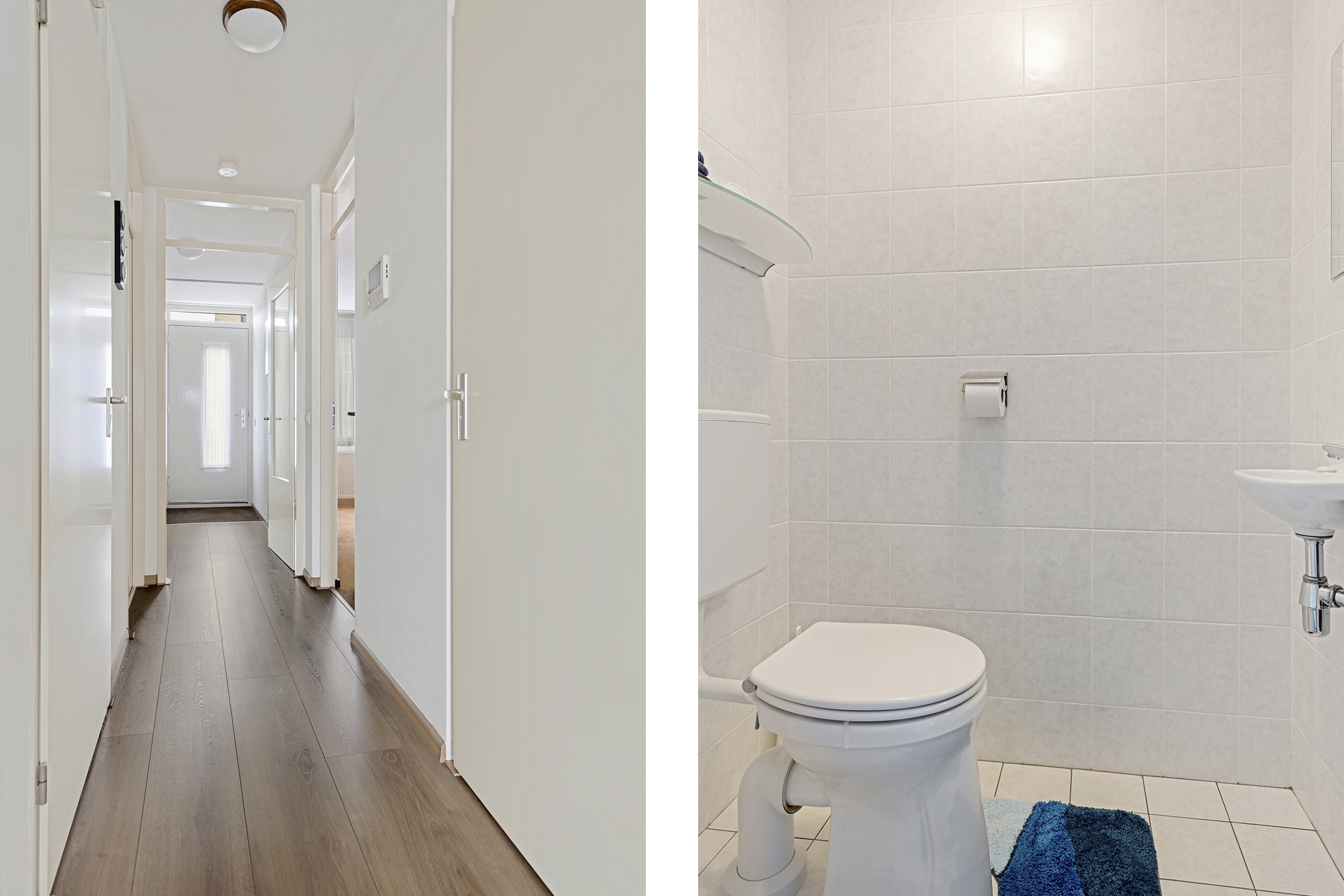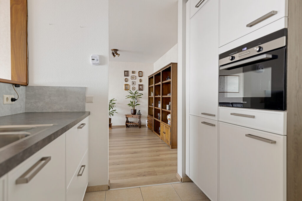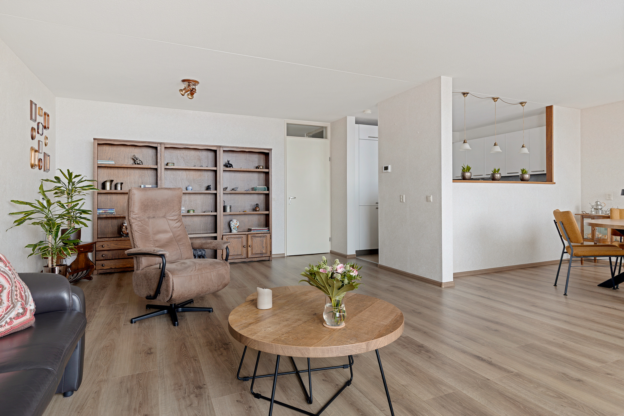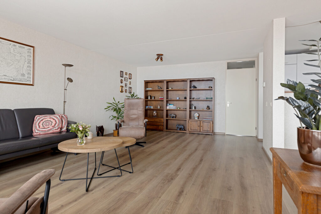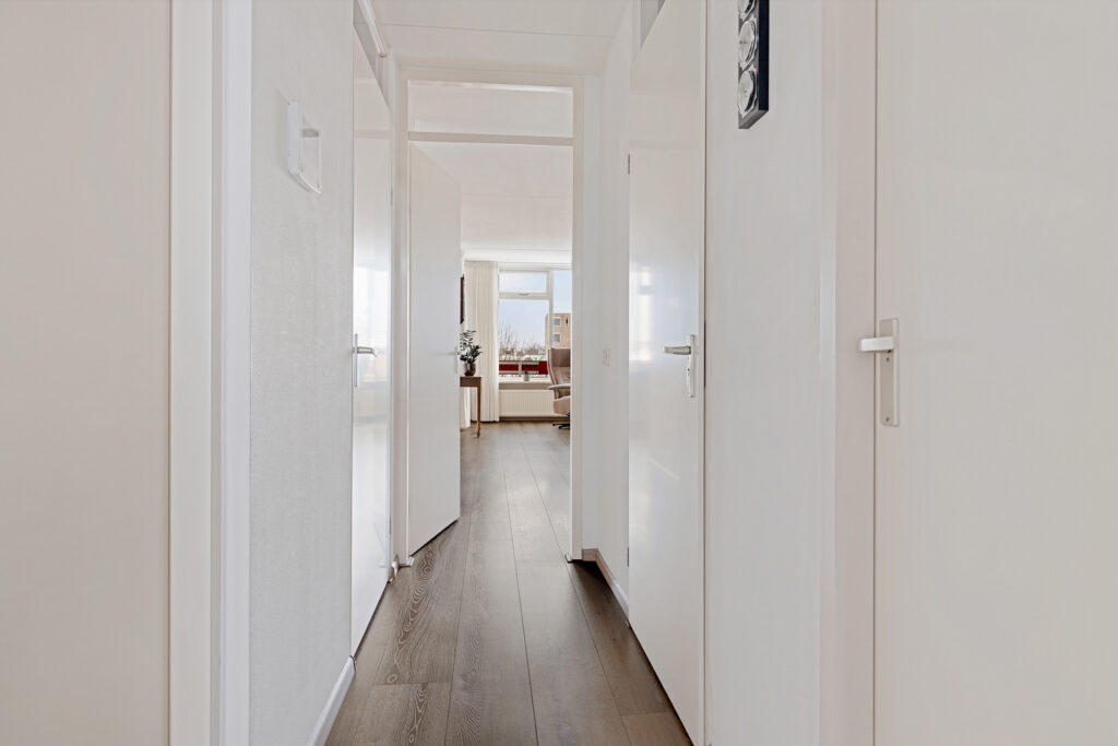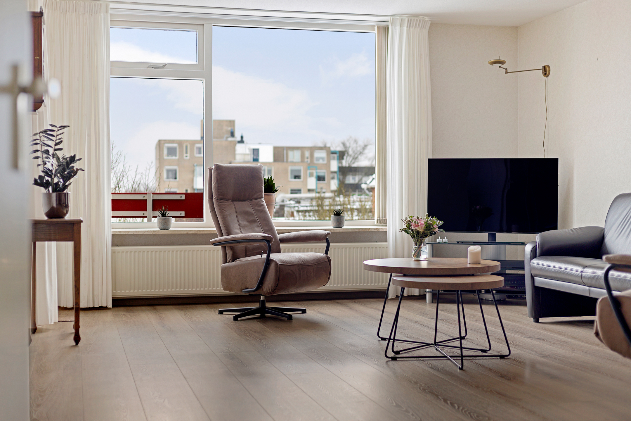 De indeling van het appartement bestaat onder meer uit een ontvangsthal met de meterkast. Deze centrale hal biedt op haar beurt toegang tot een tweetal - bovengemiddeld grote - slaapkamers aan de achterzijde van het appartement, waarvan één is voorzien van een vaste kast. Ook de keurig betegelde badkamer - ligbad, douche en vaste wastafel - en het dito betegeld toilet zijn toegankelijk vanuit de hal. Blikvanger van het appartement is toch echt de heerlijke woonkamer. Deze biedt namelijk een schitterend uitzicht over het stationsgebied, onder andere vanaf het aanpalende balkon. De keuken staat tot slot in een open verbinding met de woonkamer en beschikt over een moderne inrichting met alle inbouwapparatuur. Bovendien met een aansluitende bijkeuken voorzien van witgoedaansluitingen en stookruimte.