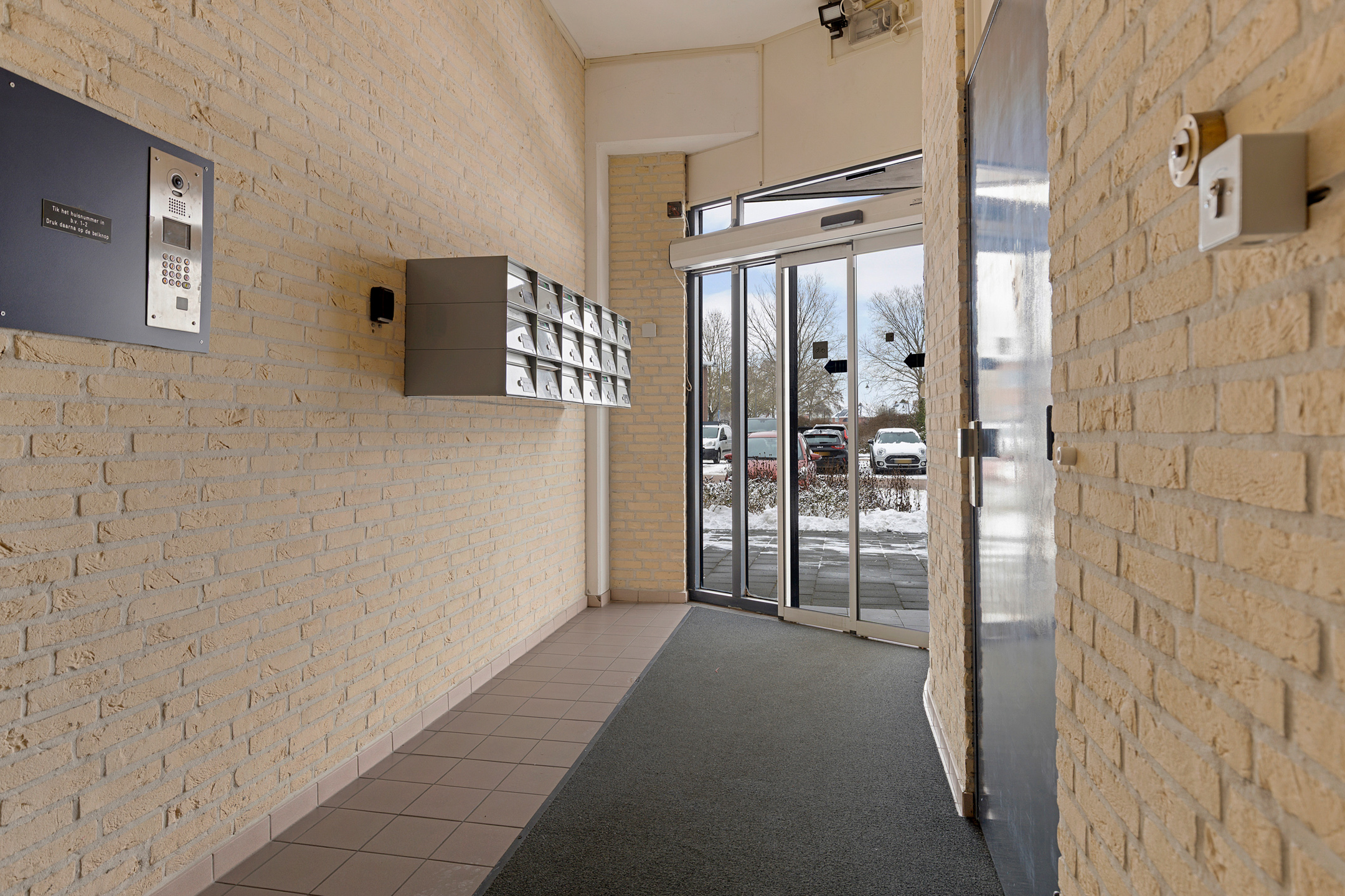 Aan de rand van het winkelcentrum maar bovenal met een fraai uitzicht op het vernieuwde stationsgebied bevindt zich een keurig appartementencomplex. De appartementen zijn op hun beurt toegankelijk middels een gesloten portiek aan de voorzijde van het complex, waarbij het is voorzien van een intercominstallatie met beeld, een liftinstallatie, een keurig trappenhuis en gemeenschappelijke fietsenberging. Het complex verkeert in een keurige staat van onderhoud, onder meer als gevolg van de gezonde financiële status van de VvE. Op huisnummer 30 mag Brandsma De Jong een royaal appartement te koop aanbieden, inclusief een eigen berging en parkeerplaats.