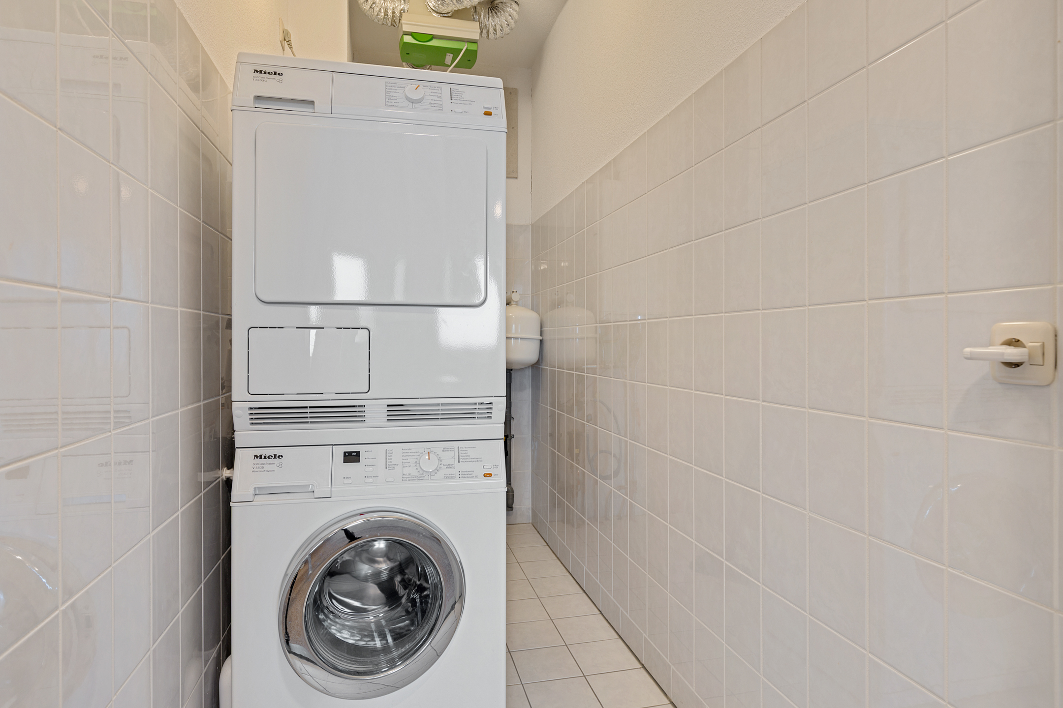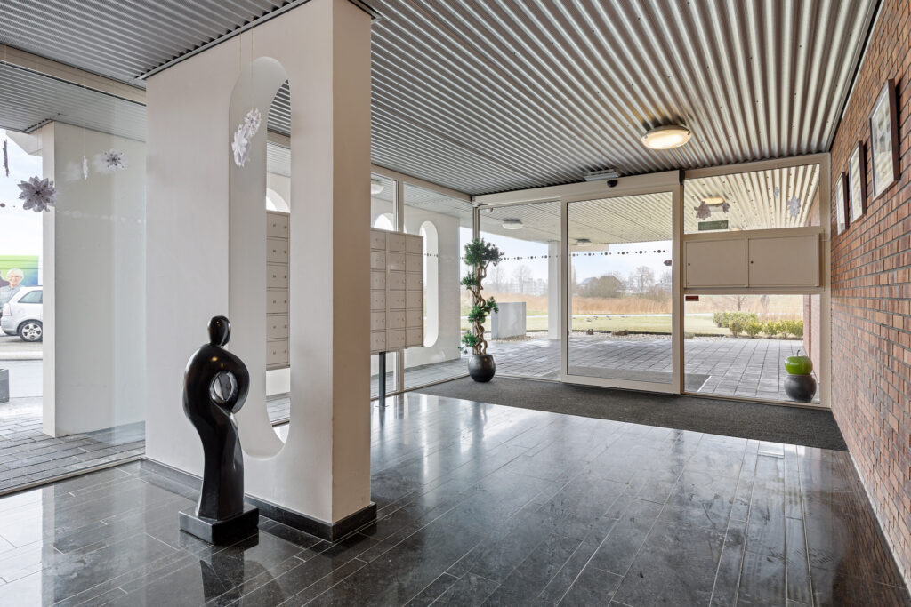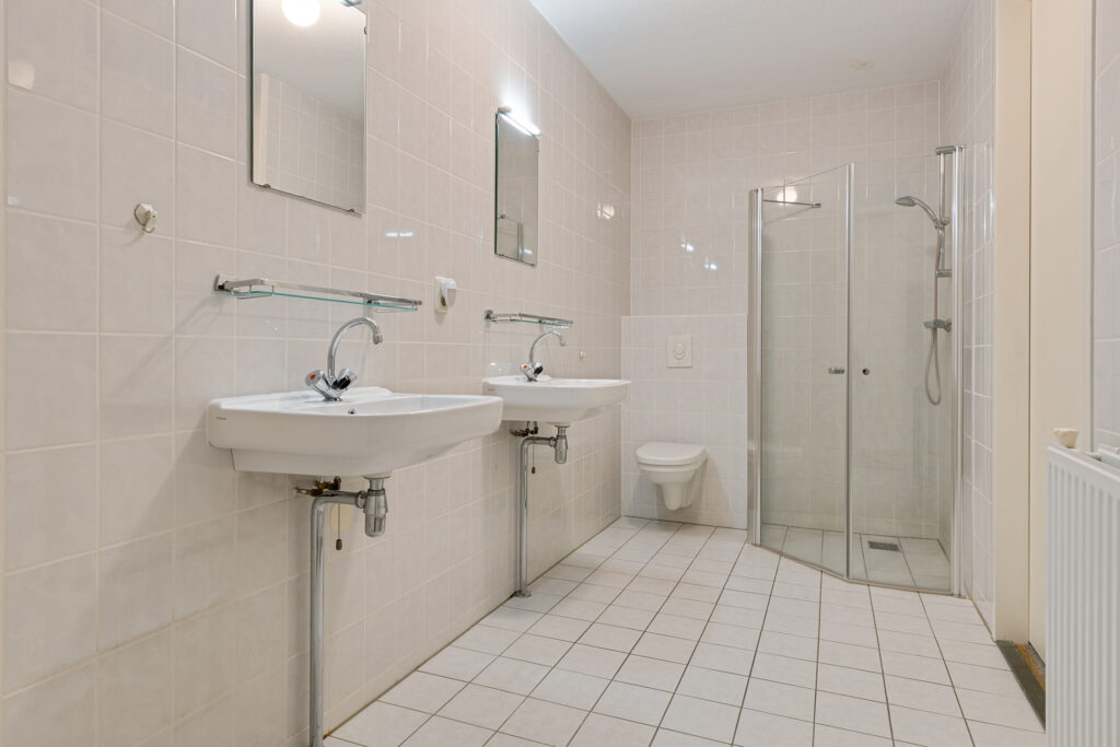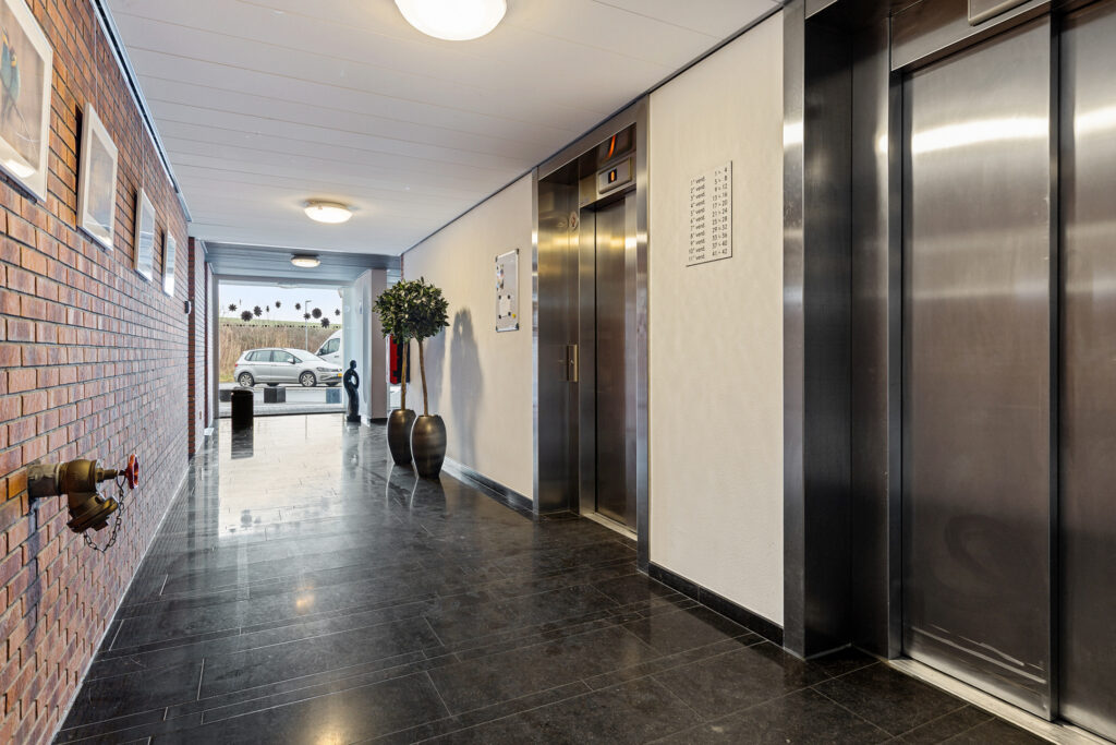 Entree/hal met meterkast, toilet en aangrenzend bijkeuken (ca. 3,5 m²; met witgoedaansluitingen en cv-opstelling), slaapkamer (ca. 16 m²), slaapkamer (10,5 m²; met kastenwand) en slaapkamer (ca. 19 m²). Vanuit laatstgenoemde slaapkamer en hal te bereiken badkamer (ca. 7,5 m²; met douche, toilet en twee wastafels), half open keuken (ca. 8 m²; met keukenblok voorzien van 4-pits gaskookplaat, combi-magnetron, afzuigkap en koel-/vriescombinatie), woonkamer (ca. 43,5 m²; met dubbele schuifpui naar het royale balkon (ca. 40 m²).