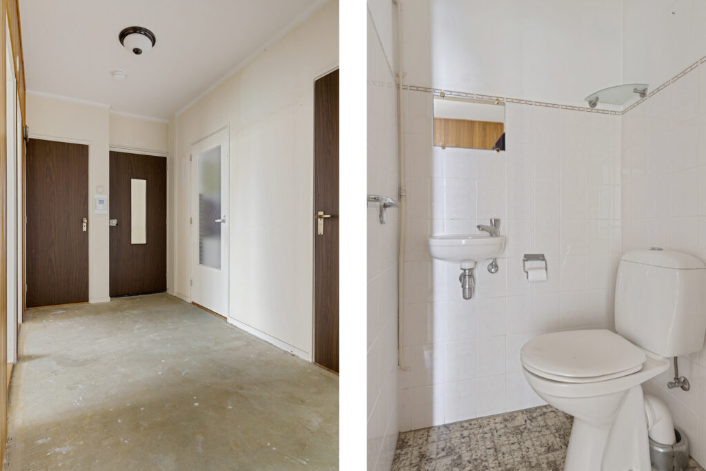 In het tweede complex gemeten vanuit het stadscentrum mag Brandsma De Jong een appartement op de tweede woonlaag te koop aan bieden. Opvallend detail? Het beschikt nog over de originele indeling, verkeert grotendeels nog in de originele staat maar is ook in bezit bij de ‘originele’ eigenaar… Op de woonverdieping beschikt het appartement over twee balkons met een berging op de begane grond. Het complex is te betreden via een gesloten portiek met intercom en liftinstallatie. De originele indeling beschikt over een woonkamer, dichte keuken met een eenvoudige inrichting en drie slaapkamers. Daarnaast is er uiteraard een keurig betegelde badkamer aanwezig, samen met een eenvoudig toilet. Het geheel maakt tot slot onderdeel uit van een gezonde VvE die middels subsidies grondig investeert in de duurzaamheid van het complex en het appartement op huisnummer 20A.