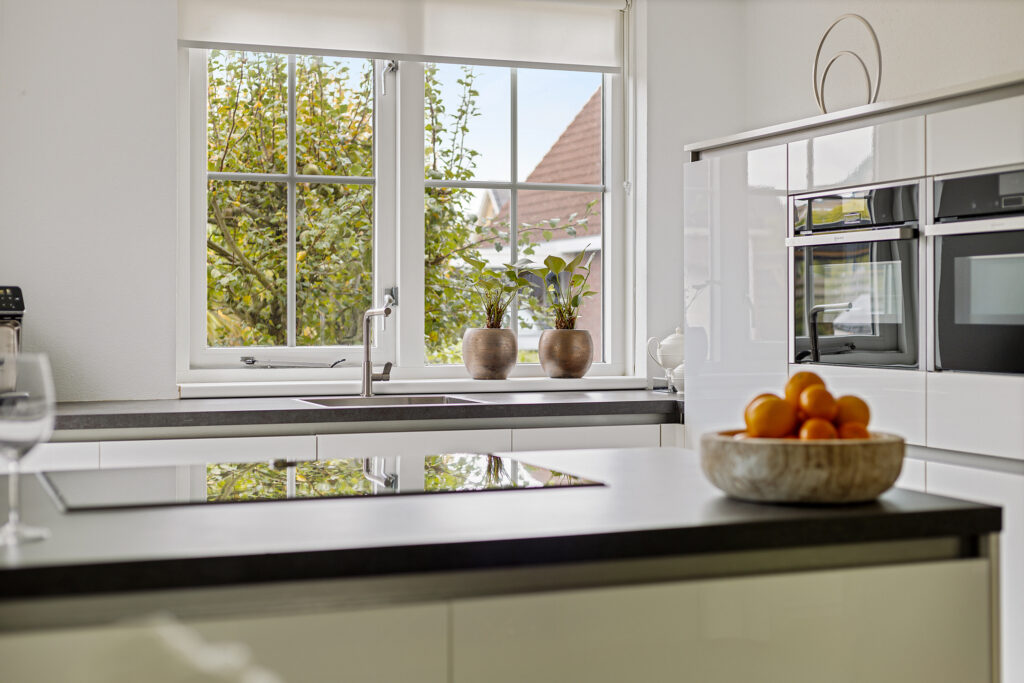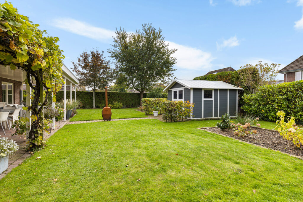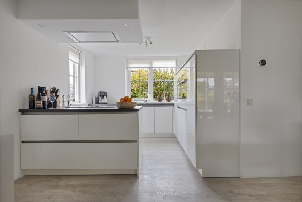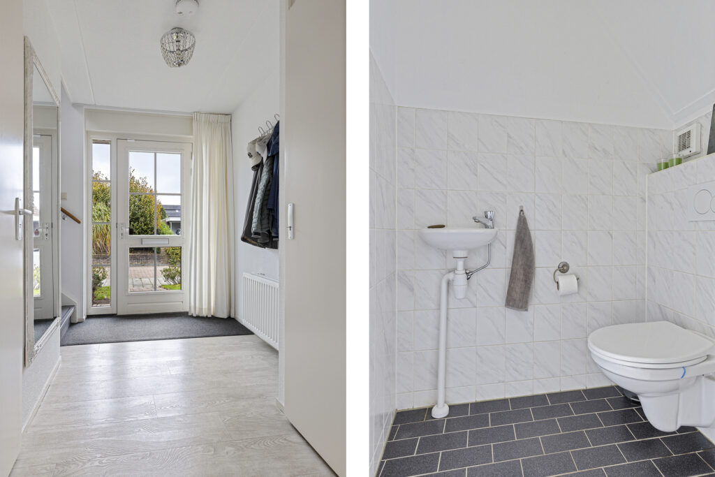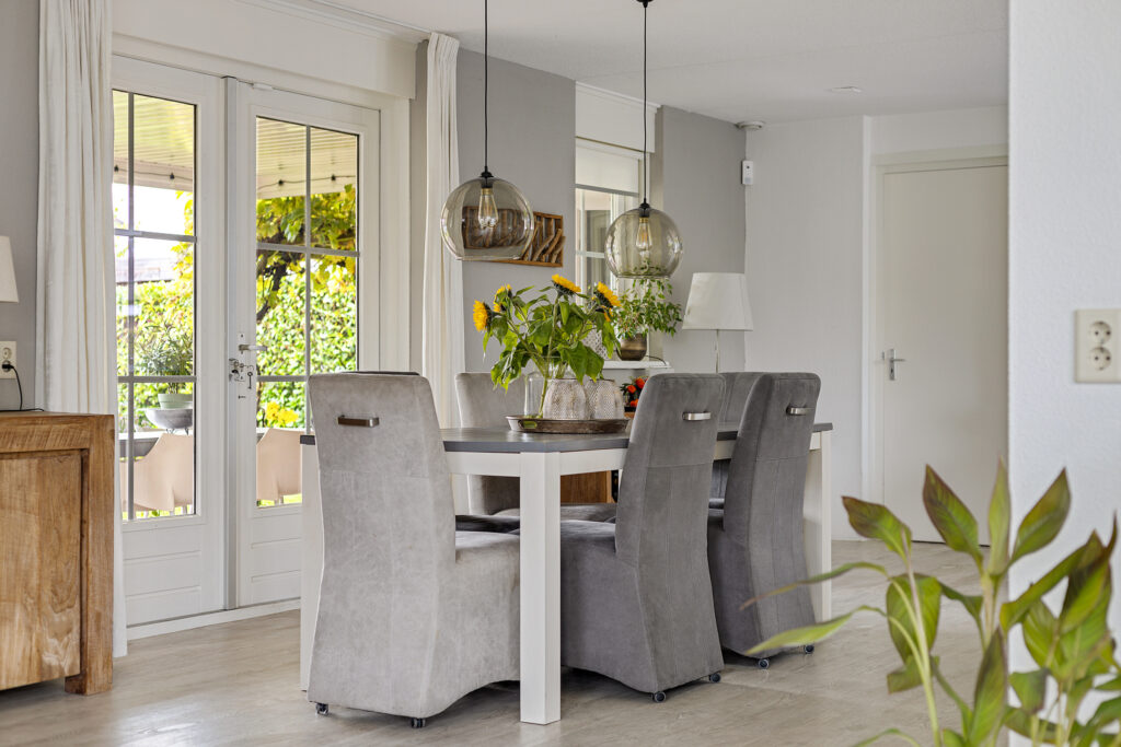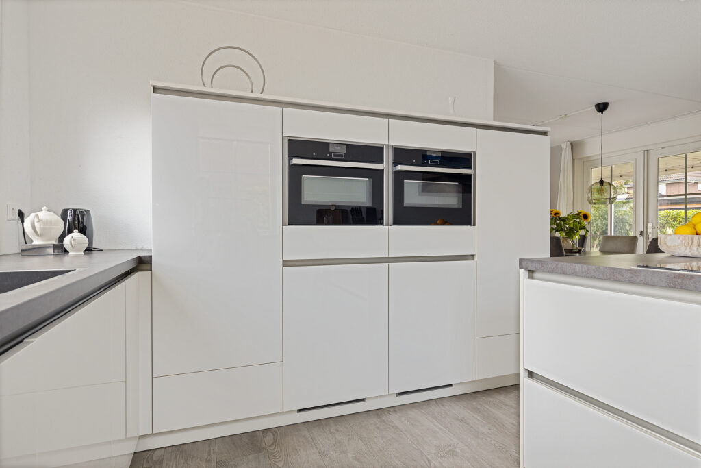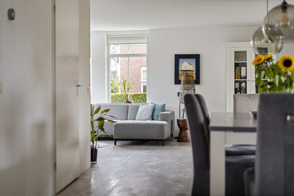 De woning is vanaf de openbare weg te betreden middels de entree in de voorgevel en leidt naar de ontvangsthal die beschikt over de trapopgang naar de eerste verdieping, de meterkast en het betegelde toilet. Vanuit de hal is vervolgens de L-vormige woonkamer te bereiken. Deze woonkamer beschikt over heerlijke tuindeuren naar de overkapping en een fraaie PVC-vloer die drempelloos ‘doorloopt’ naar de open eetkeuken. In 2018 is de inrichting van deze keuken vernieuwd en daarbij uitgevoerd in een uiterst moderne staat, voorzien van alle denkbare inbouwapparatuur. Het geheel wordt op de begane grond gecompleteerd door de functionele - dubbele - bijkeuken met witgoedaansluitingen, gerealiseerd in de oorspronkelijke garage.