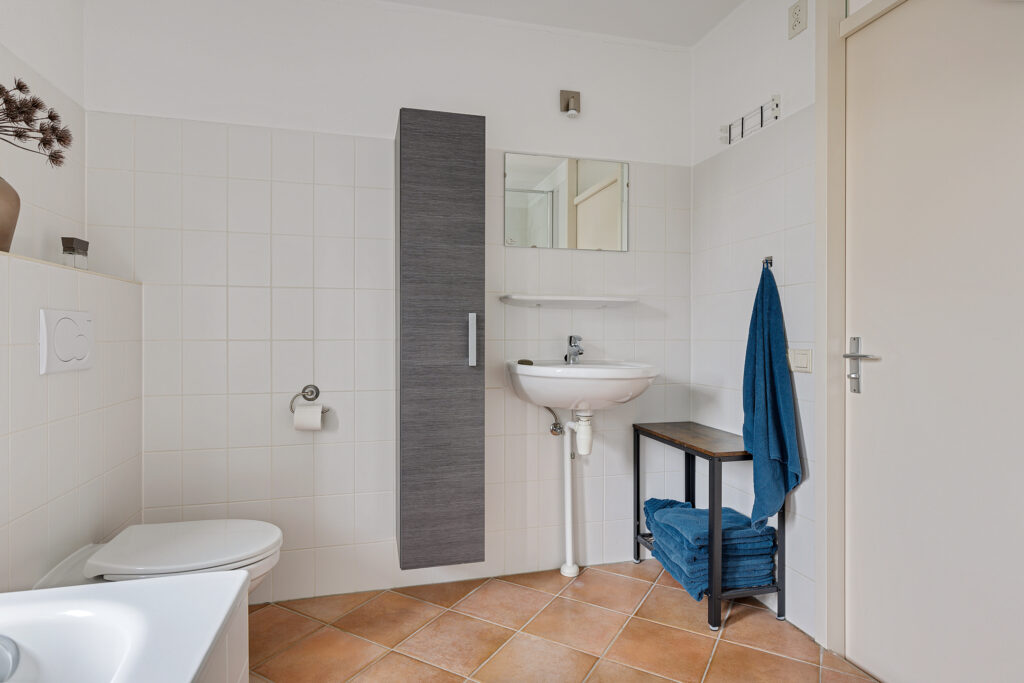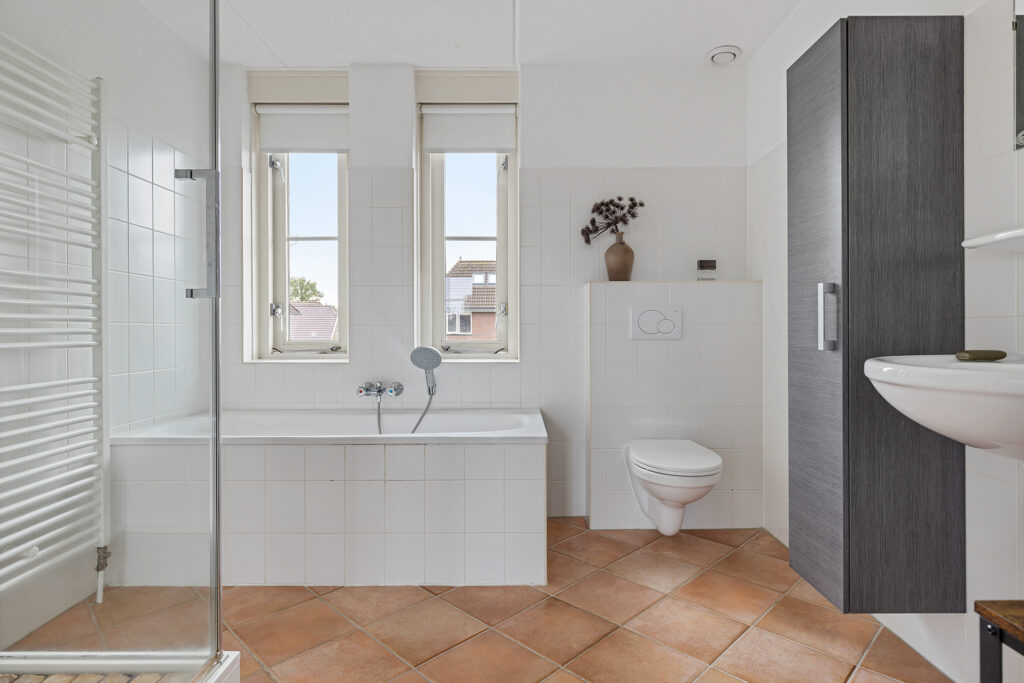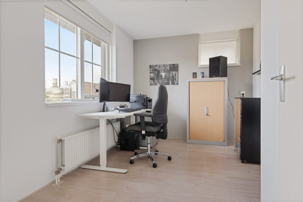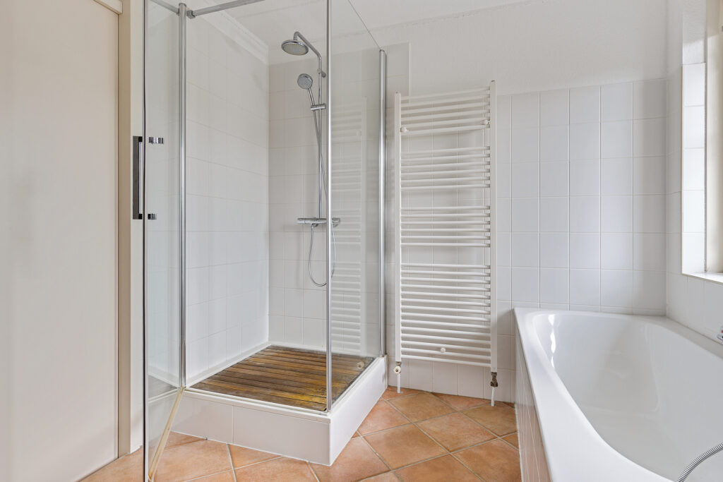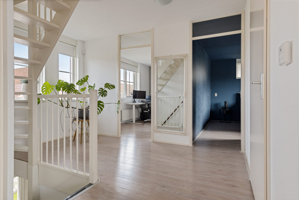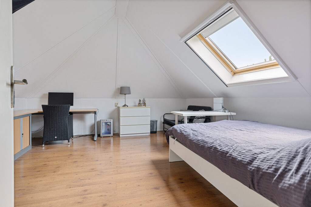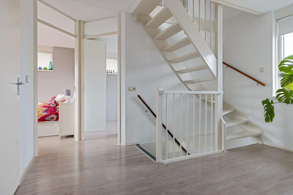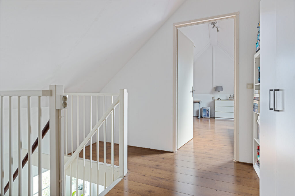 Op de eerste verdieping valt direct de ruime overloop op. Hier is in de eerste plaats een vaste trap aanwezig, die op haar beurt leidt naar de tweede verdieping. Vanaf de overloop zijn vervolgens de vier slaapkamers op deze woonlaag te betreden, allen voorzien van een keurige laminaatvloer. Ook de eigentijdse badkamer is op de eerste verdieping gesitueerd, compleet voorzien van een ligbad, douchecabine, wastafel en wandcloset. De tweede verdieping is ingericht met een overloop voorzien van een royale vijfde slaapkamer en een zolderberging. Door de keurige staat van inrichting en onderhoud van het geheel is het vrijwel direct na de aankoop te betrekken!