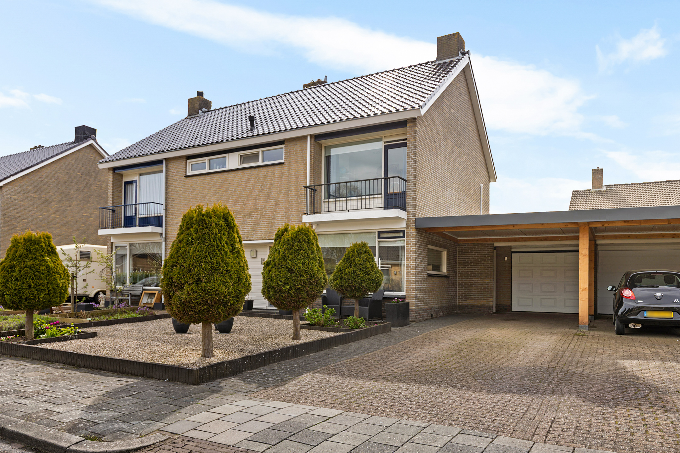 Uiteraard verkopen we vaker een 2-onder-1-kap woning, maar niet alle dagen één die uiterlijk zo afwijkend is als deze… Aan de Walker mogen we op huisnummer veertien namelijk een bijzondere versie te koop aanbieden. Bijzonder vanwege bijvoorbeeld de twee balkons aan de voor- en achterzijde. Naast bijzonder kan het ook als onderhoudsvriendelijk worden beschreven. Het beschikt namelijk over kunststof kozijnen met HR++ beglazing. Ook de indeling draagt bij aan een brede doelgroep door onder meer de aanwezigheid van vier slaapkamers. De heerlijke tuin die hierachter ‘schuilgaat’ is eveneens onderhoudsarm en recent verfraaid. Meer functioneel is aan de straatzijde een eigen oprit aanwezig, die leidt naar de aangebouwde garage. Naast een garage is ook een royale carport gerealiseerd. Uw auto staat dus altijd droog geparkeerd!
