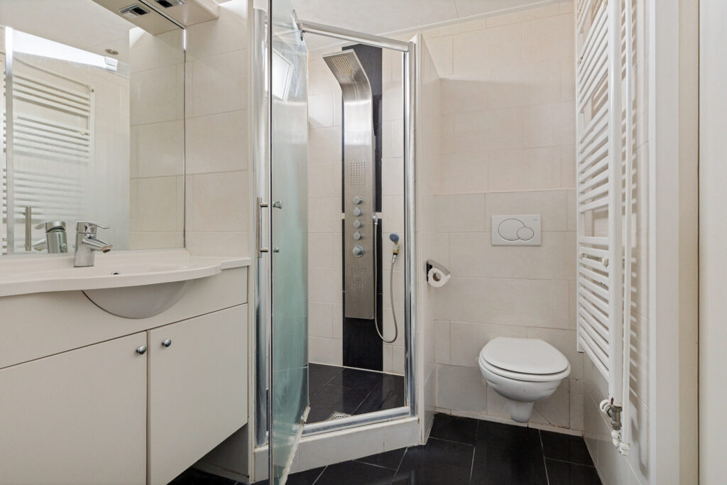 Dan de functionele indeling. In de eerste plaats de doorzon woonkamer voorzien van een fraaie laminaatvloer en een heerlijke schuifpui naar een kleine overkapping – balkon van de eerste verdieping - in de achtertuin. Daarnaast een open verbinding met de moderne keuken. Voorzien van alle inbouwapparatuur en met aansluitend en tuindeur. Uiteraard op de begane grond ook de ontvangsthal met het modern toilet en de trapopgang naar de eerste verdieping niet te vergeten. Op deze eerste verdieping zijn drie van de vier slaapkamers gesitueerd. Twee voorzien van een fraai balkon. Ook de eigentijdse badkamer bevindt zich op deze woonlaag. Compleet met douchecabinee, wastafelmeubel en tweede wandcloset. De vierde slaapkamer is op de tweede woonlaag gerealiseerd en toegankelijk vanaf een overloop met bergruimte.
