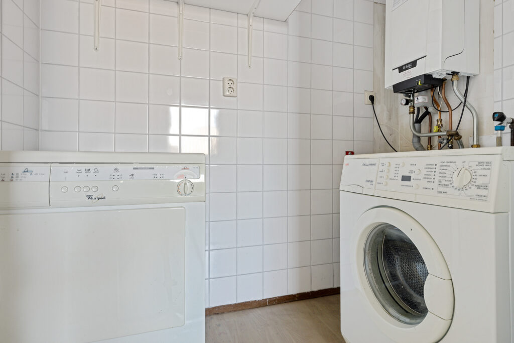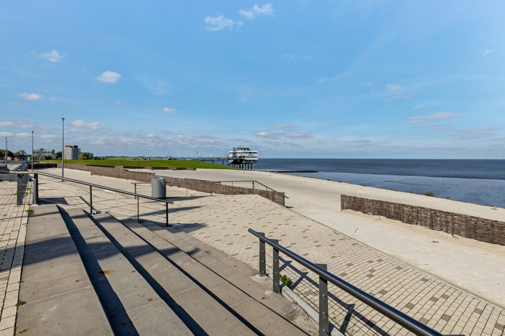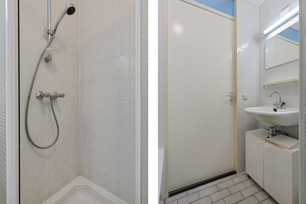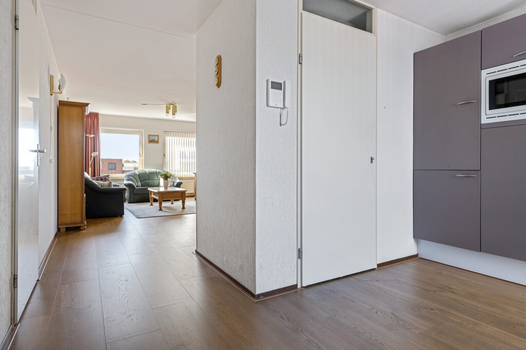 Vanuit de gesloten portiek leidt de lift u naar de eerste verdieping, waar u direct de voordeur van het appartement bereikt. De indeling van het appartement zelf is ‘straatgericht’ en dus levensloopbestendig te noemen. Zo bevindt de royale woonkamer met keurige laminaatvloer zich aan de zijde van de winkelstraat. De gezellige drukte van het winkelend publiek kunt u desgewenst vanuit uw stoel volgen… De eetkeuken is ook ruim te noemen en sluit aan op de woonkamer aan de achterzijde van het complex. Naast een keurige inrichting beschikt het ook over een bijkeuken annex was- en stookruimte maar biedt ook nog zicht op de zeedijk. Een tussenhal biedt toegang tot beide slaapkamers, één voorzien van keurige laminaatvloeren de ander met toegang tot de loggia. Ook het sanitair grenst aan de tussenhal. In de eerste plaats de keurige badkamer - ligbad, douchecabine en wastafel - maar ook het separaat toilet. Als eigenaar van de Waterstraat 161 bent u automatisch lid van de gezonde Vereniging van Eigenaren, waarvoor de maandelijkse bijdrage € 135,00 bedraagt.