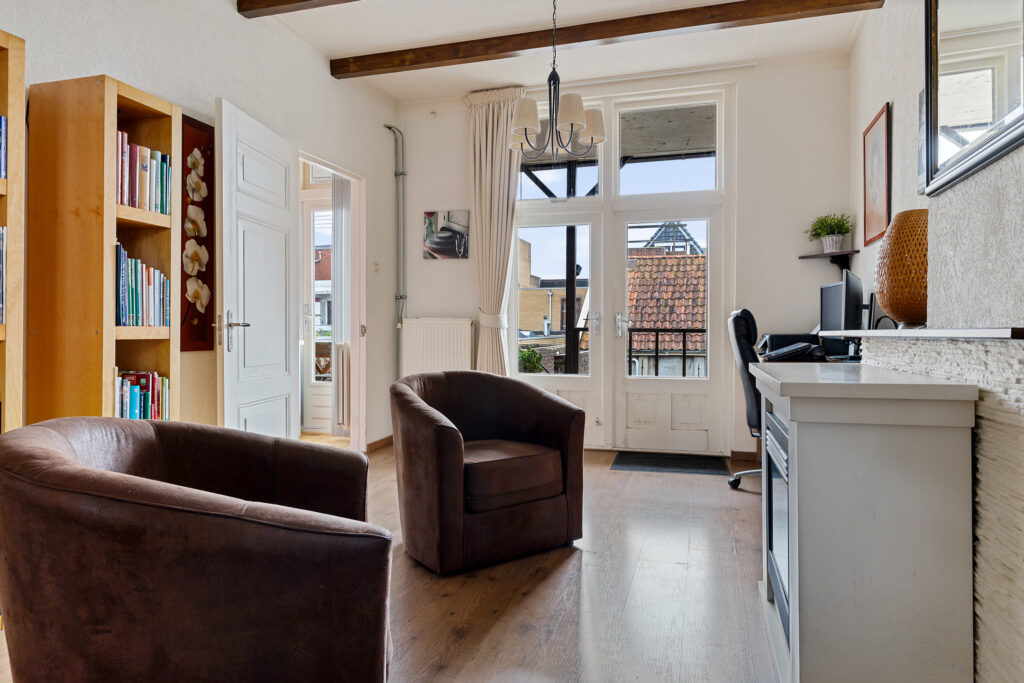 Midden in het centrum van Delfzijl bevindt zich deze ruim opgezette bovenwoning, type maisonette. Het betreft een sfeervol appartement met een uiterst royale woonkamer en 3 slaapkamers op de tweede verdieping. Aan de achterzijde bevindt zich een royaal dakterras, gesitueerd op het zuidoosten. Wat het geheel uniek maakt, is het feit dat er zich aan de achterzijde op de begane grond een tuin bevindt met een stenen berging. Daarbij zijn alle voorzieningen van Delfzijl op loopafstand te bereiken waaronder supermarkten, een gevarieerd winkelaanbod, meerdere restaurants en terrassen.