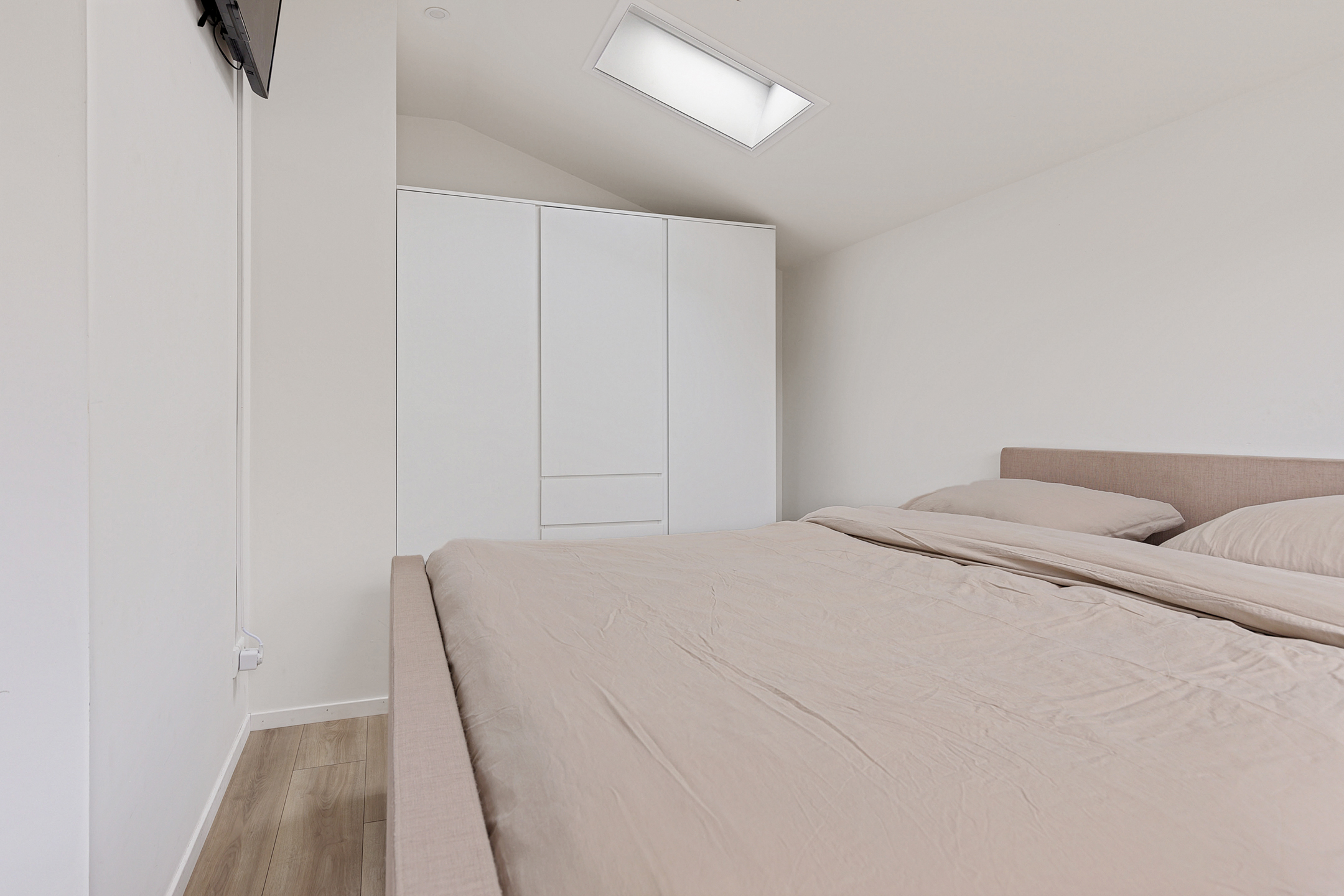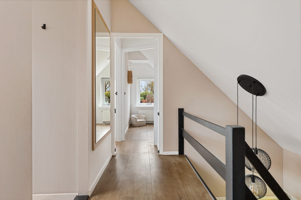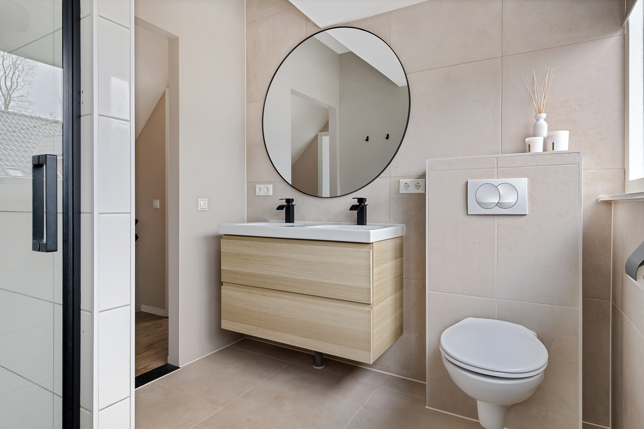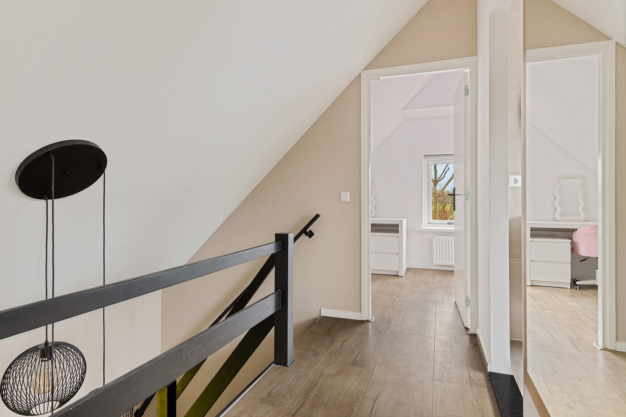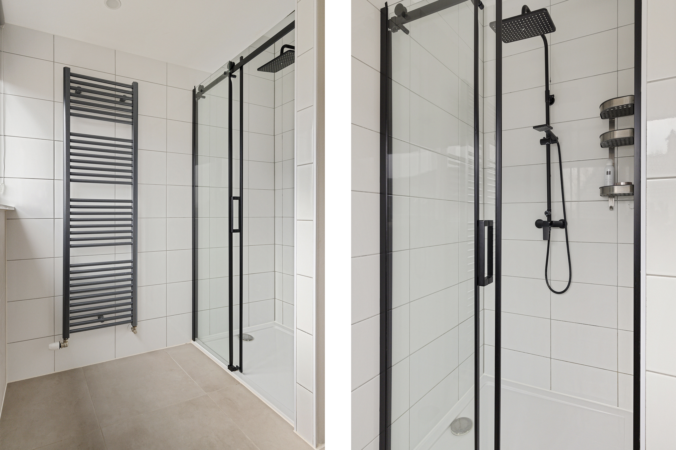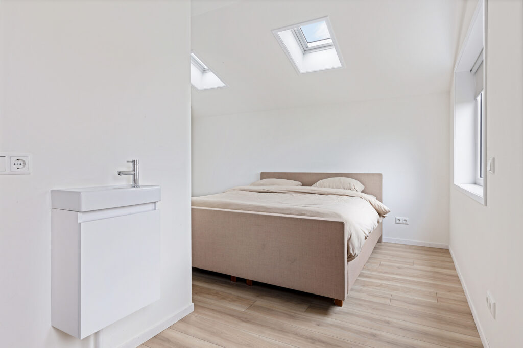 Op de verdieping tref je 3 slaapkamers van ca. 4, 7 en 8 m² en een moderne badkamer (ca. 6 m²) met dubbele wastafel, 2e toilet en doucheruimte.
