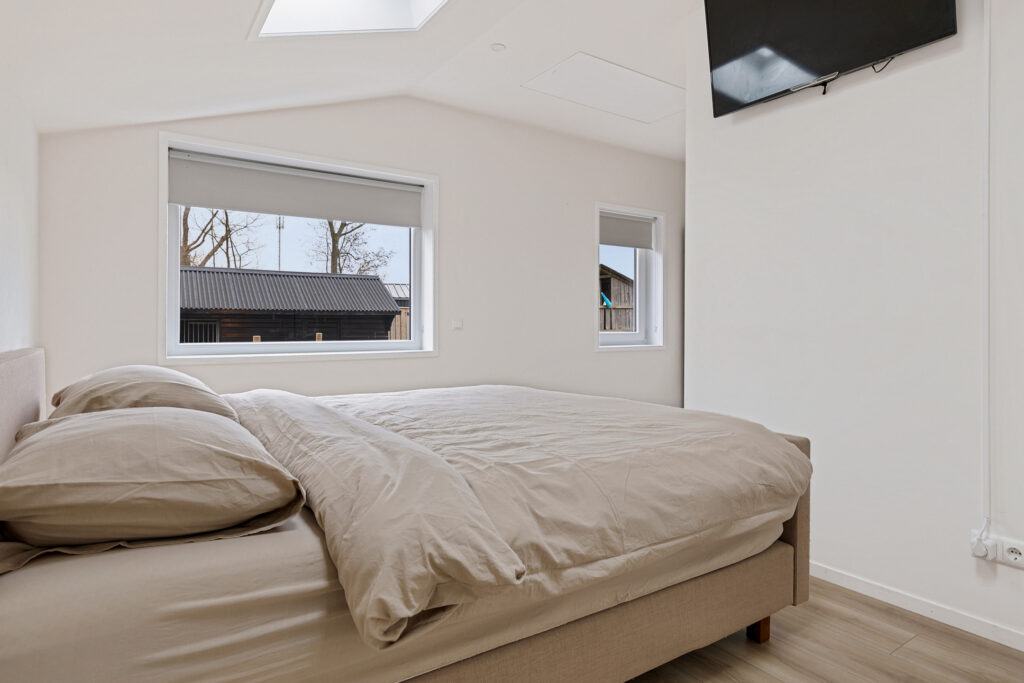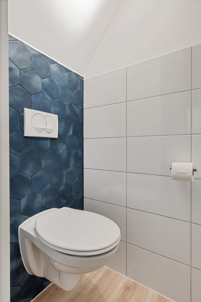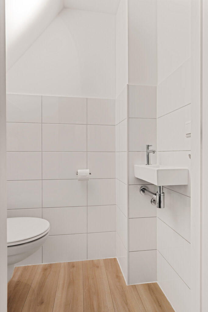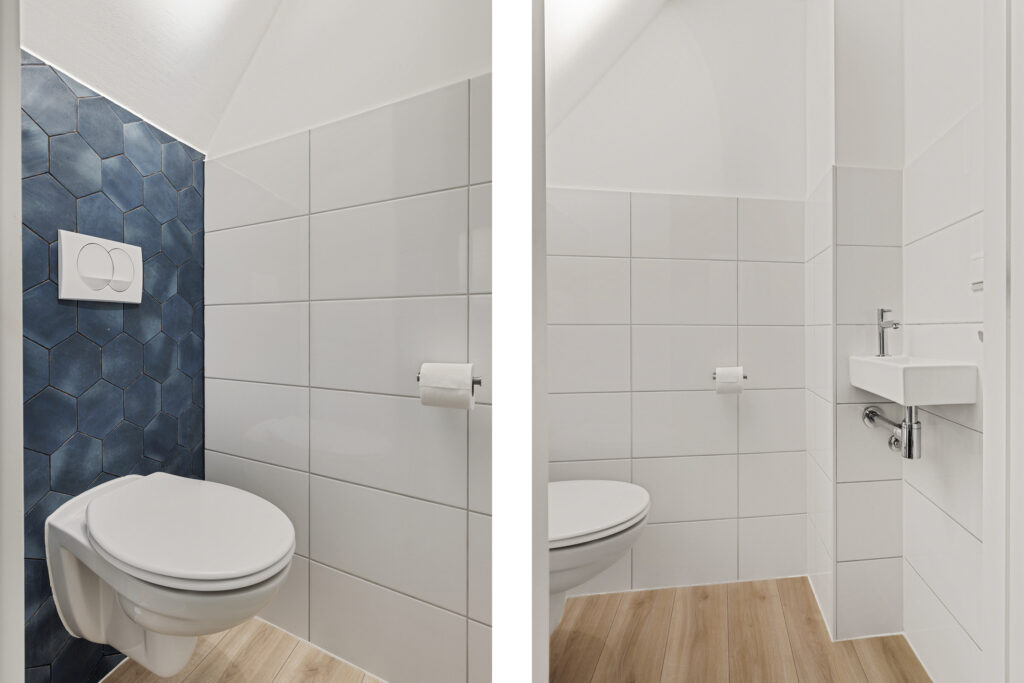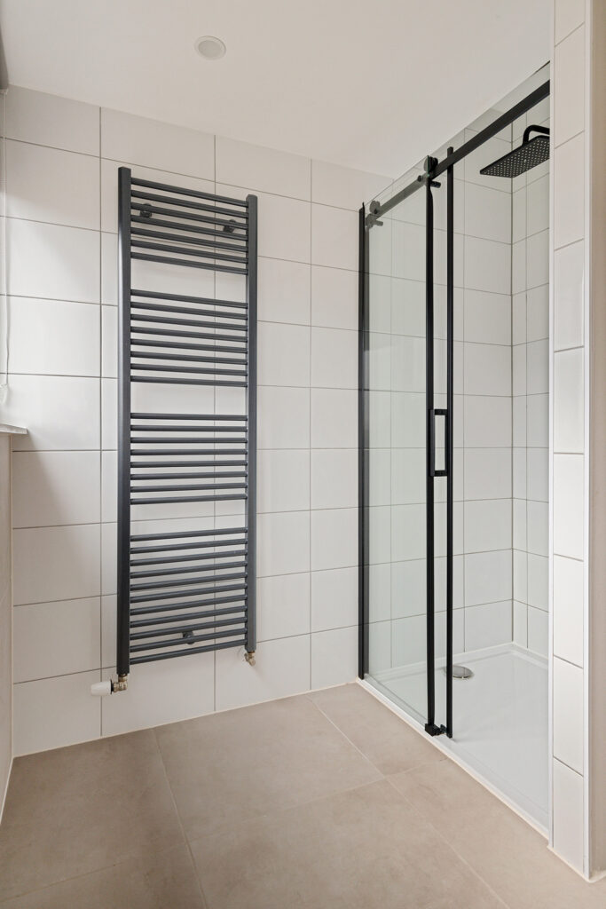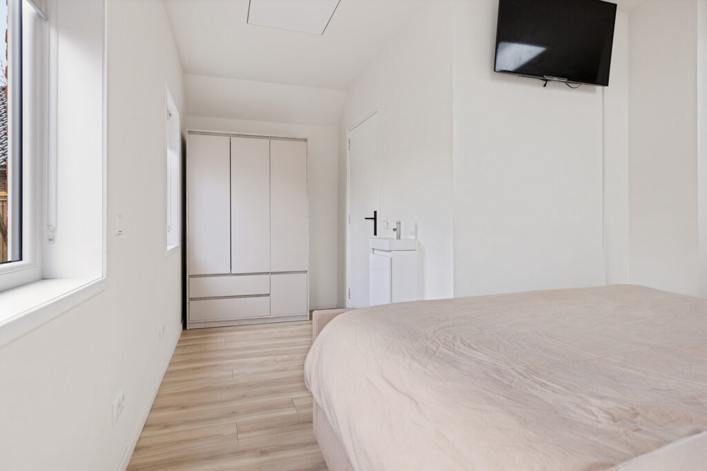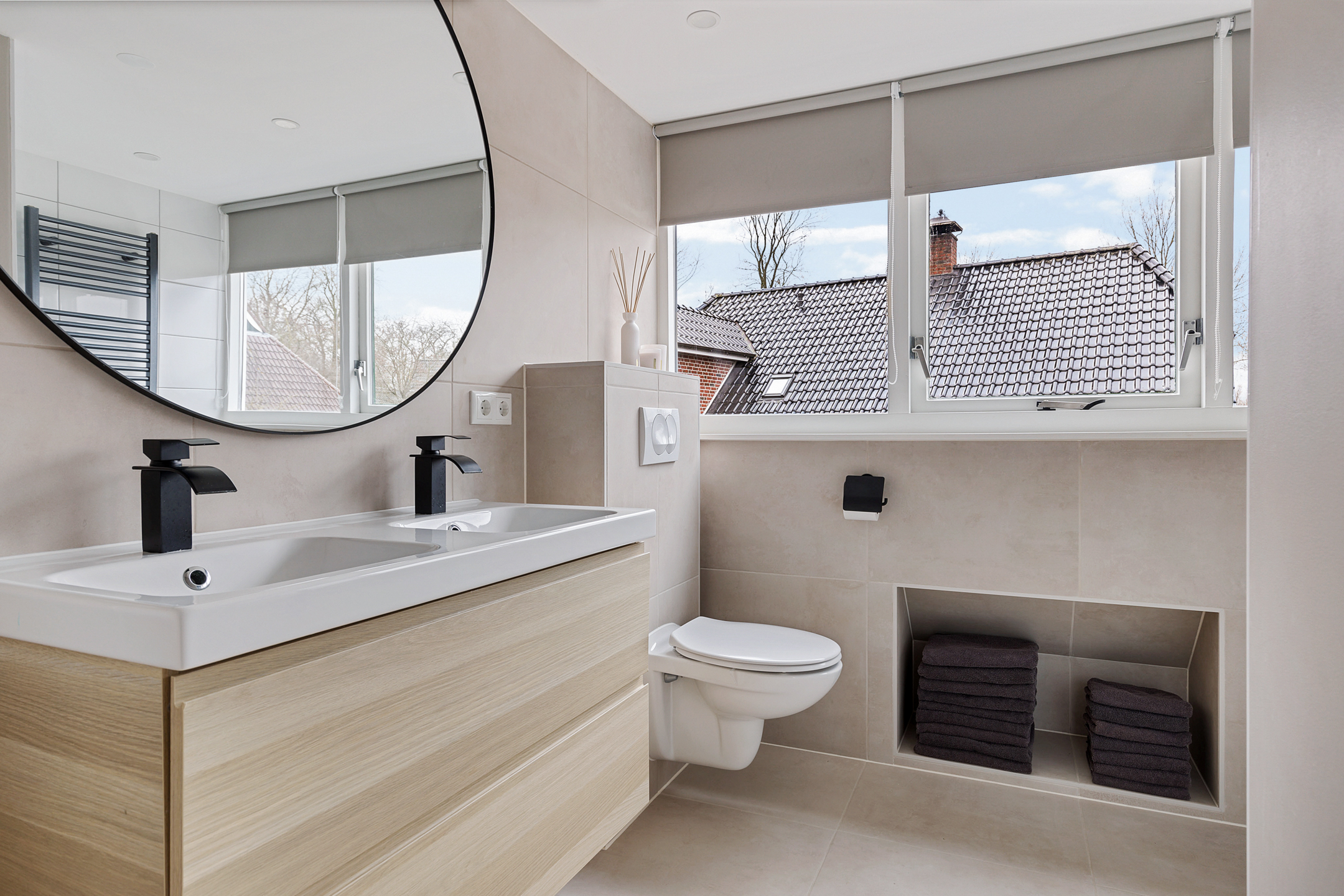 Op de verdieping tref je 3 slaapkamers van ca. 4, 7 en 8 m² en een moderne badkamer (ca. 6 m²) met dubbele wastafel, 2e toilet en doucheruimte.