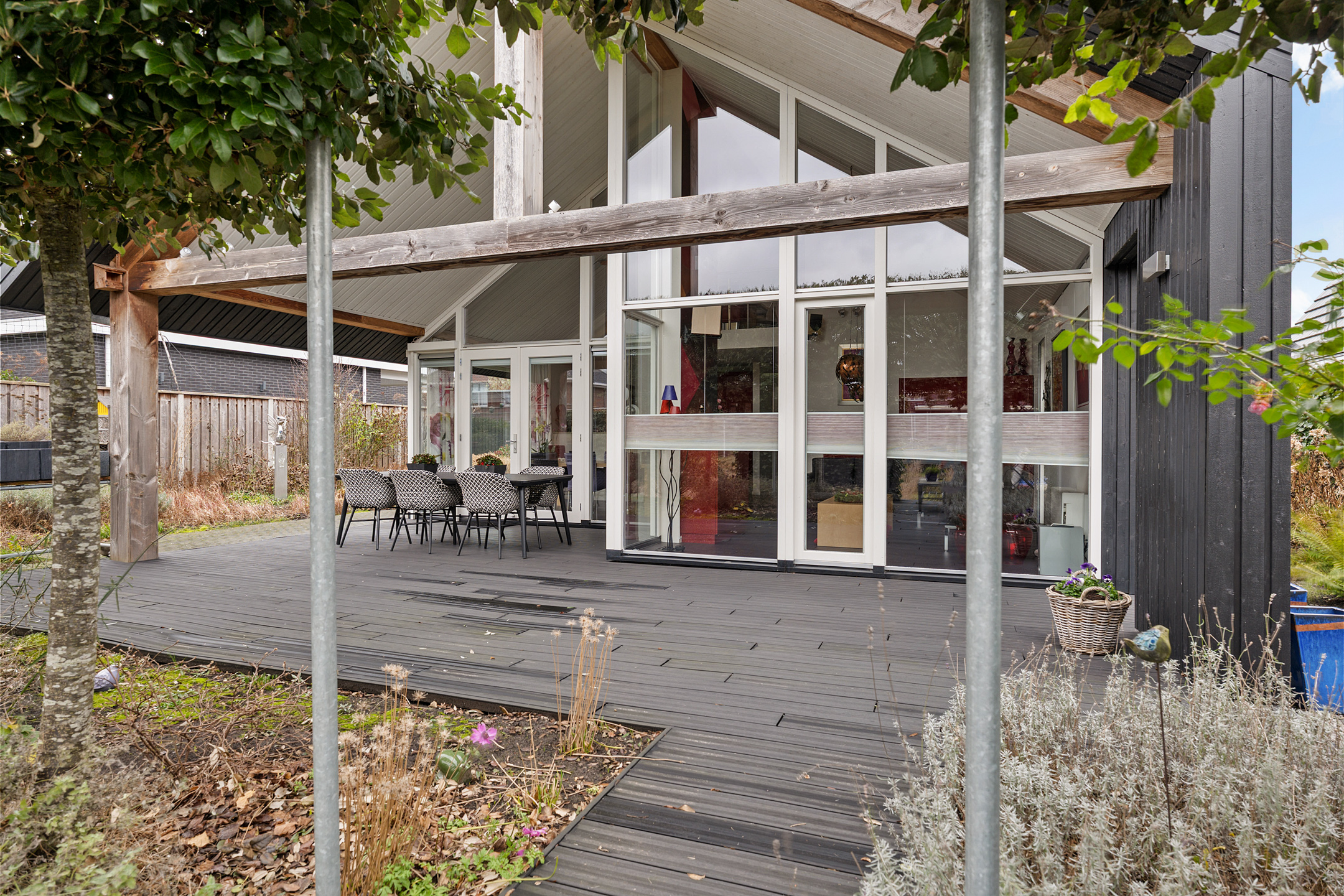 Aan de achterzijde ligt de absolute eyecatcher: een royale overkapping (ca. 22,1 m²) met zicht op zowel de tuin als het water. Hier geniet je van de rust, de prachtige ligging en het natuurlijke decor van de tuin, die elk seizoen een andere sfeer brengt. Een ideale plek om te ontspannen, te borrelen of te dineren met uitzicht op het water.