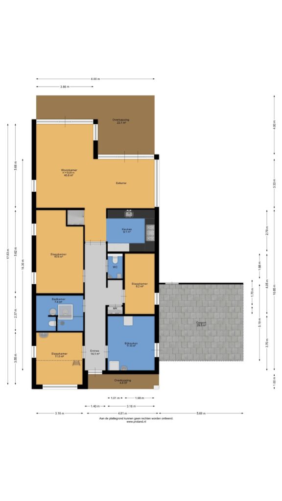 - en een derde slaapkamer (ca. 8,2 m²) aan de rechterzijkant van het huis.