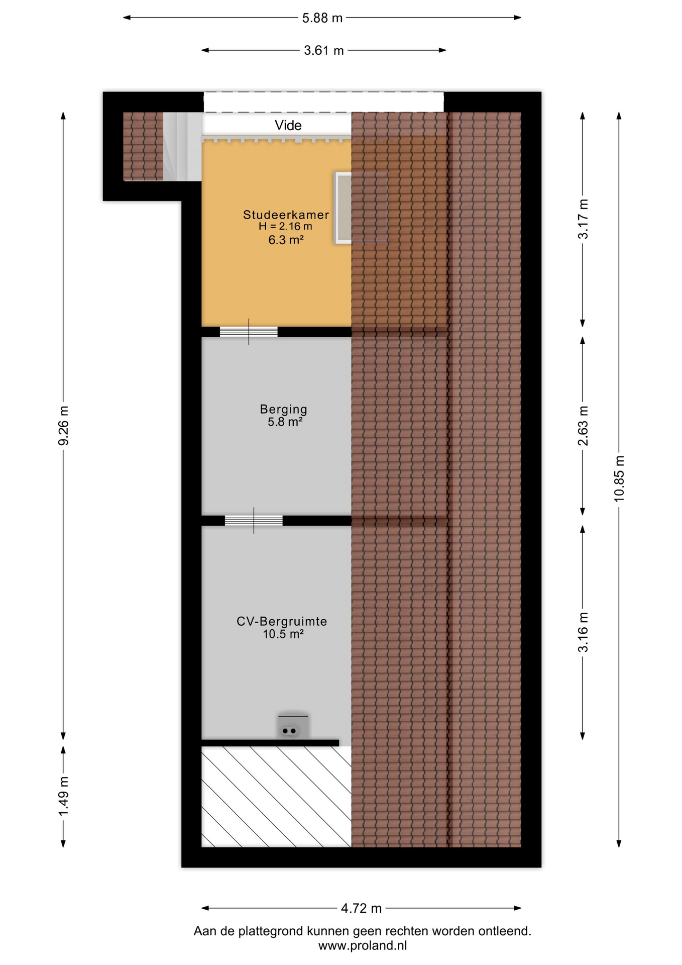 - Vide bereikbaar via trap vanuit woonkamer met werkplek