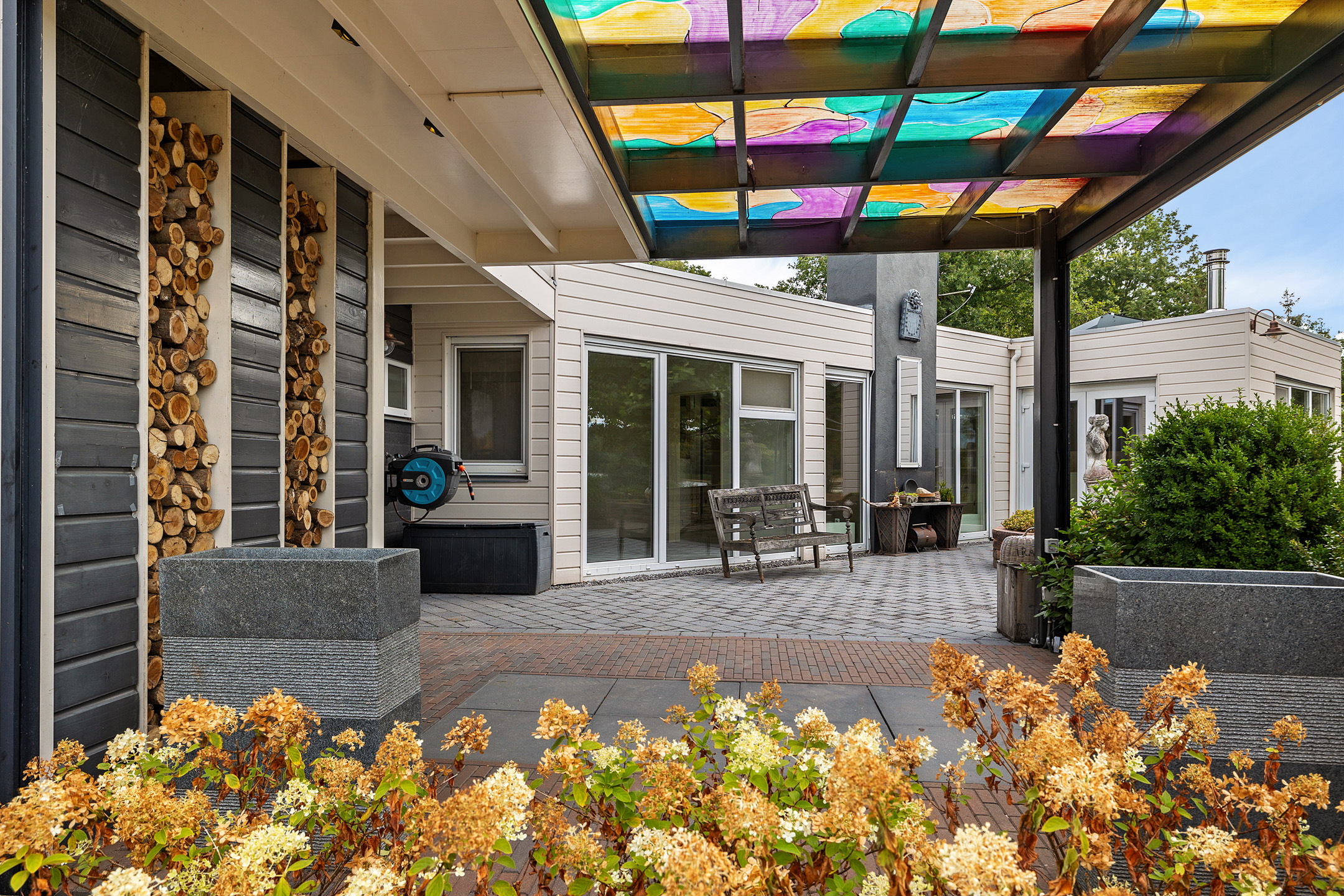 Wat typerend is voor deze prachtige tuin, door de slimme keuzes van de vaste beplanting en de bestrating, is dat het onderhoudsarm is en tevens rolstoelvriendelijk.