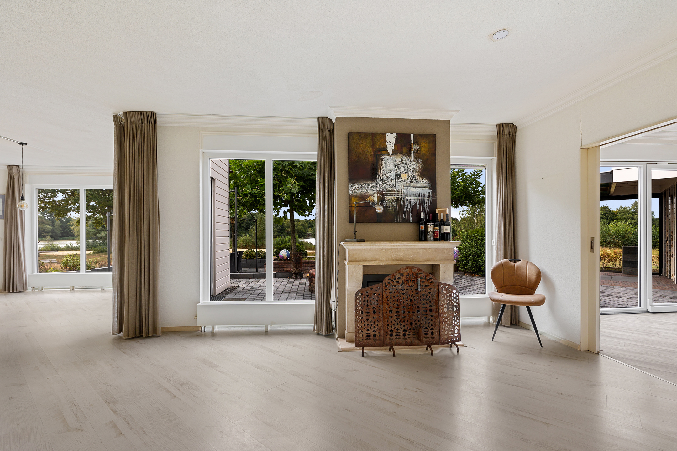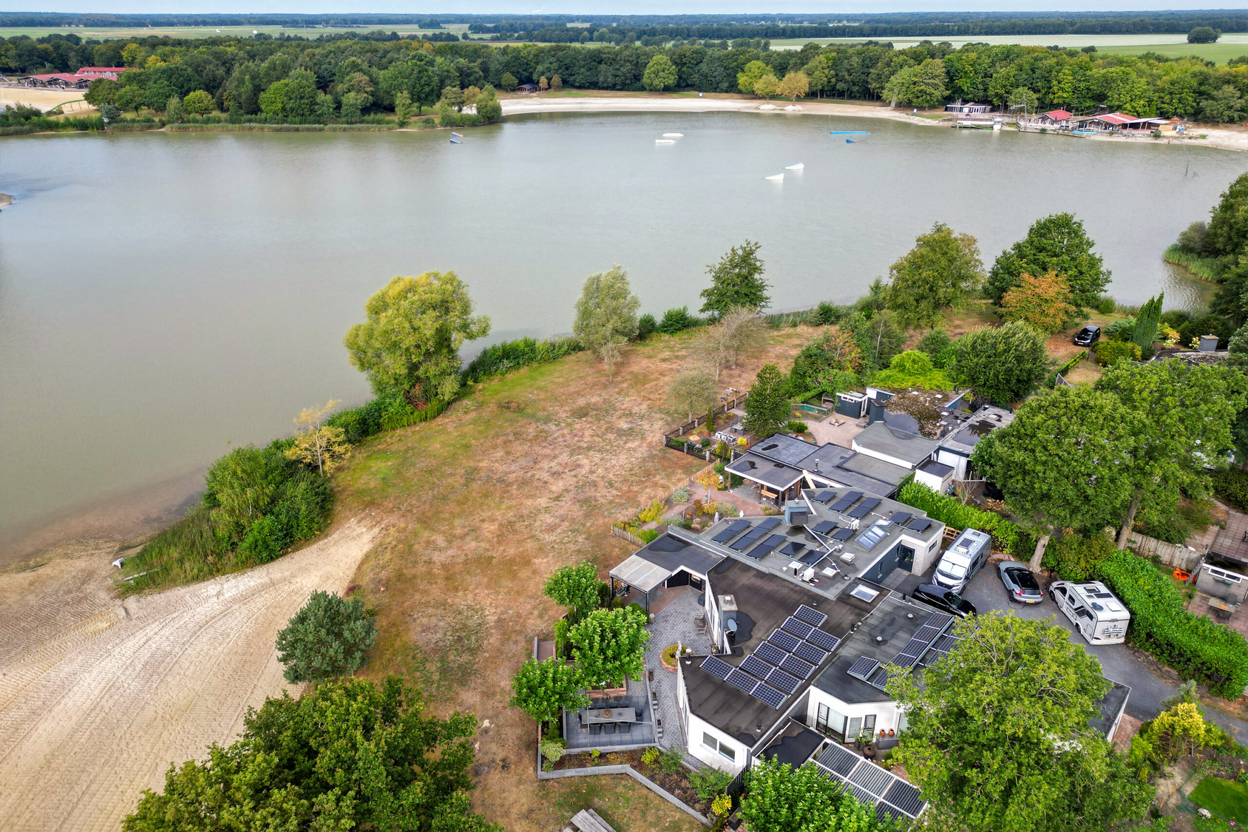Vanuit de gehele bungalow, en de onder architectuur aangelegde tuin biedt het een schitterend uitzicht over het water…