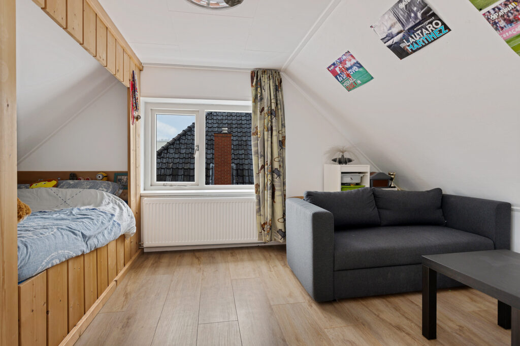 De woning zelf is in de eerste plaats levensloopbestendig te noemen. Op de begane grond zijn namelijk een slaap- en moderne badkamer aanwezig. Niet alleen de badkamer en het toilet zijn gemoderniseerd. Ook de woonkeuken beschikt over een nieuwe inrichting met speelse bar en alle inbouwapparatuur! Overigens, nagenoeg de gehele begane grond is voorzien van een nieuwe geïsoleerde vloer met vloerverwarming en een PVC-vloer. Het geheel wordt op deze woonlaag gecompleteerd middels een entree annex hal en royale bijkeuken met buitendeur en toegang tot de garage. Op de eerste verdieping valt direct de royale overloop met werkruimte ter plaatse van de dakkapel op. Daarnaast zijn hier twee slaapkamers voorzien van laminaatvloeren en één met een speelse ‘bedstede’.