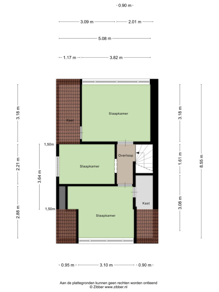 Eerste verdieping: overloop; drie slaapkamers; bergruimte met cv-opstelling.