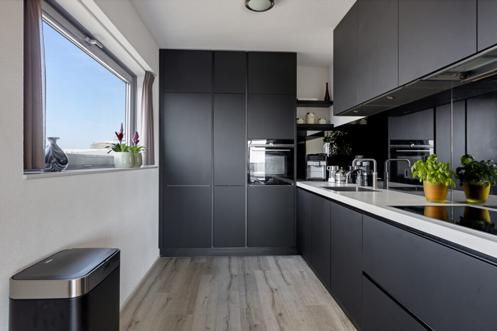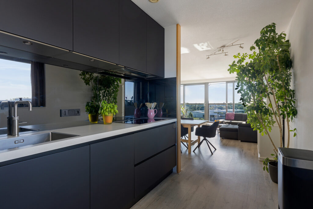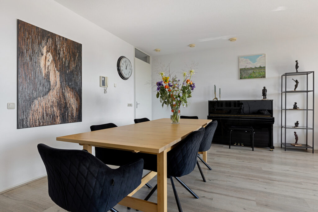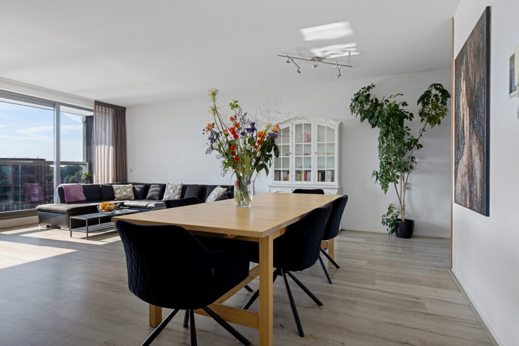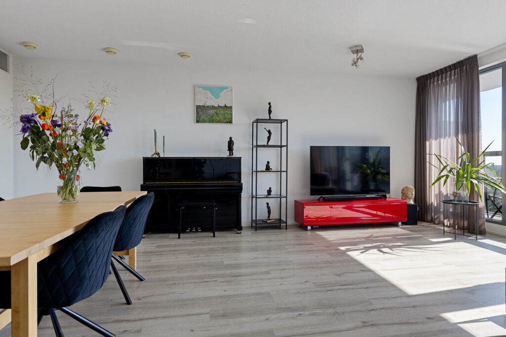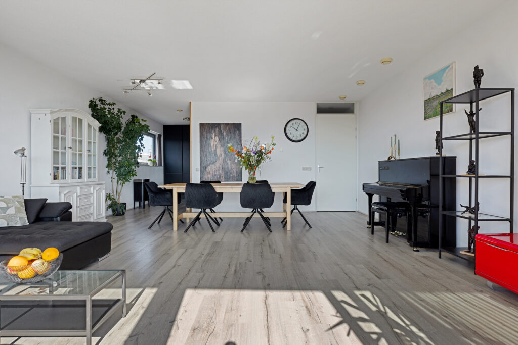 De indeling van het appartement is functioneel te noemen, te meer de slaapkamers fraai afgescheiden zijn van het woongedeelte. Dit woongedeelte is uiterst zonnig te noemen, vanwege de grote pui met aansluitend balkon. De woonkamer staat overigens in een open verbinding met de moderne nieuwe keuken (2023) van Luit Wind met alle moderne voorzieningen zoals een Quooker, inductiekookplaat, koelkast, vriezer en extra veel kastruimte waaronder een apothekerskast. Door de situering van het appartement op een hoek van het complex is hier ook een extra raam aanwezig. De drie slaapkamers zijn allen ruim bemeten en voorzien van keurige laminaatvloeren, gelijk aan die in de woonkamer en keuken. Tussen de slaapkamers is de keurige badkamer - wastafel, douche en ligbad - gesitueerd, samen met het dito toilet en de wasruimte.