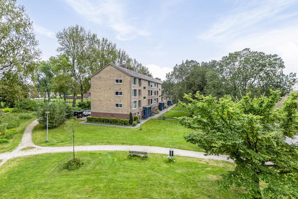 Het appartement beschikt over twee balkons, gelegen op het oosten en westen, waardoor je op ieder moment van de dag van de zon kunt genieten. Op de begane grond is een inpandige berging van circa 7 m² aanwezig, voorzien van elektra. Parkeren kan op het afgesloten terrein aan de achterzijde van het complex.
