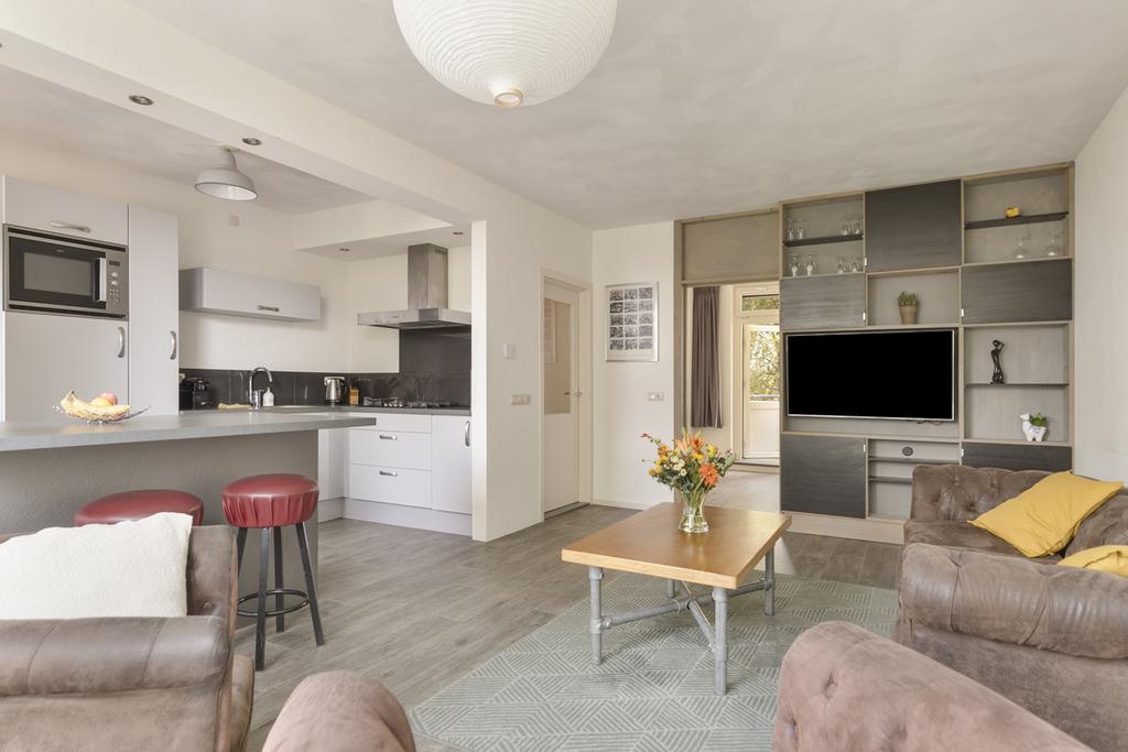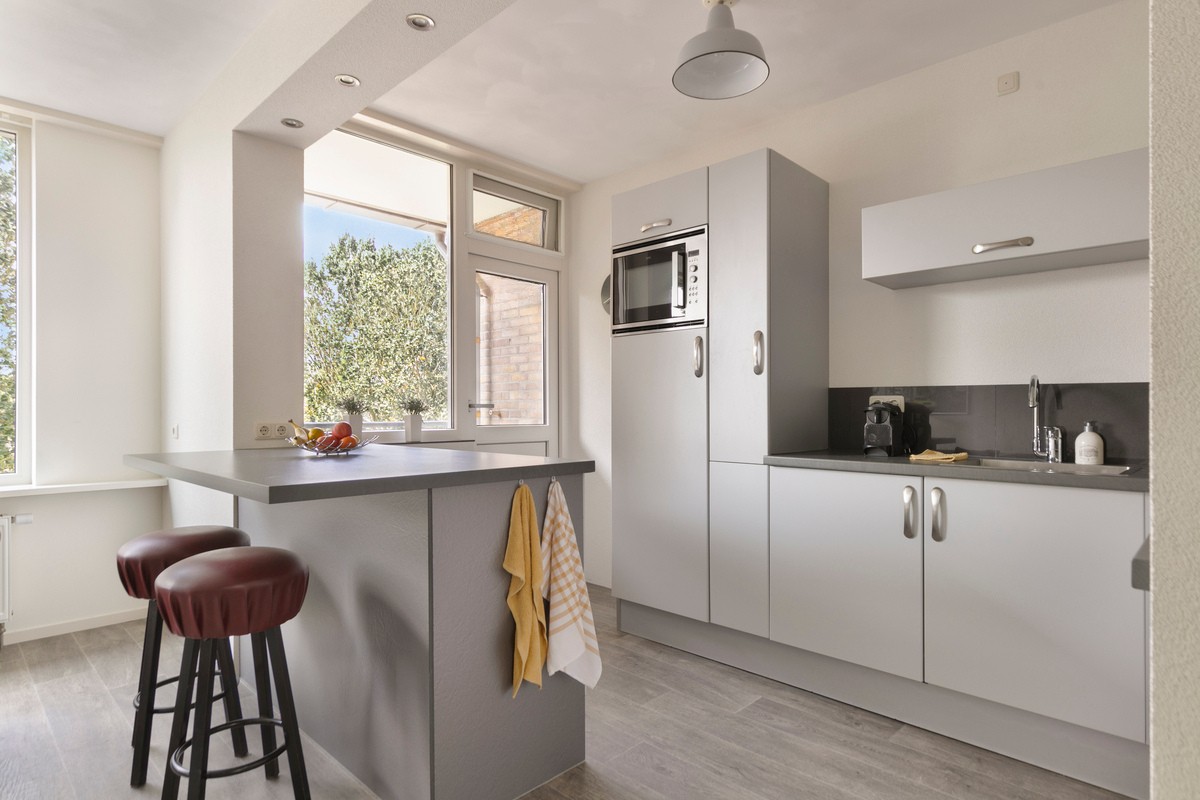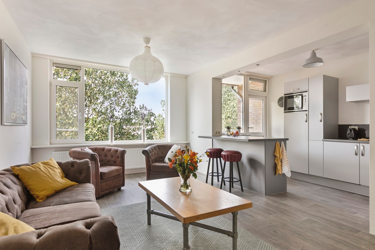 Via de hal heb je toegang tot de ruime woonkamer met open keuken. De woonkamer is heerlijk licht dankzij de grote raampartijen en biedt volop ruimte voor een comfortabele zit- en eethoek. Vanuit de eetkamer (of extra slaapkamer) is er toegang tot het balkon aan de oostzijde, met een fraai en vrij uitzicht over het Bessemoerpark.