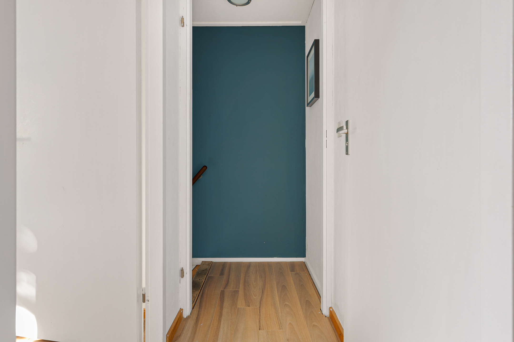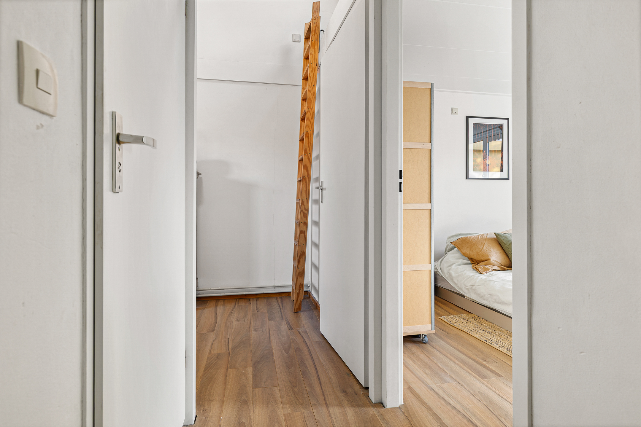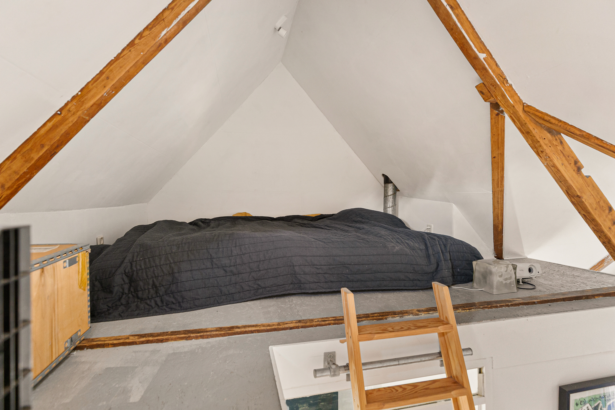 De eerste verdieping beschikt over twee slaapkamers van goed formaat, ideaal als hoofdslaapkamer en een tweede kamer met slaapvide die ook prima als logeer- en/of werkkamer kan worden gebruikt. De badkamer is compact maar functioneel en voorzien van een wastafel en douche. Daarnaast is er een praktische aansluiting voor wasmachine en droger aanwezig.