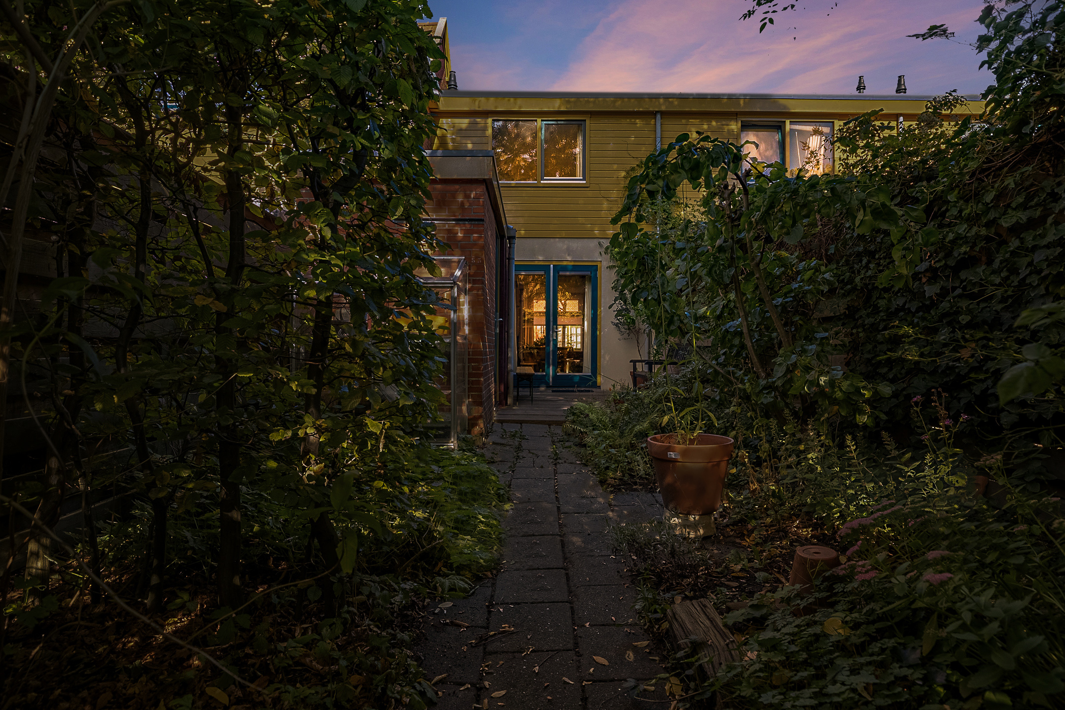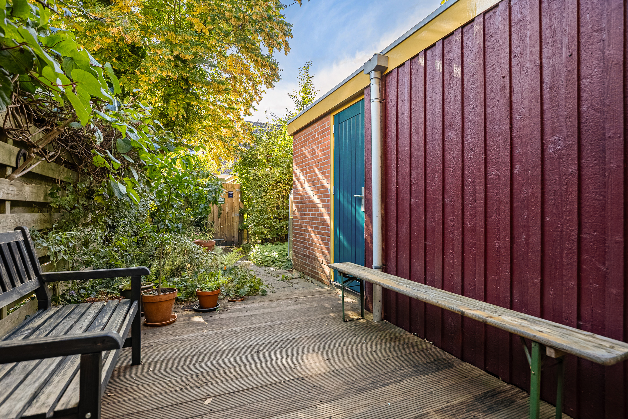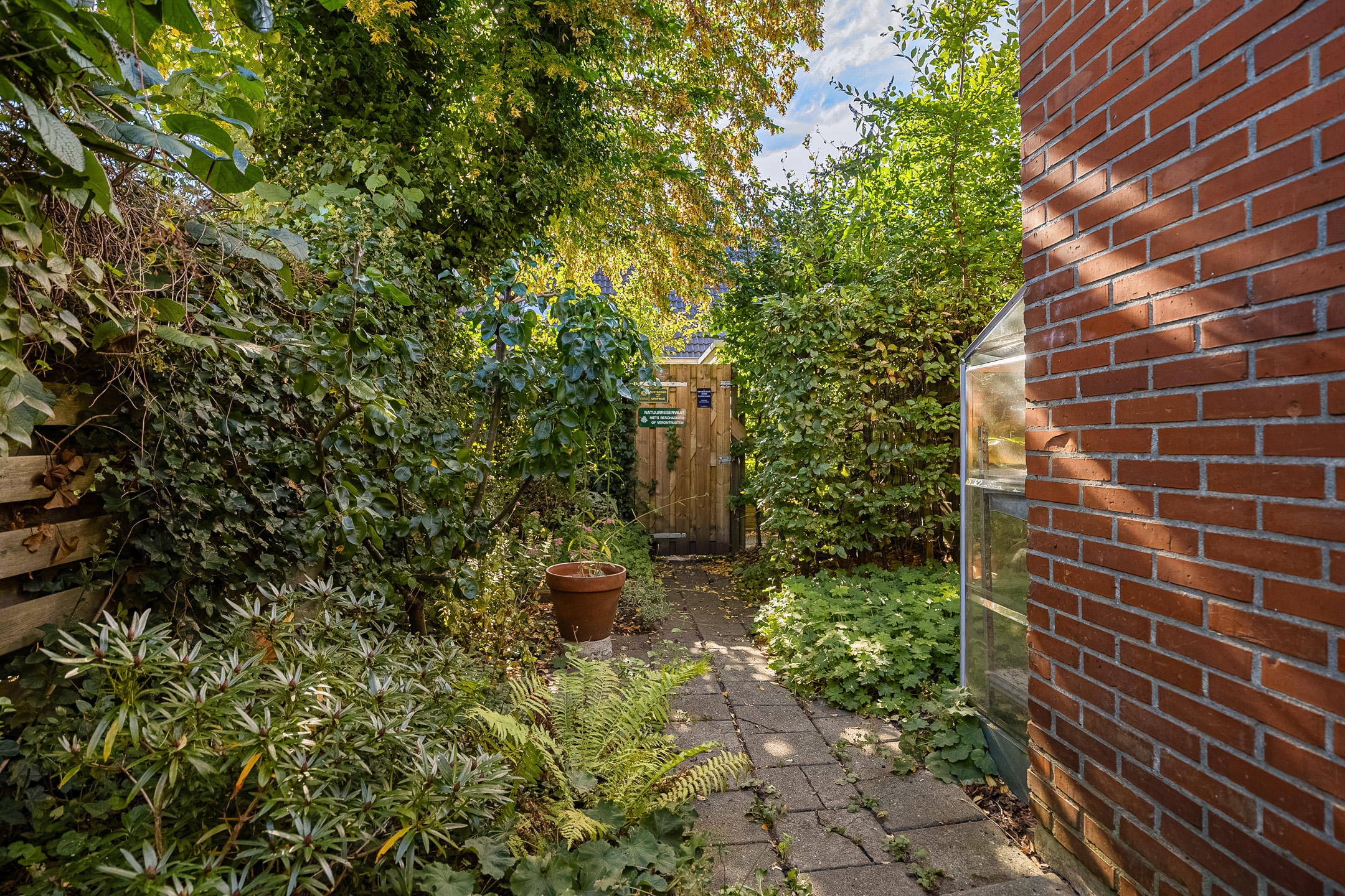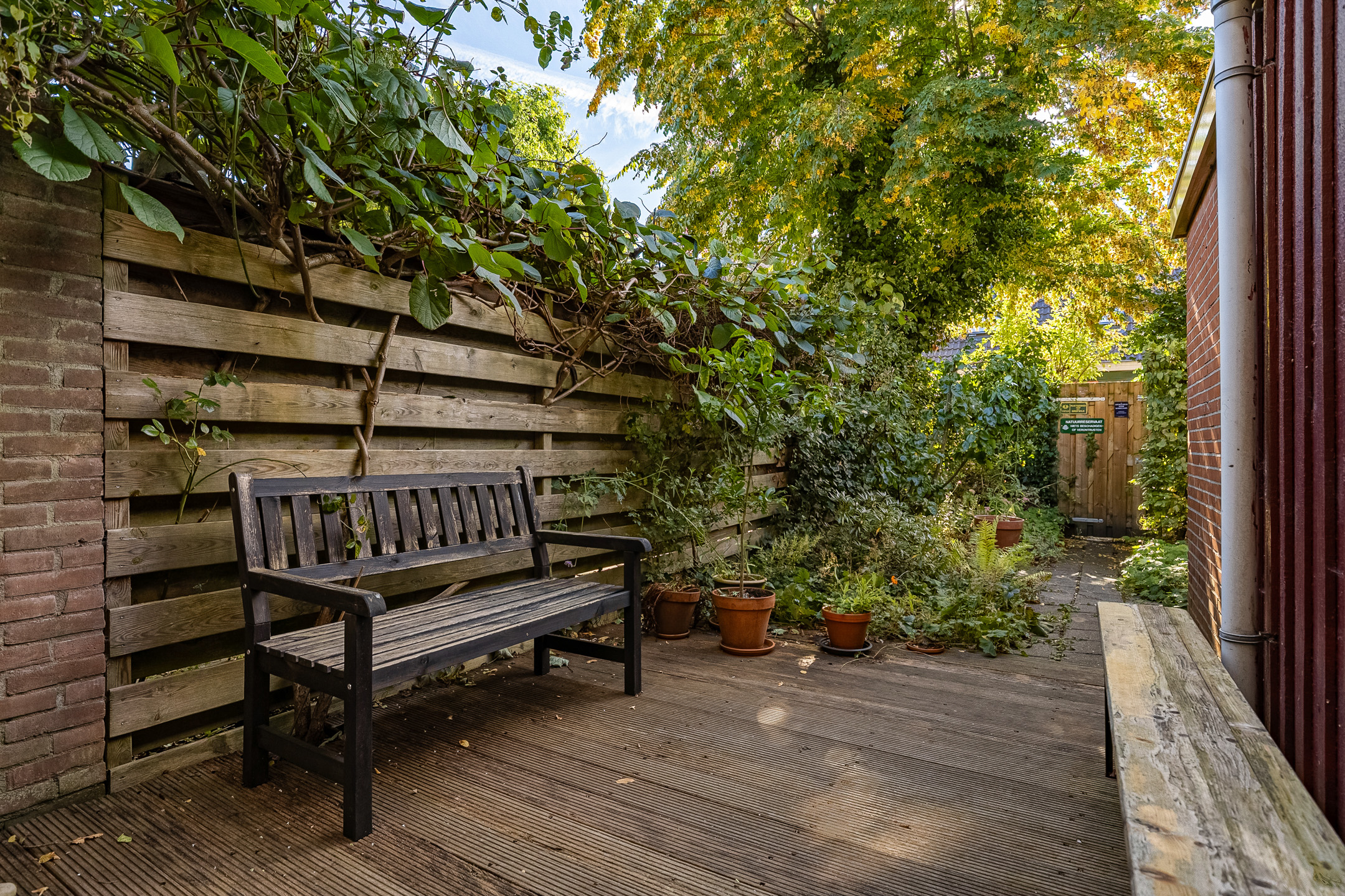 - Beschutte achtertuin van ca. 40 m² met achterom