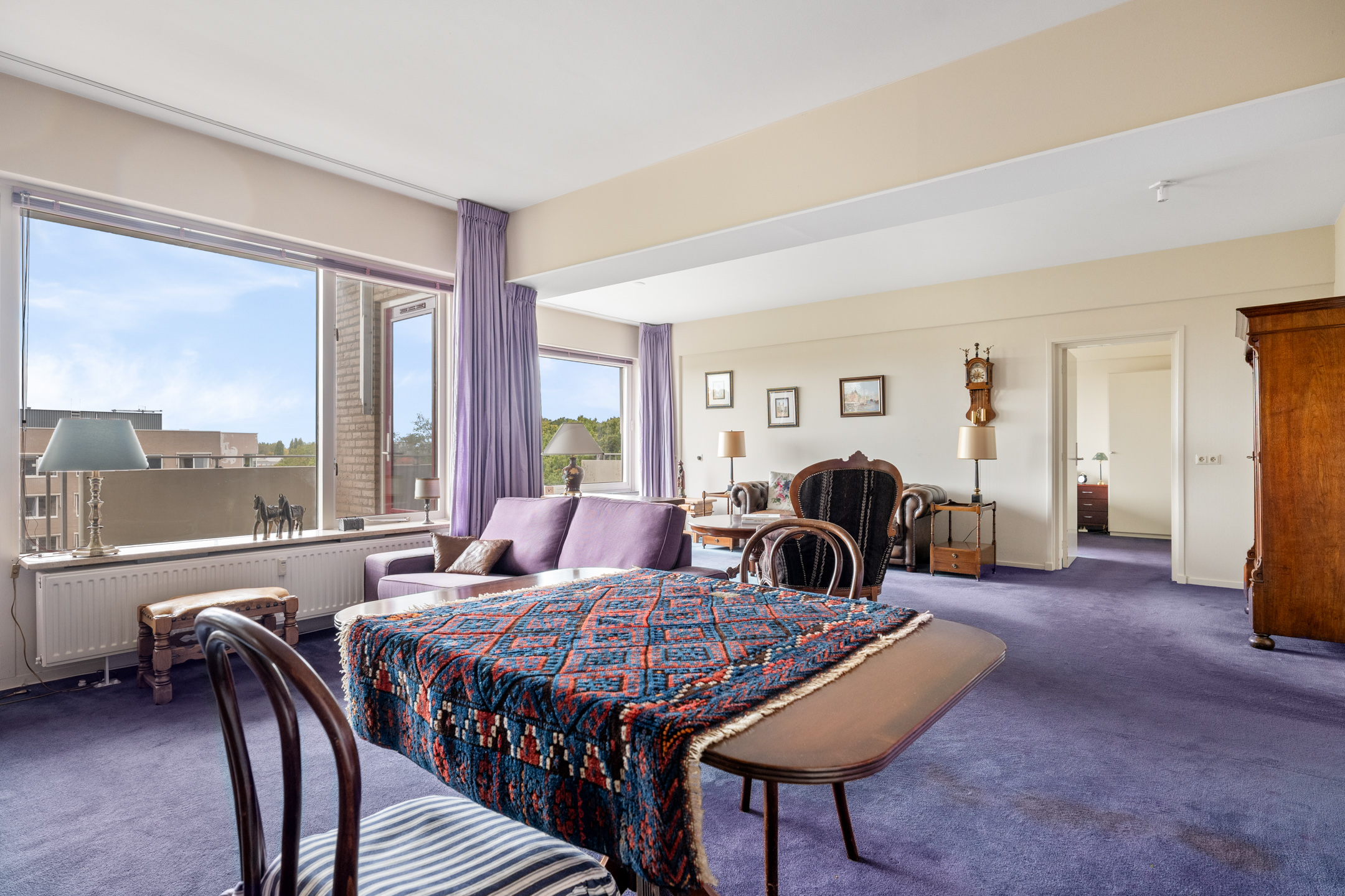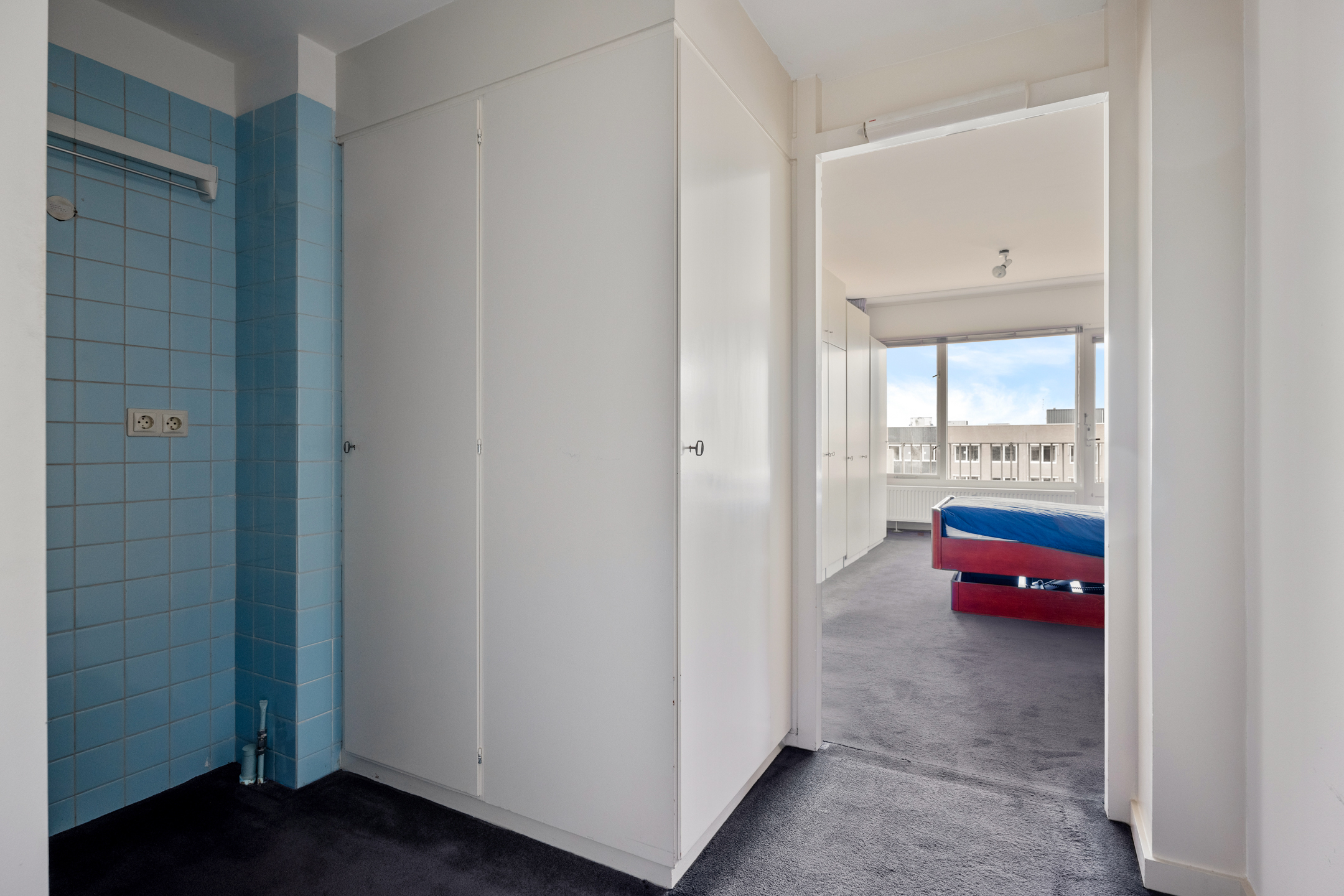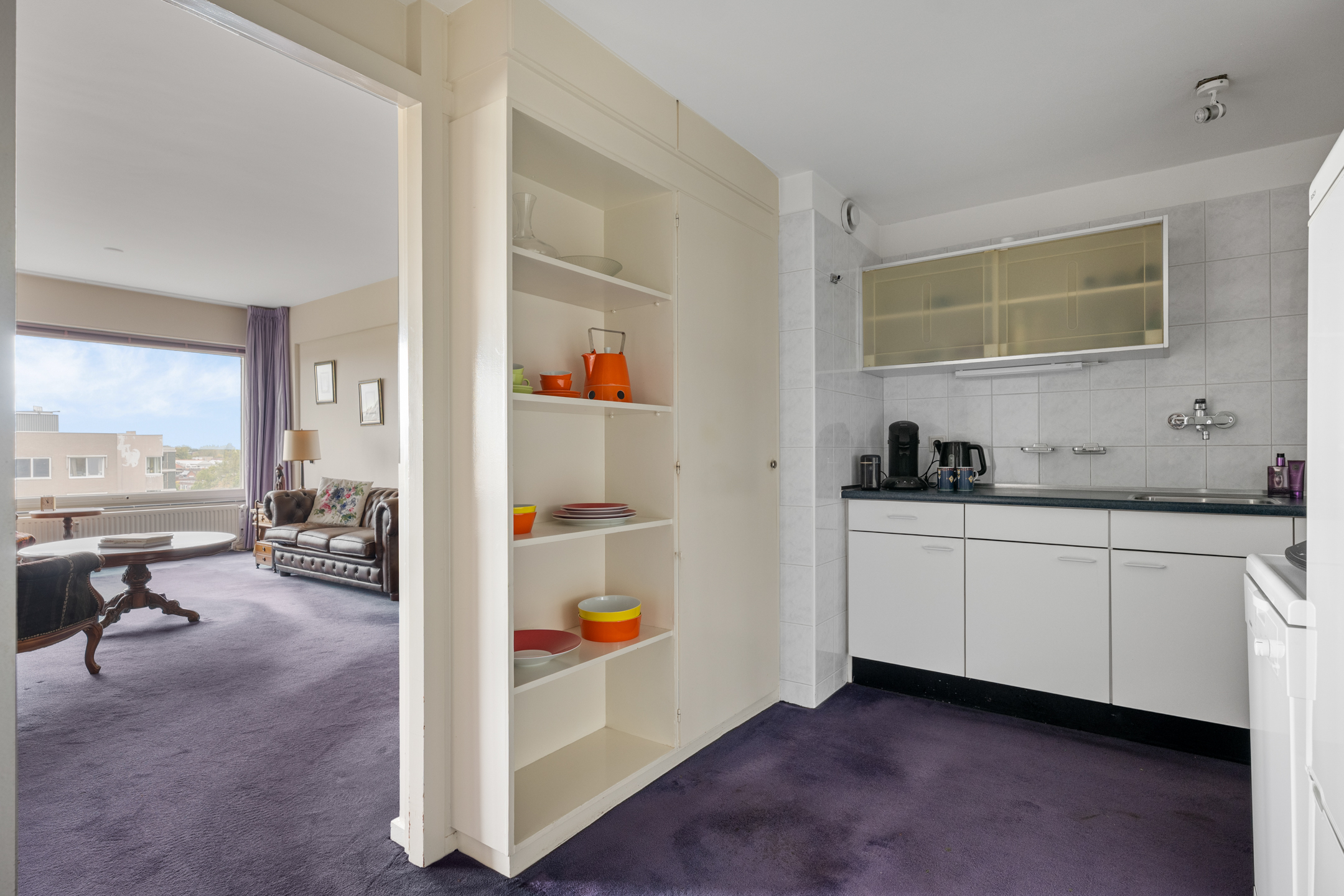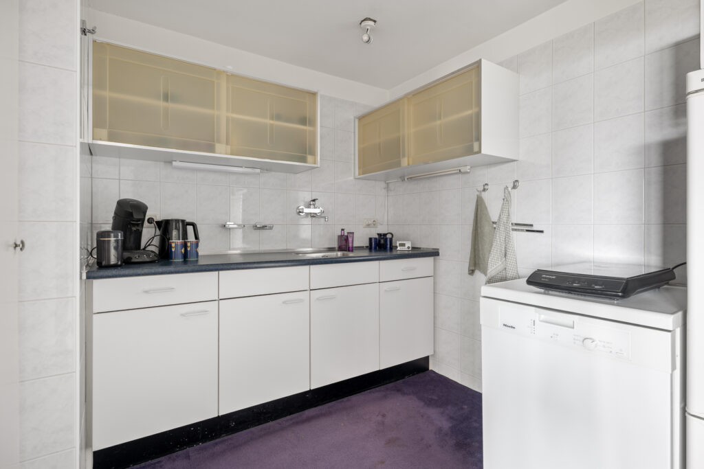 Lagro Ebens mag binnen de Groenesteinflat een fraai driekamerappartement aanbieden. Wat direct opvalt, is dat het appartement beschikt over een eigen inpandige garage en over twee balkons op het westen. De leefruimtes liggen eveneens aan deze zijde, waardoor er veel licht binnenvalt en u kunt genieten van de middag- en avondzon. De royale L-vormige woonkamer met vaste kasten biedt een prettige, open sfeer en grenst direct aan één van de balkons. De halfopen keuken sluit hier mooi op aan. Verder beschikt het appartement over een ruime slaapkamer met vaste kasten en aansluitend een werkkamer, een nette badkamer, een toilet en een aparte wasruimte.