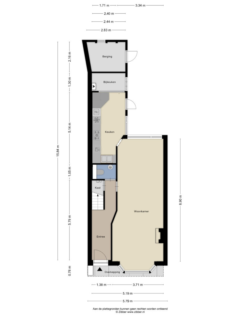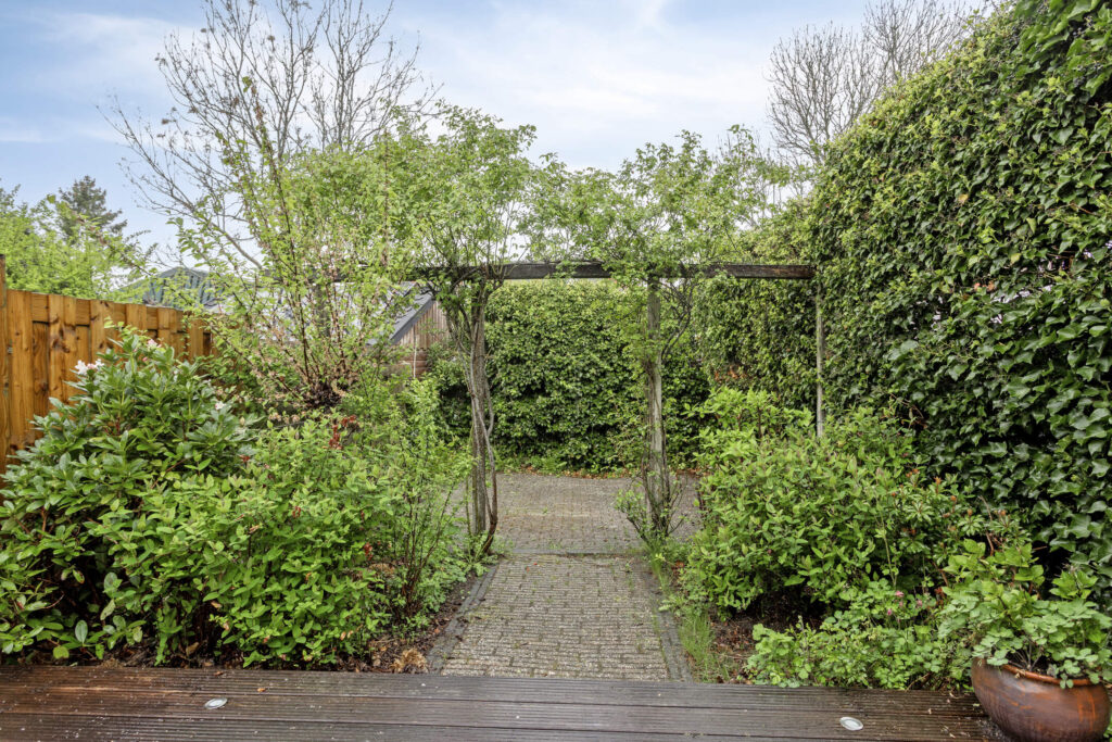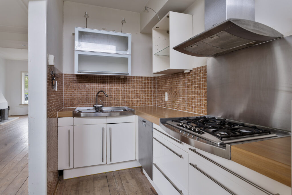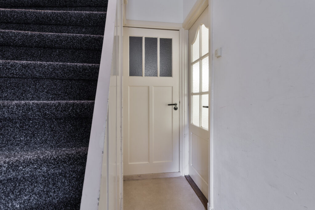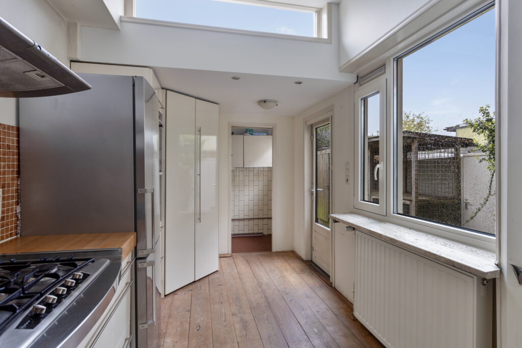 Indeling: entree/ hal met trapopgang, trapkast en toilet; doorzonwoonkamer; half open keuken voorzien van magnetron, oven, gasfornuis, afzuigkap, vaatwasser en koelkast; bijkeuken met witgoedaansluitingen en cv-opstelling; aangebouwde fietsenberging.