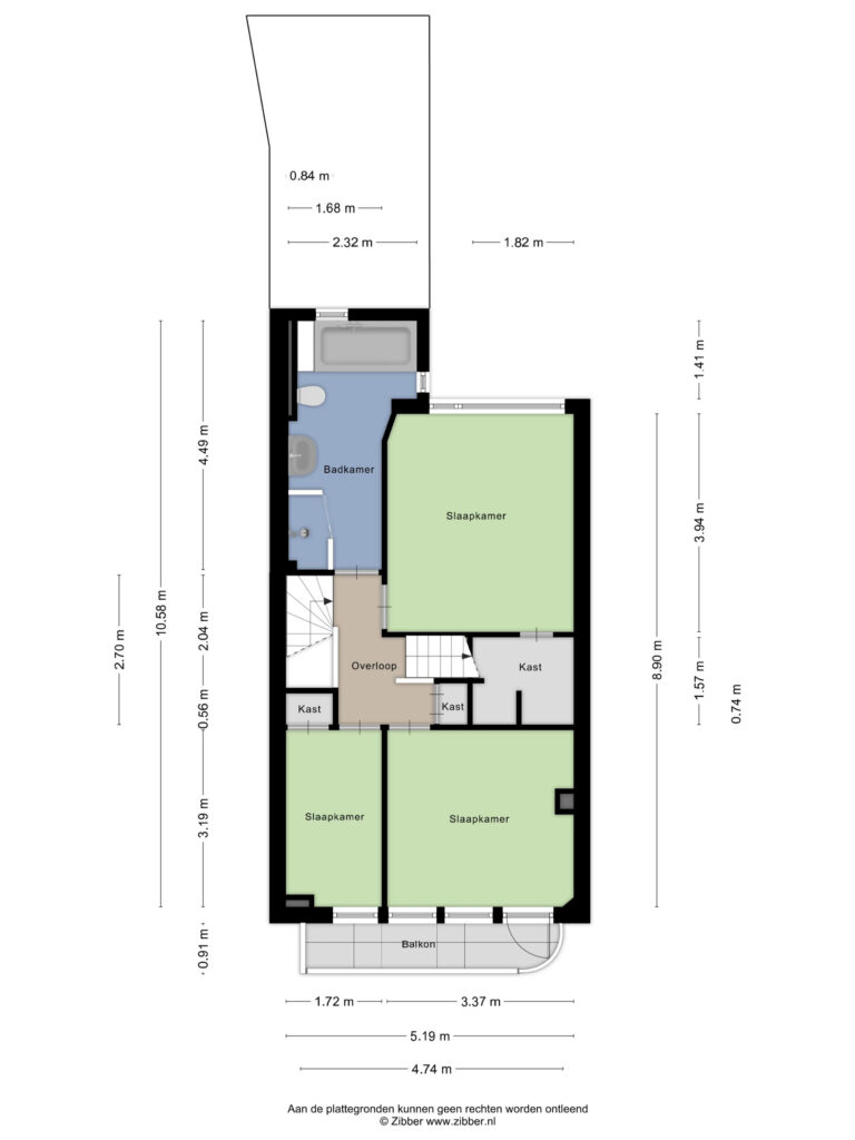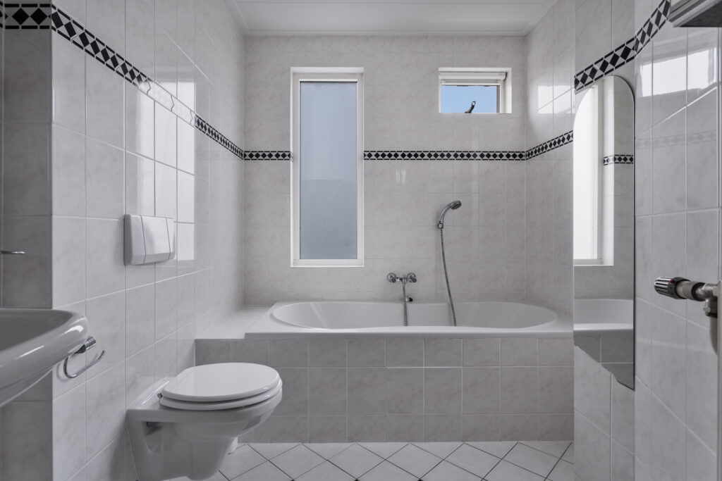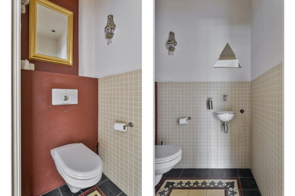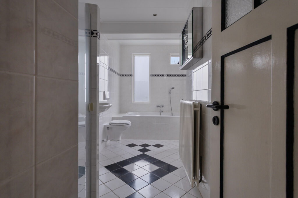 Eerste verdieping: overloop; drie slaapkamers waarvan één met balkon aan voorzijde; ruime badkamer voorzien van ligbad, douche, wastafel en tweede toilet.