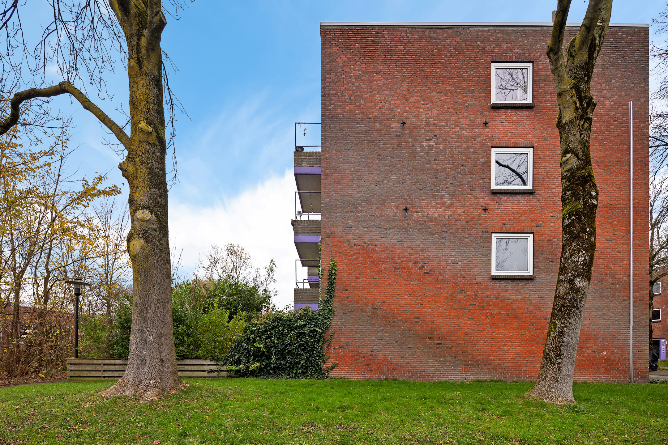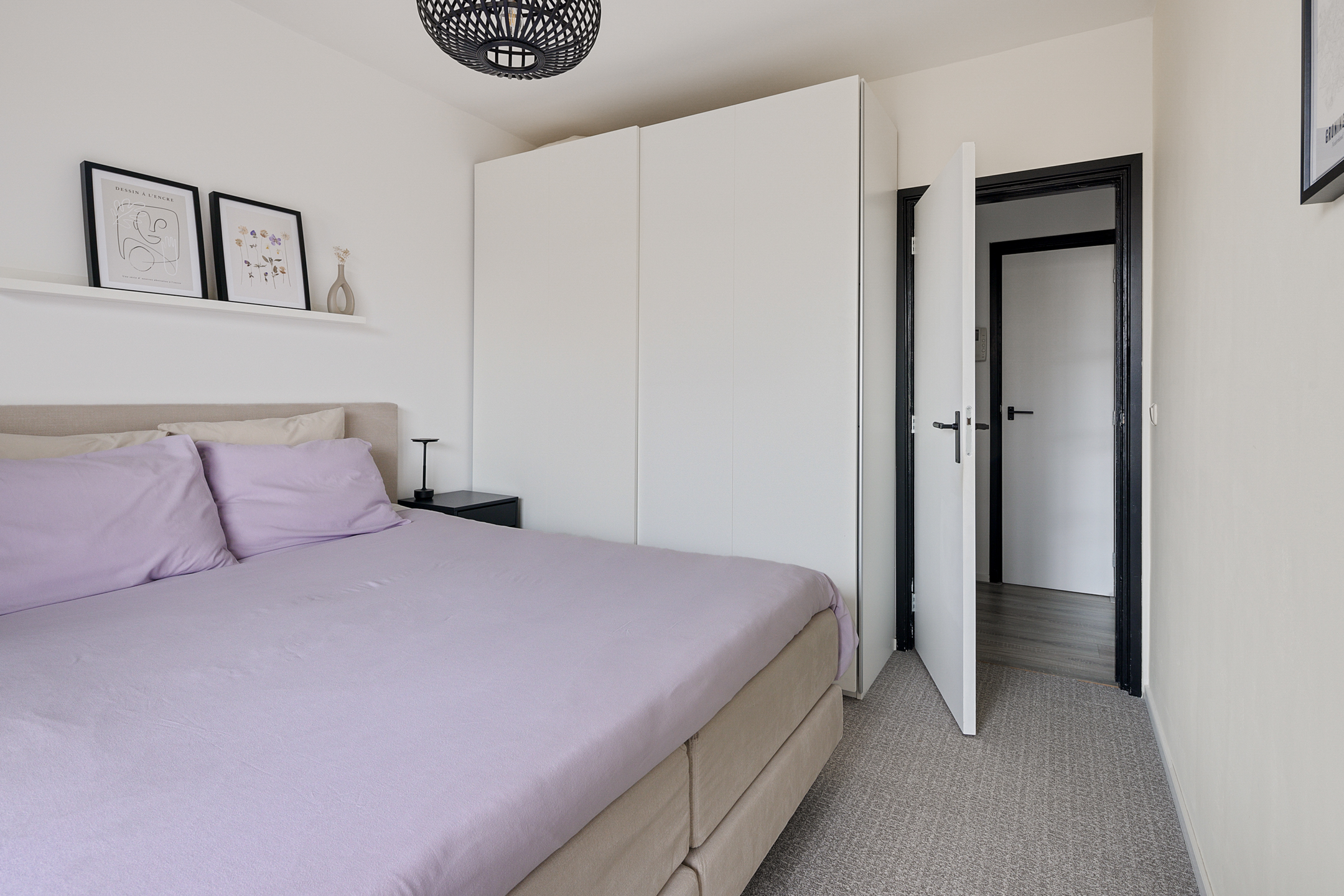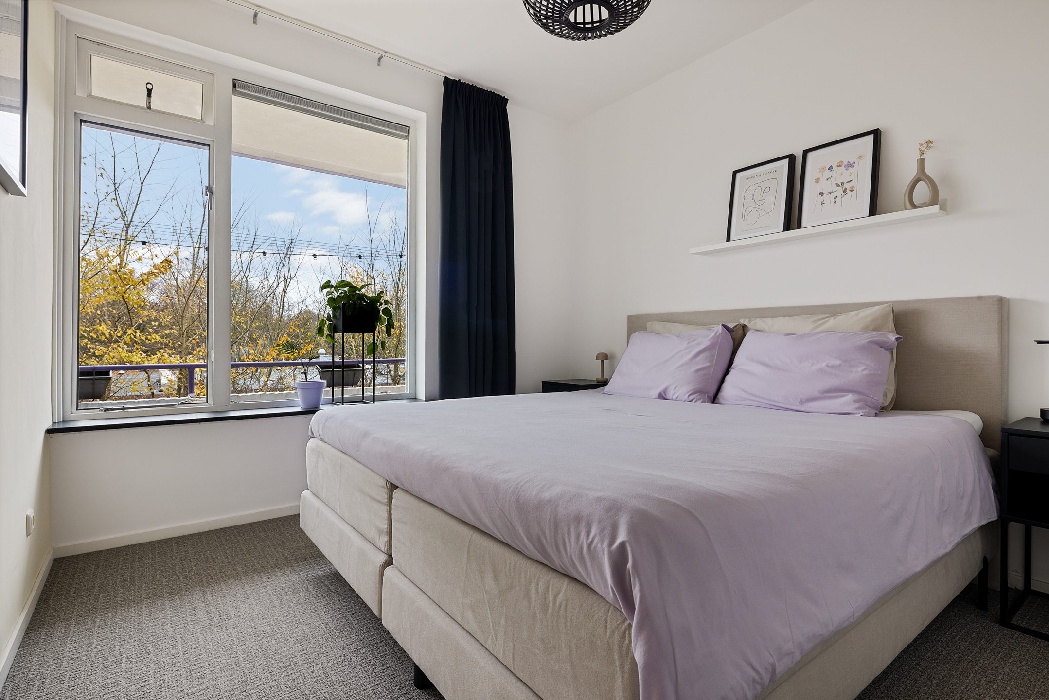 Via de portiek bereik je de entree van het appartement. De hal biedt toegang tot alle vertrekken en het toilet. De lichte en ruime woonkamer vormt samen met de open keuken een prettig leefgedeelte. Dankzij de grote raampartijen en de gedeeltelijk kunststof kozijnen met HR++ beglazing is er volop daglicht, wat zorgt voor een aangename en open sfeer. De keuken is modern uitgevoerd en praktisch ingericht, met voldoende werk- en kastruimte.