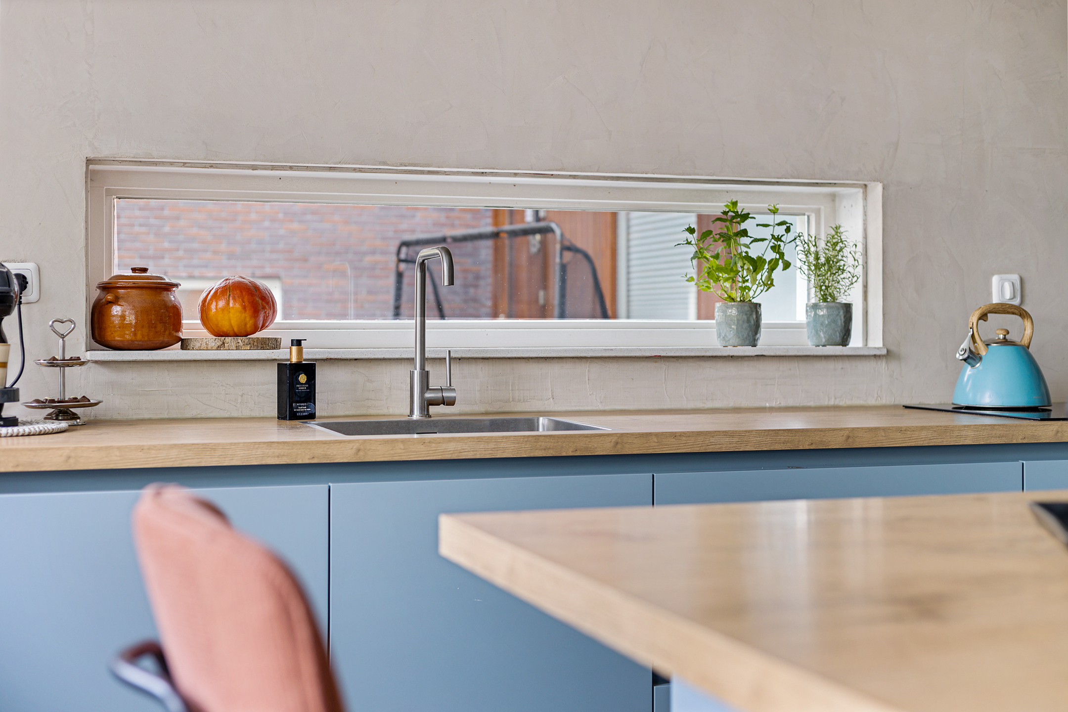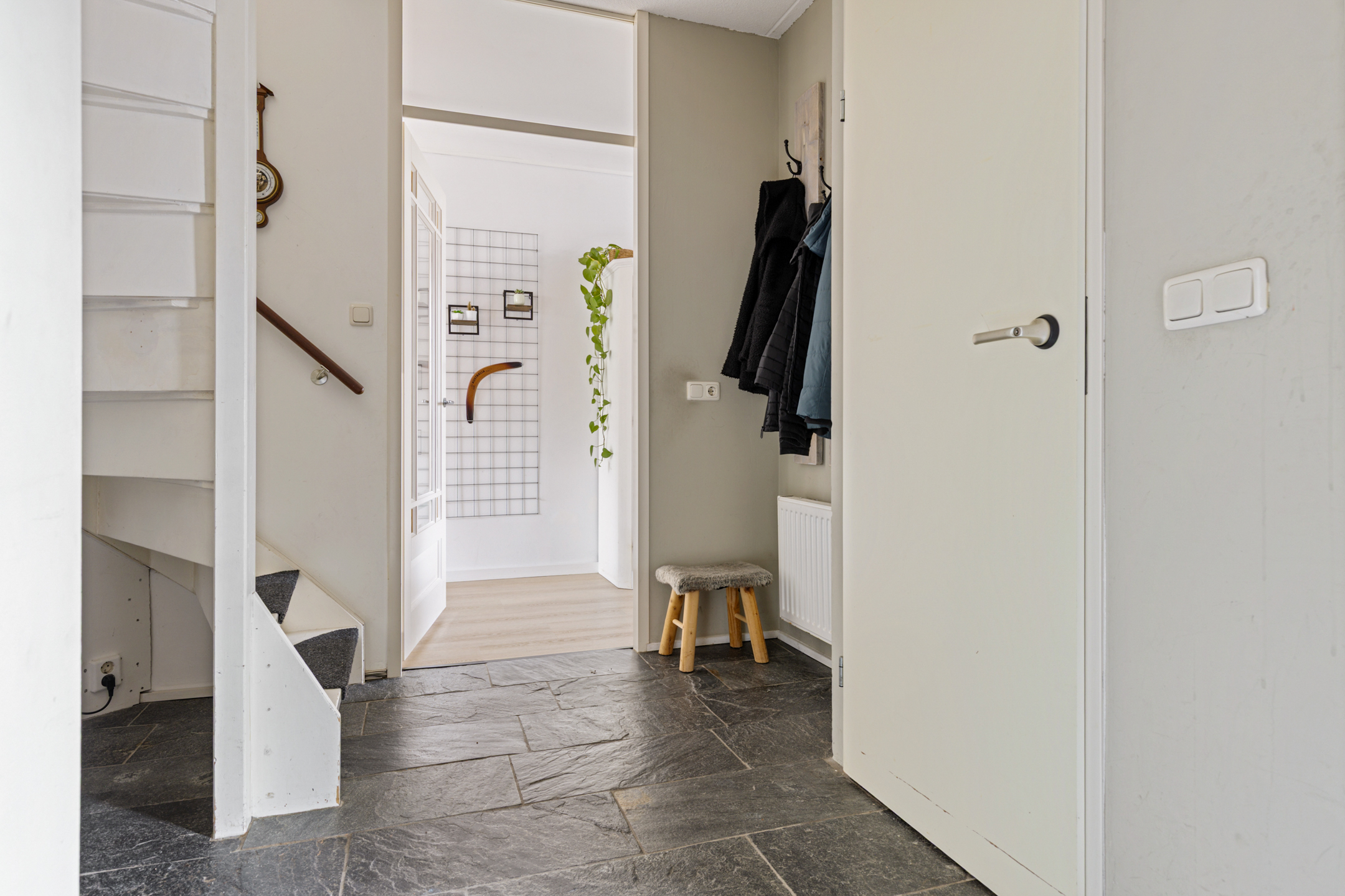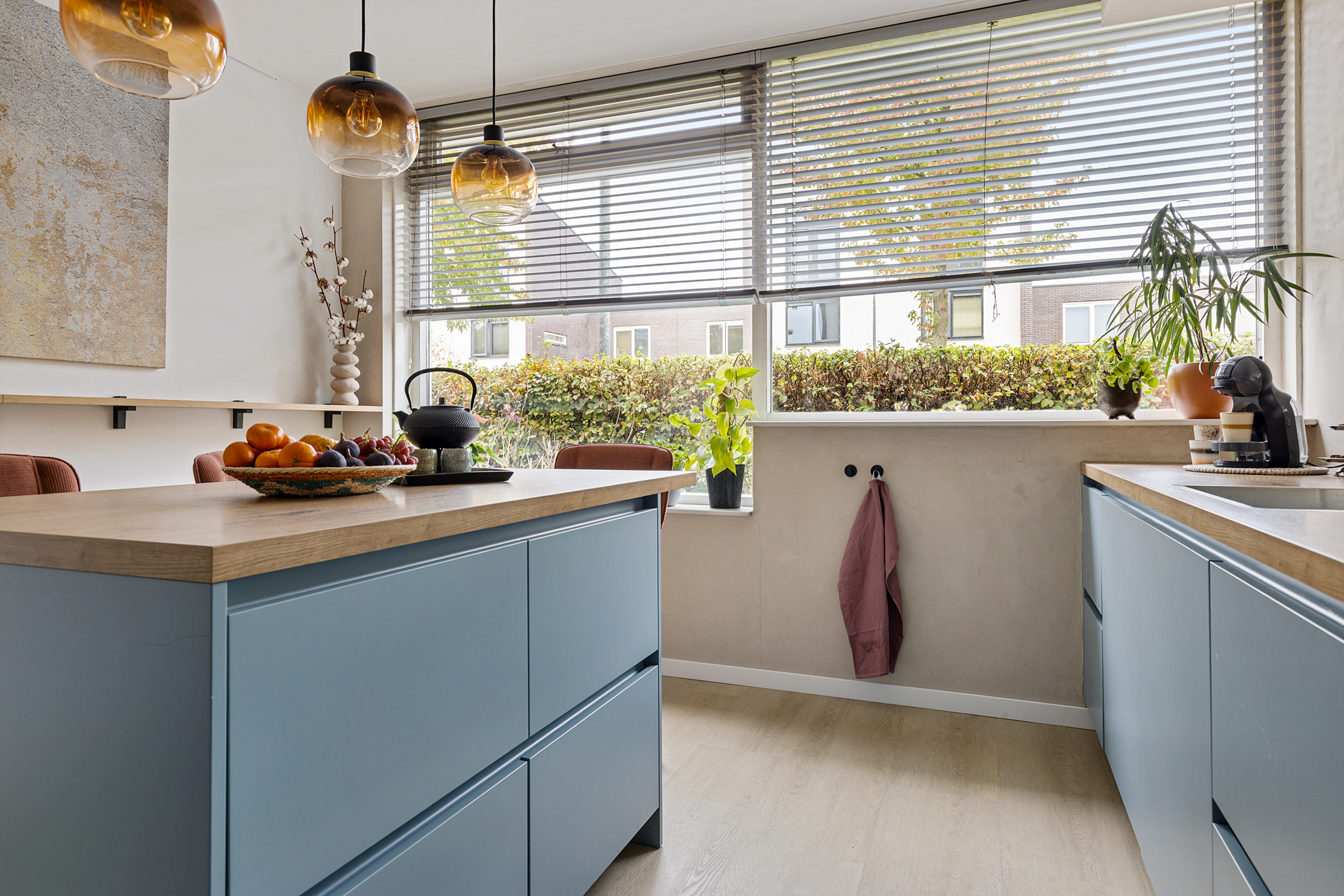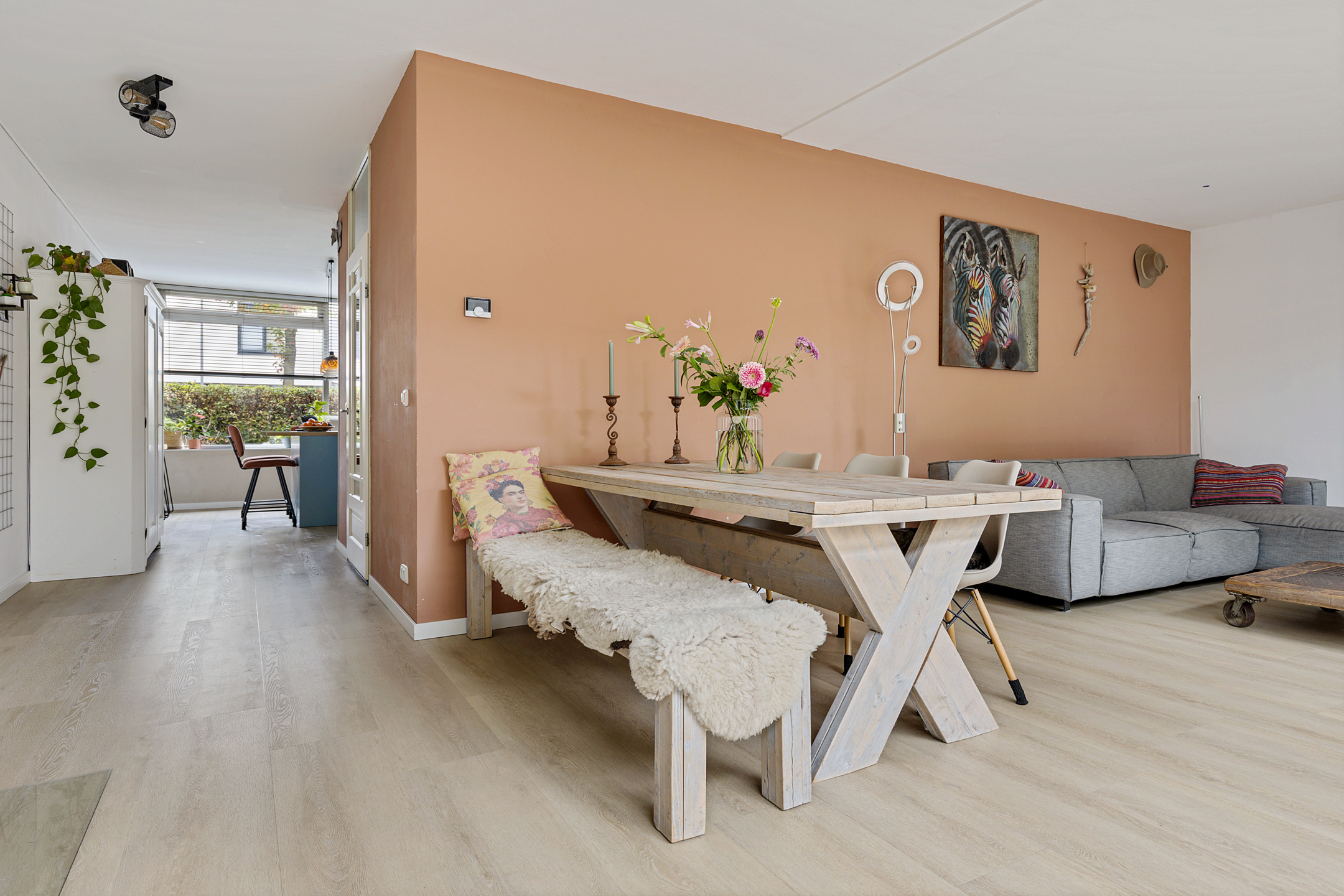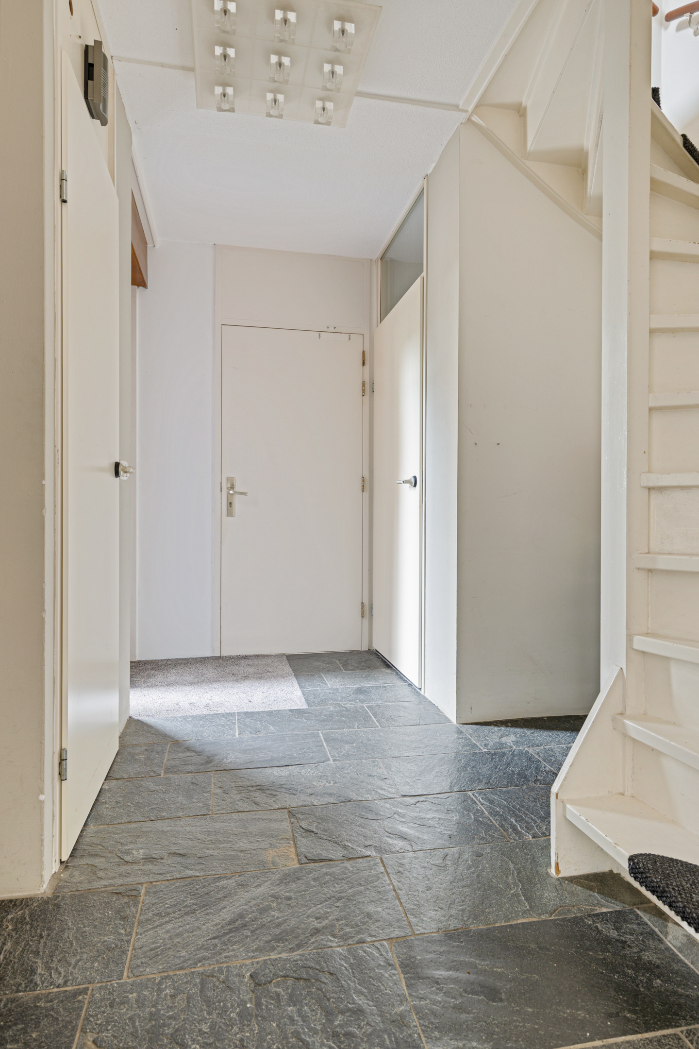 Via de overkapping kom je droog binnen in de ruime hal met toilet, meterkast en trapopgang. Vanuit de hal is er toegang tot zowel de berging als de woonkamer met open keuken. De lichte woonkamer van circa 41 m² ligt aan de tuinzijde en beschikt over grote raampartijen die zorgen voor een fraai uitzicht op de achtertuin en veel natuurlijk licht. De sfeervolle open keuken bevindt zich aan de voorzijde van de woning en profiteert eveneens van een ruime lichtinval.