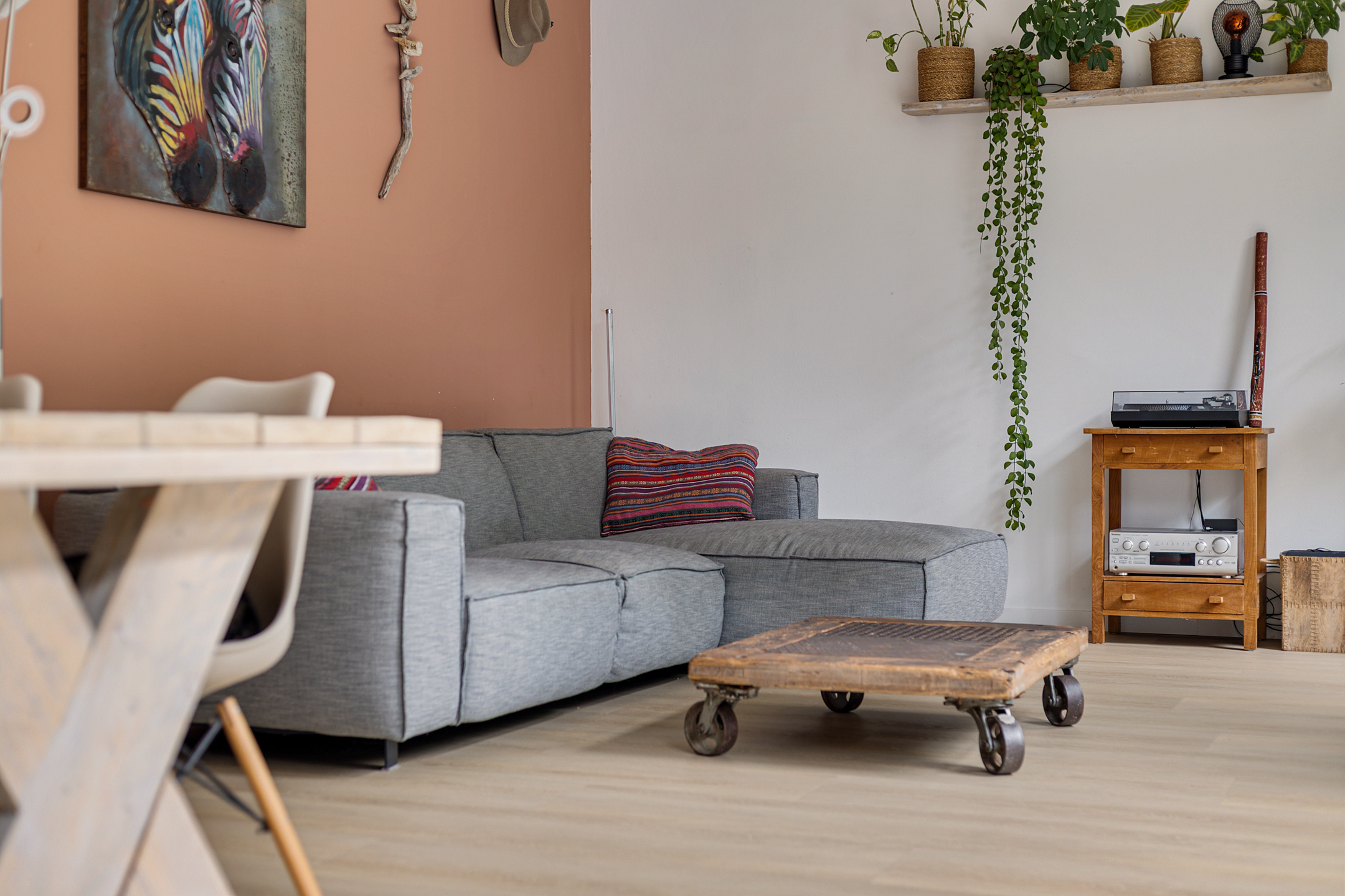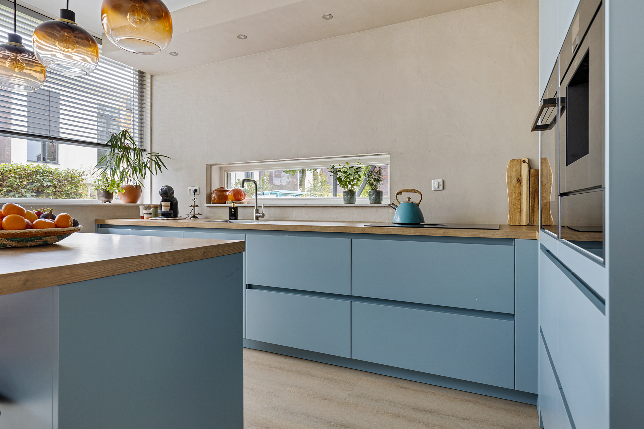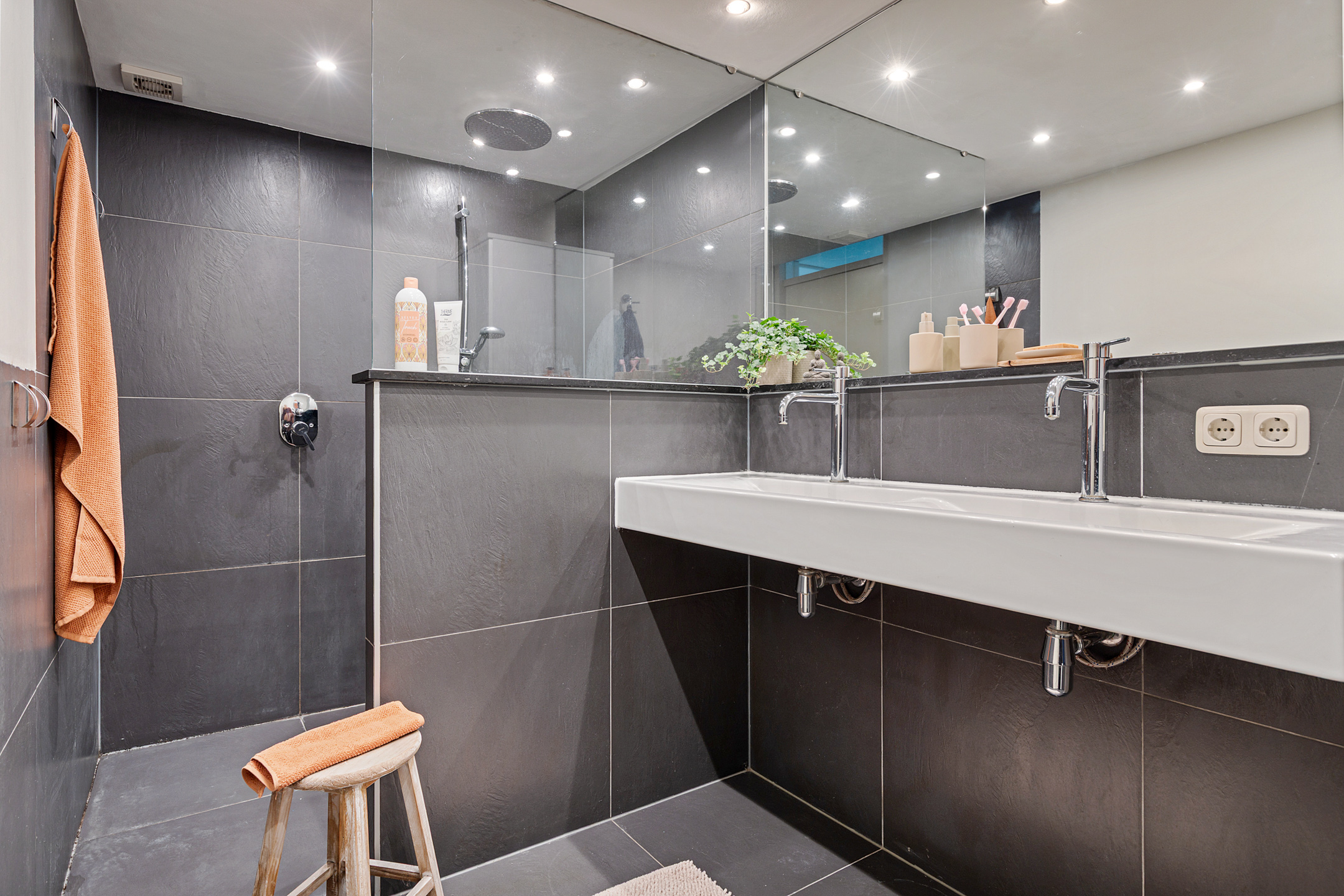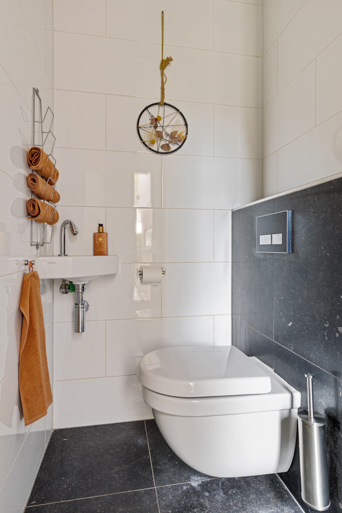 Via de overkapping kom je droog binnen in de ruime hal met toilet, meterkast en trapopgang. Vanuit de hal is er toegang tot zowel de berging als de woonkamer met open keuken. De lichte woonkamer van circa 41 m² ligt aan de tuinzijde en beschikt over grote raampartijen die zorgen voor een fraai uitzicht op de achtertuin en veel natuurlijk licht. De sfeervolle open keuken bevindt zich aan de voorzijde van de woning en profiteert eveneens van een ruime lichtinval.
