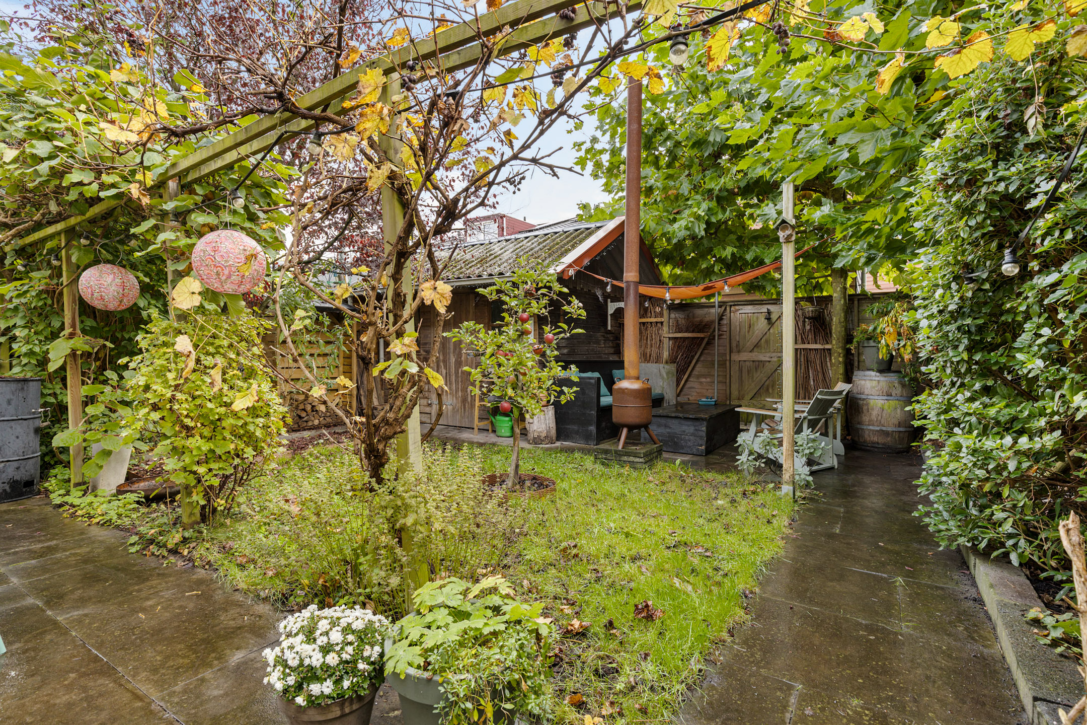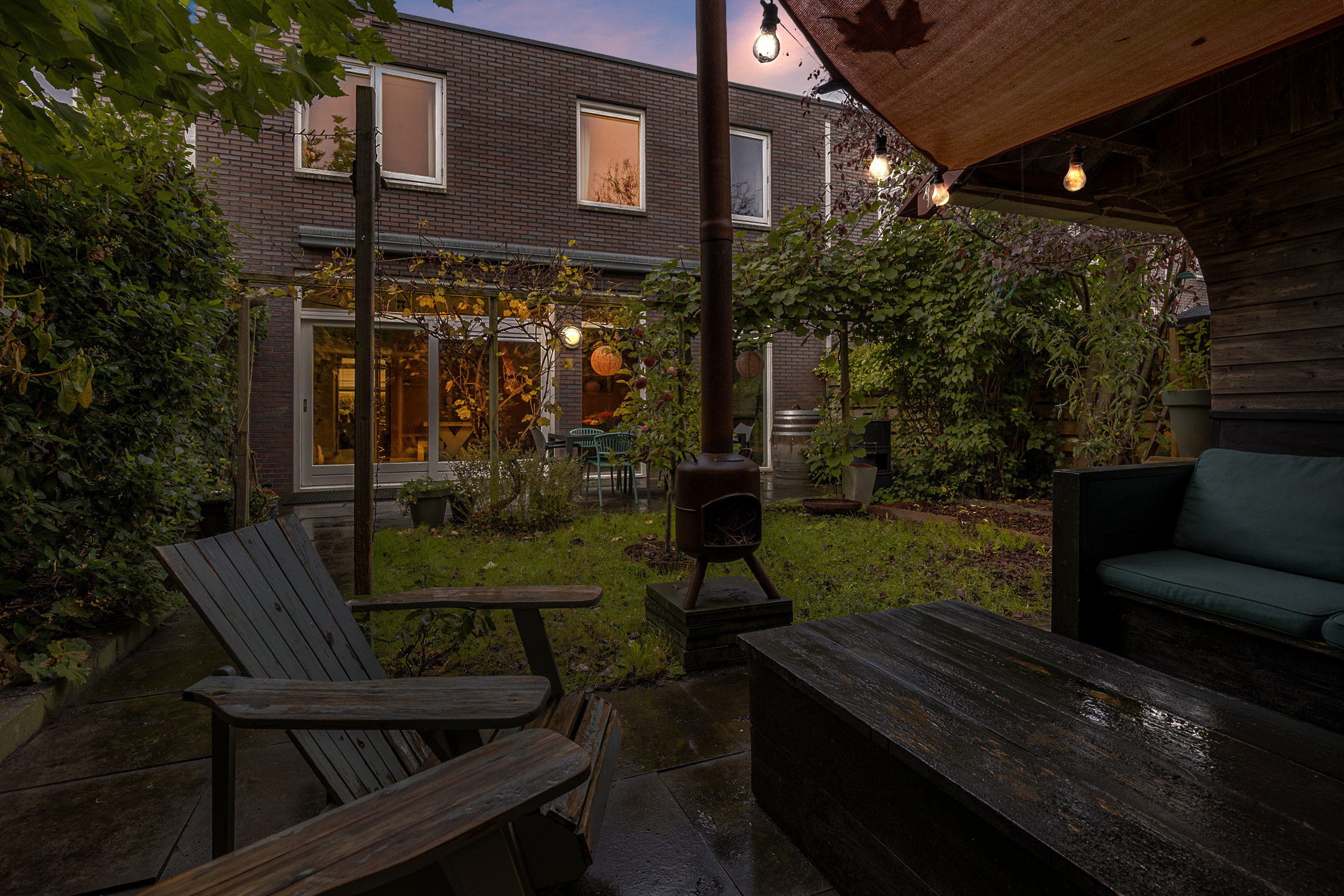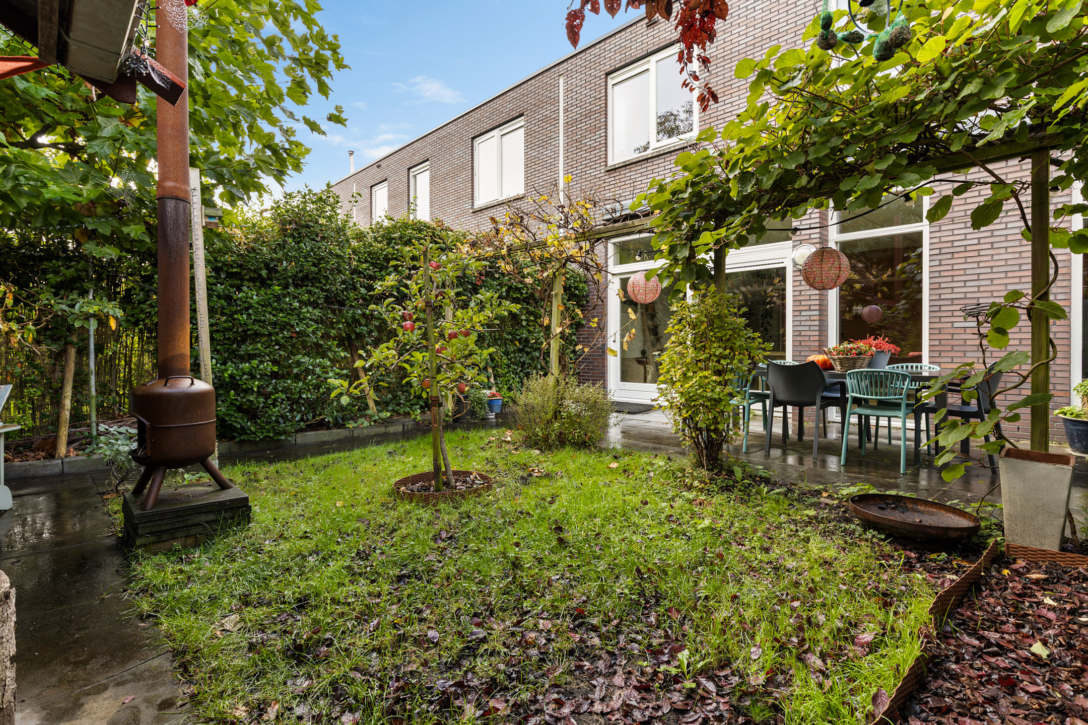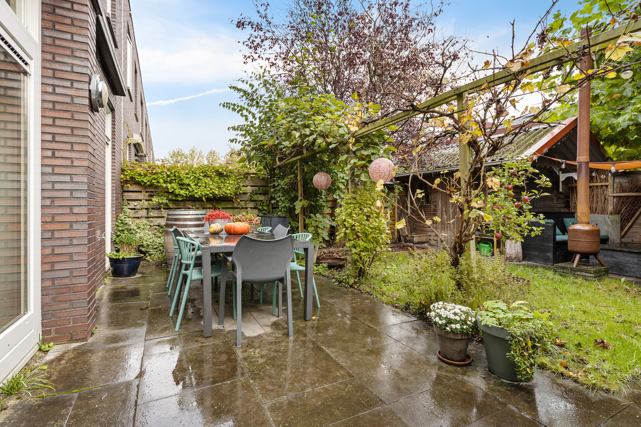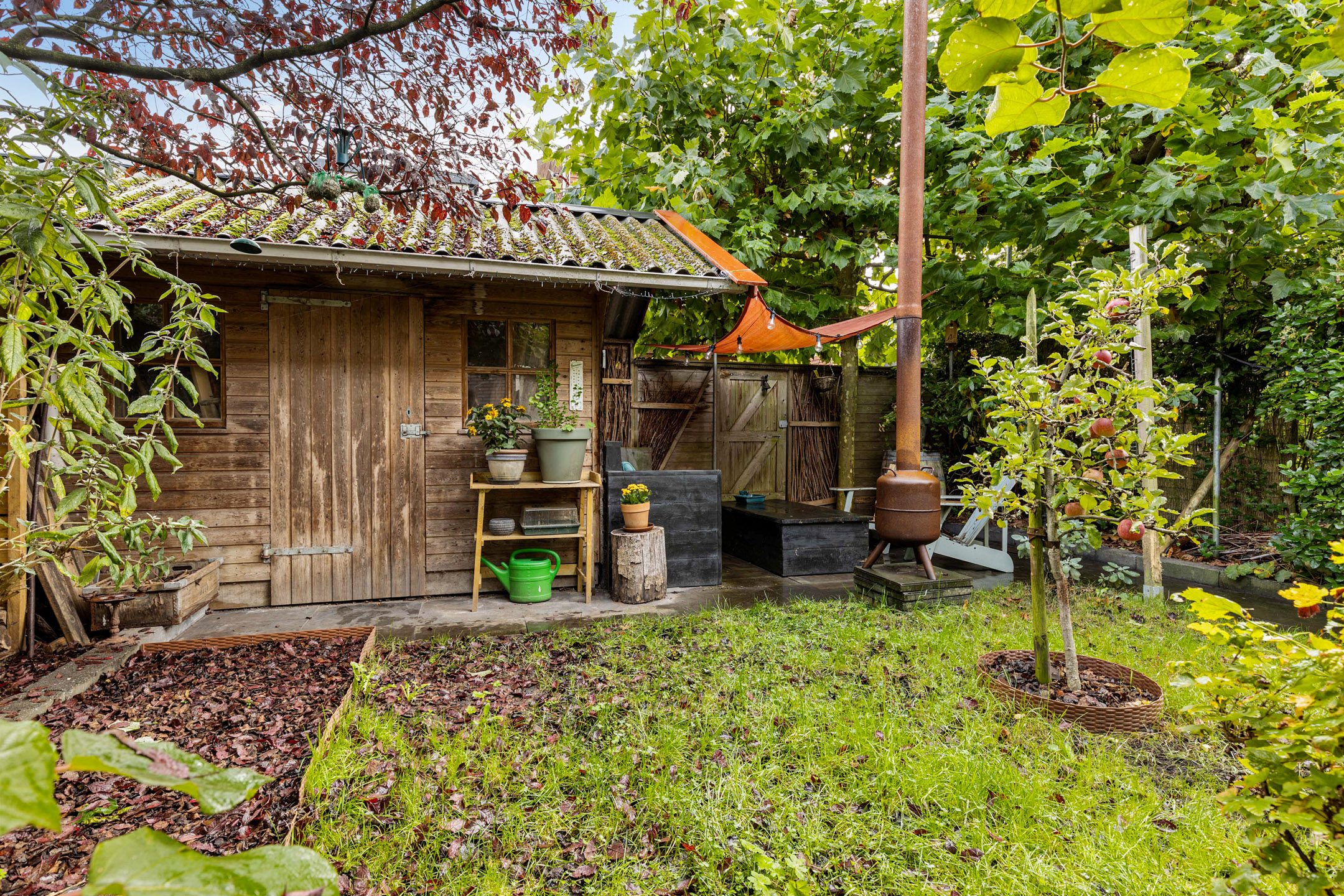 De zonnige achtertuin van circa 78 m² ligt gunstig op het zuiden en oosten. Achterin de tuin bevinden zich een berging en een achterom. Aan de voorzijde beschikt de woning over een oprit met carport, waardoor droog parkeren op eigen terrein altijd mogelijk is.